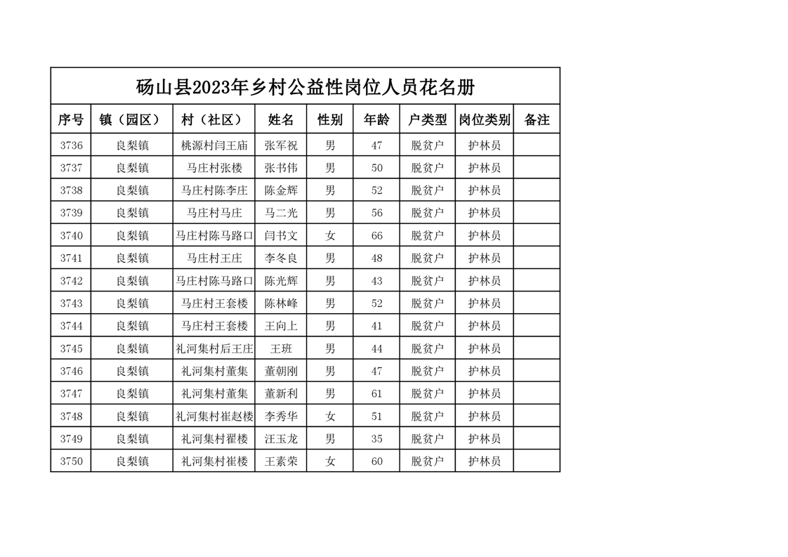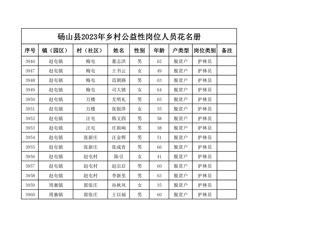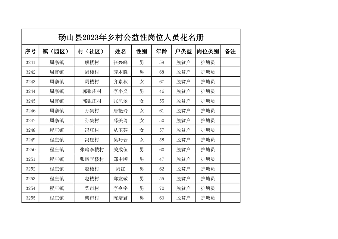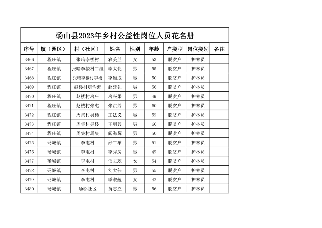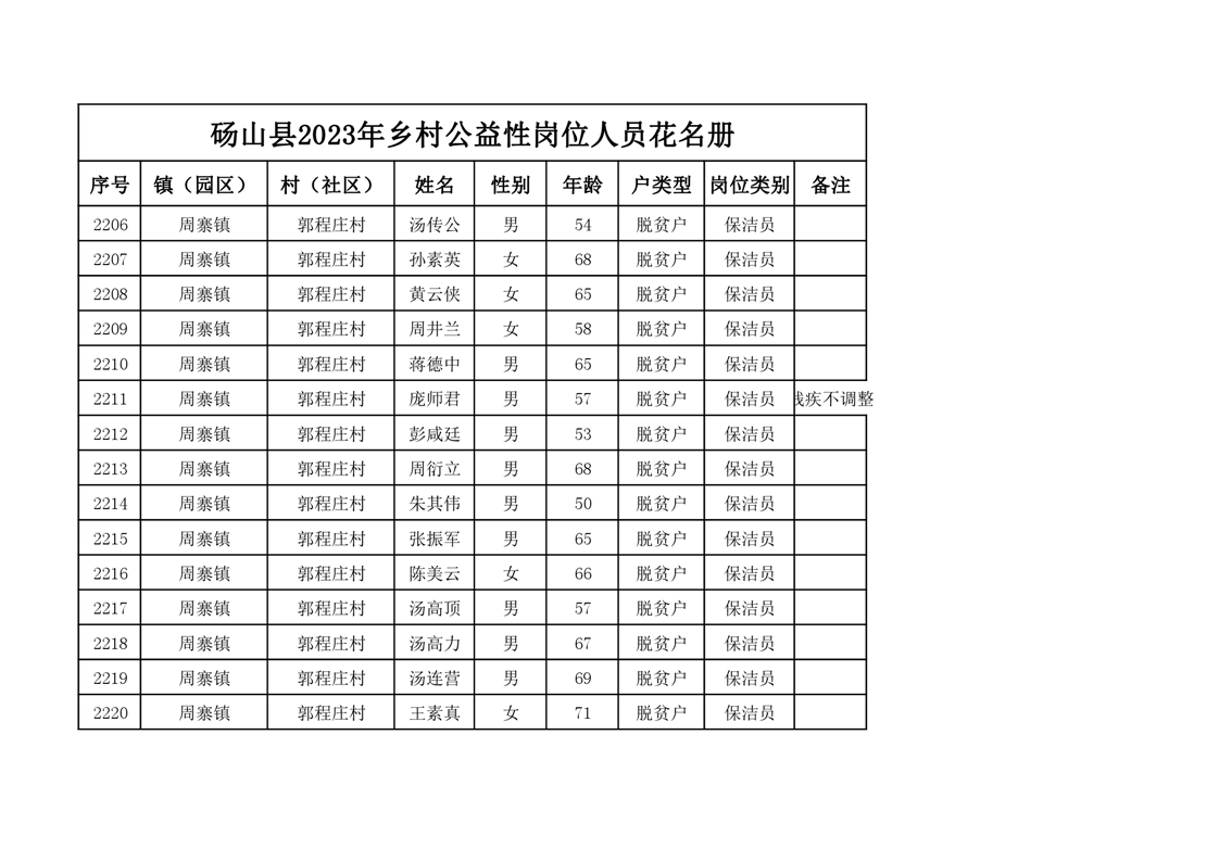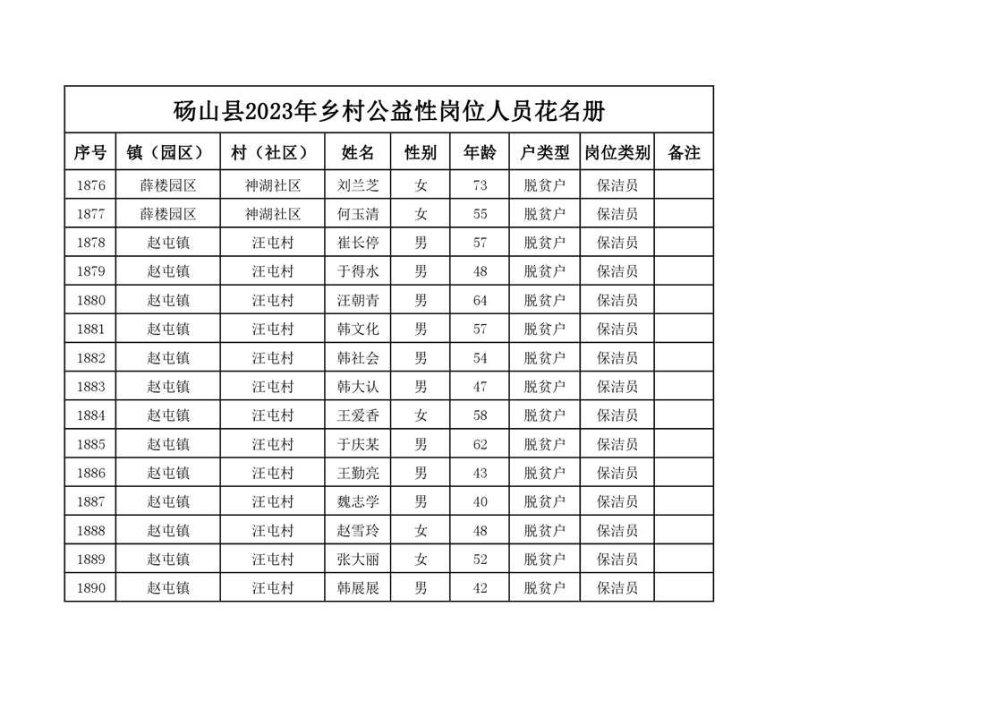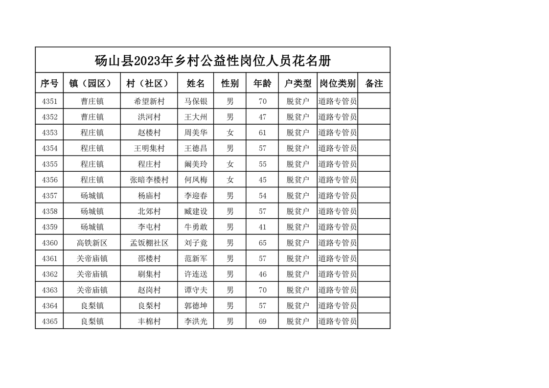 附件:砀山县2023年乡村公益性岗位拟安置人员花名册