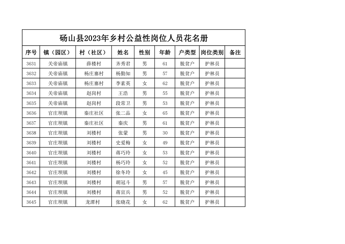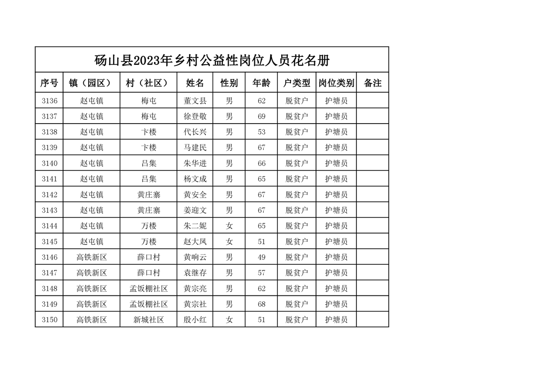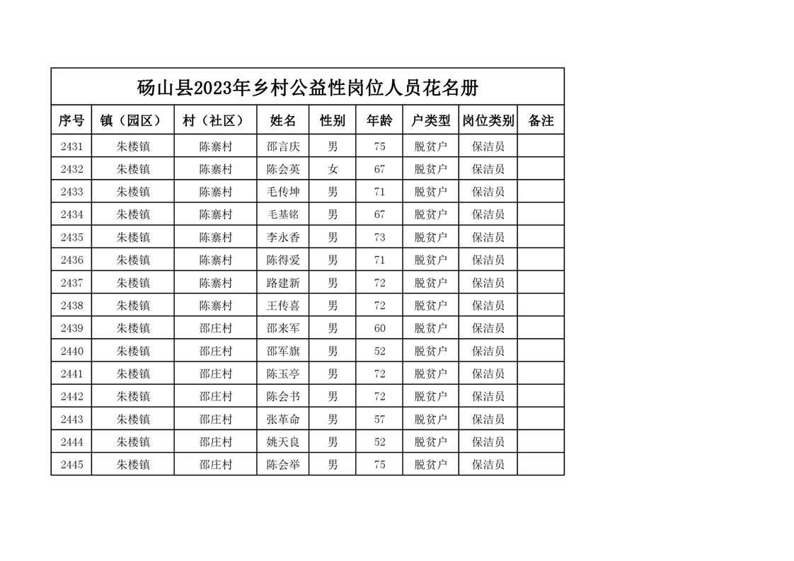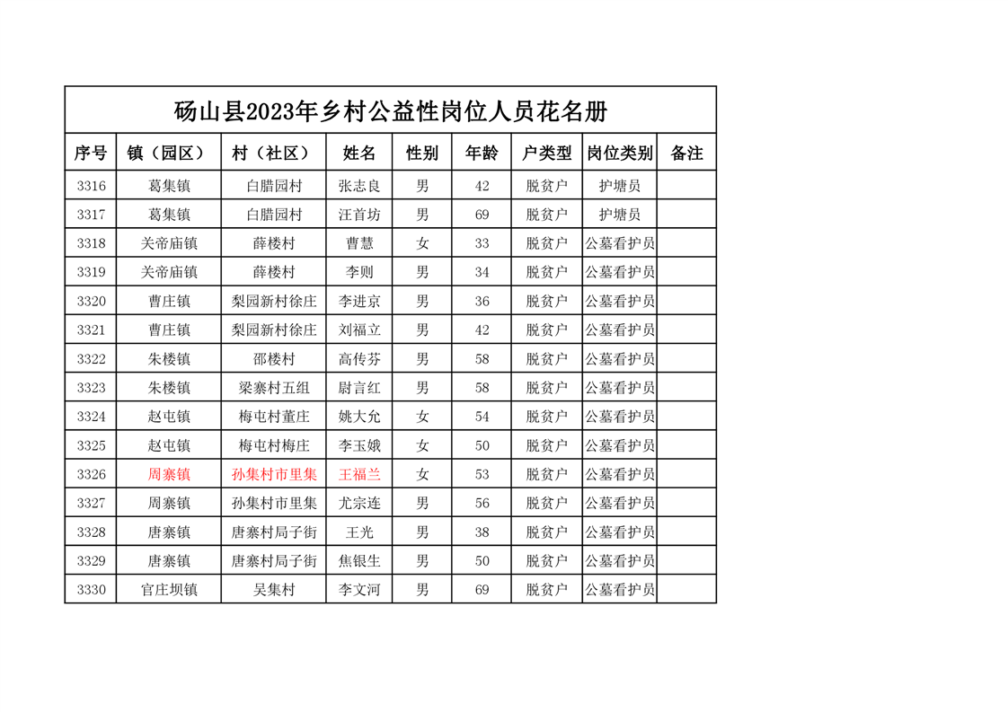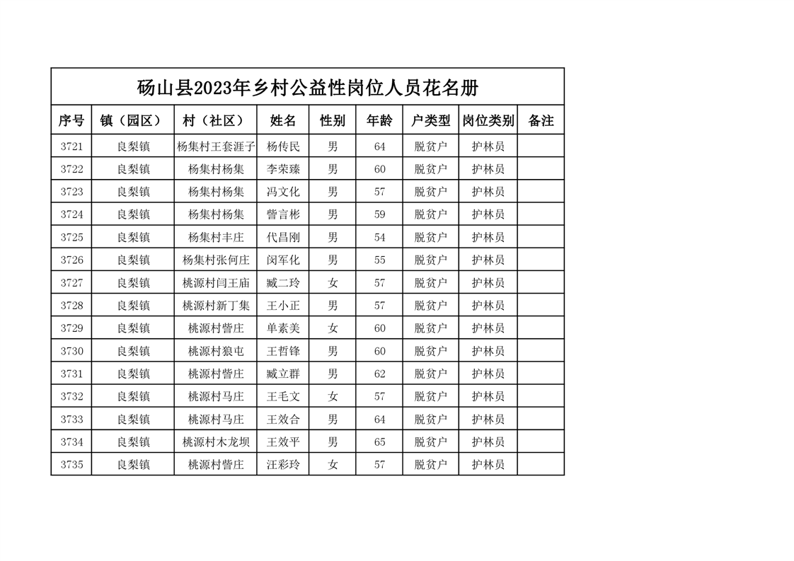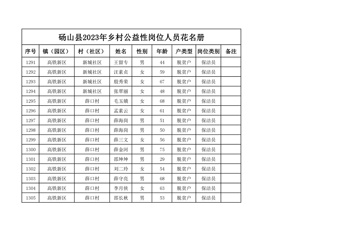 附件:砀山县2023年乡村公益性岗位拟安置人员花名册