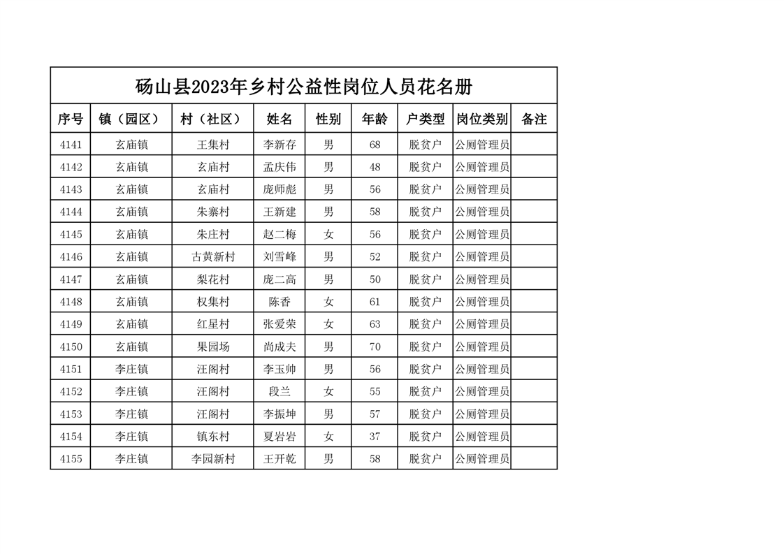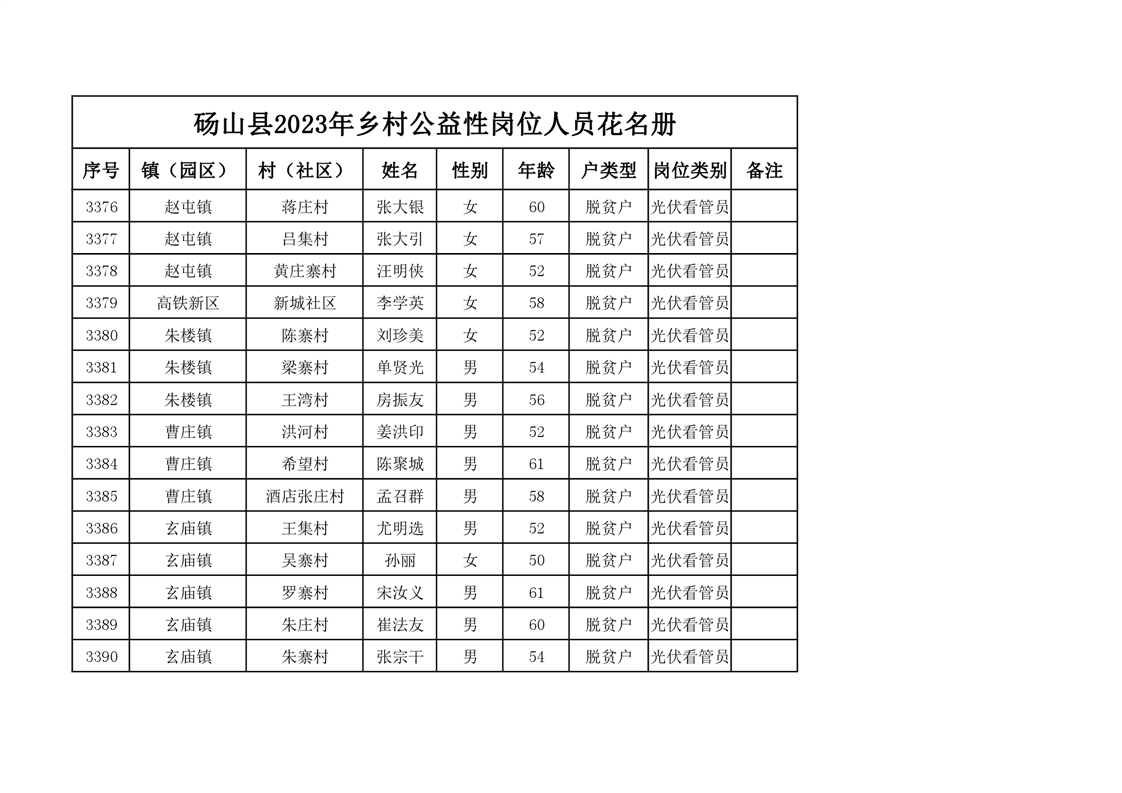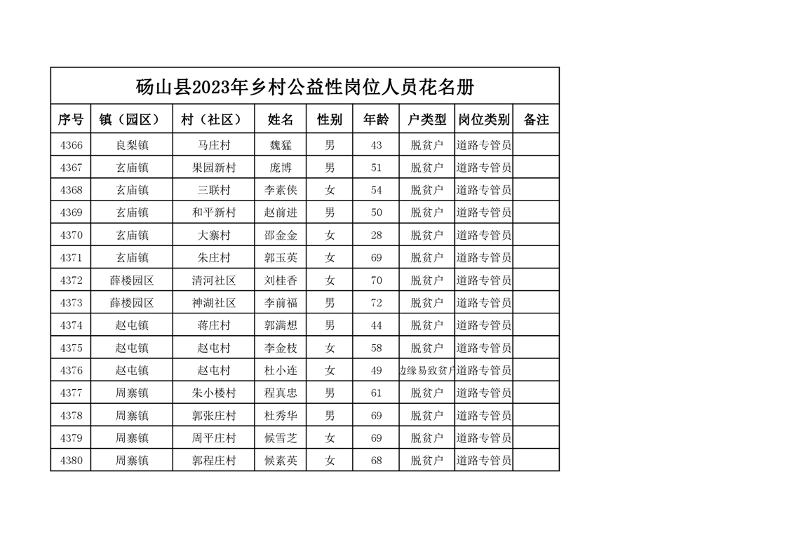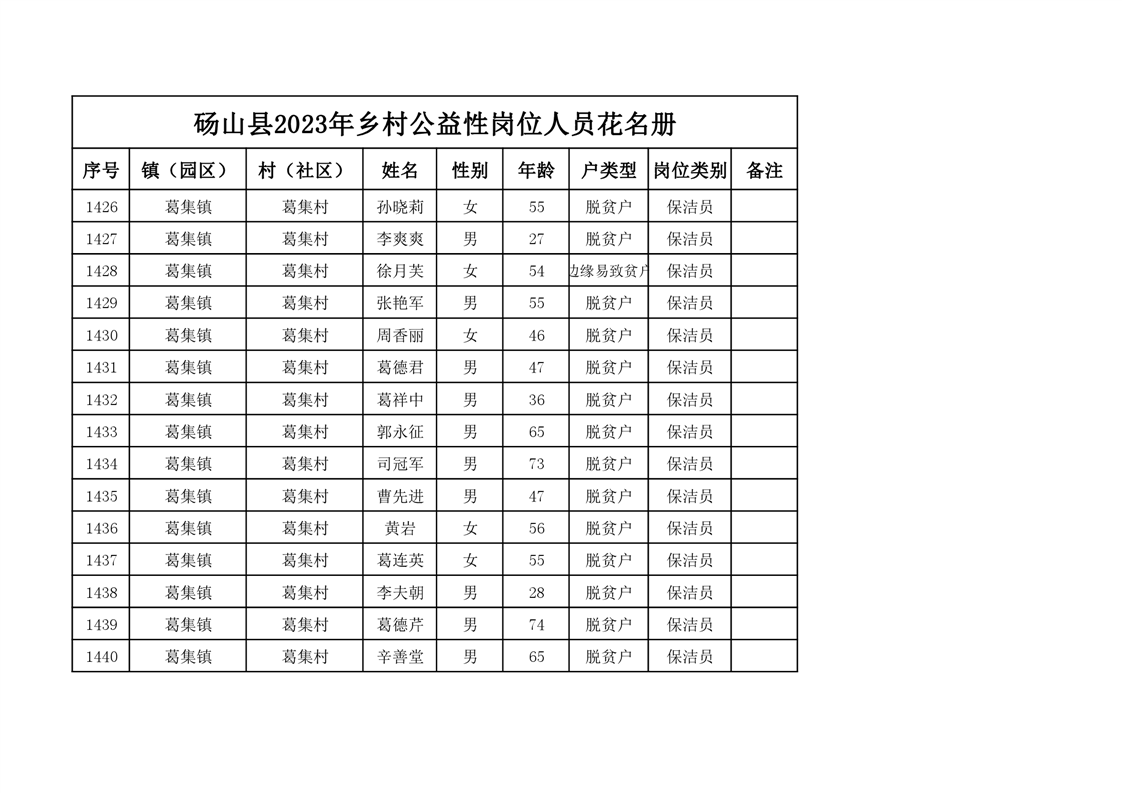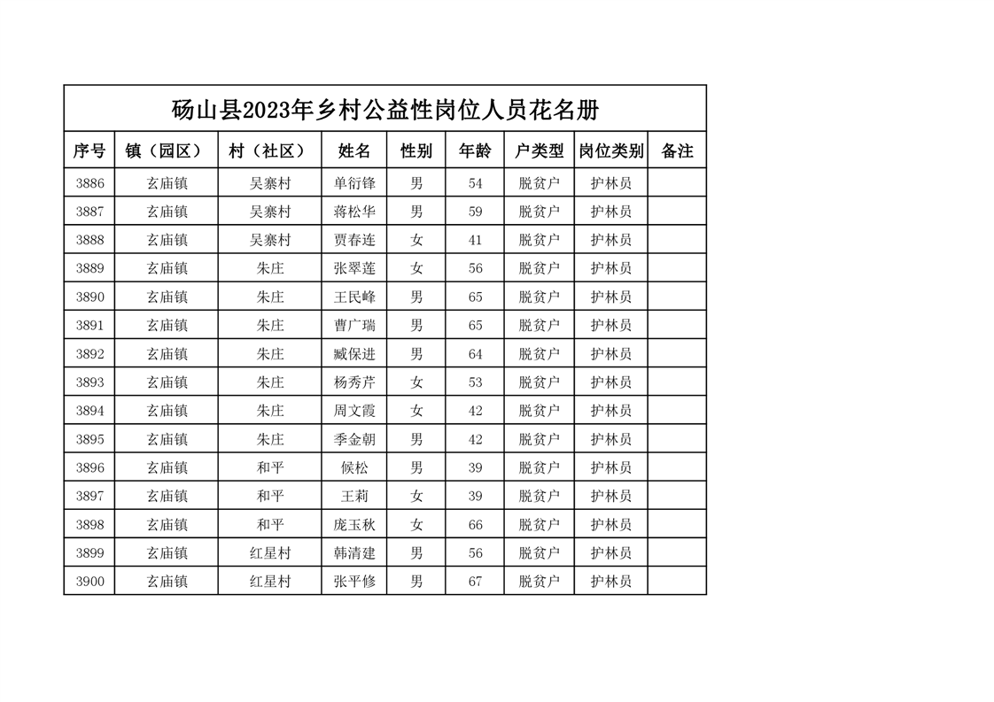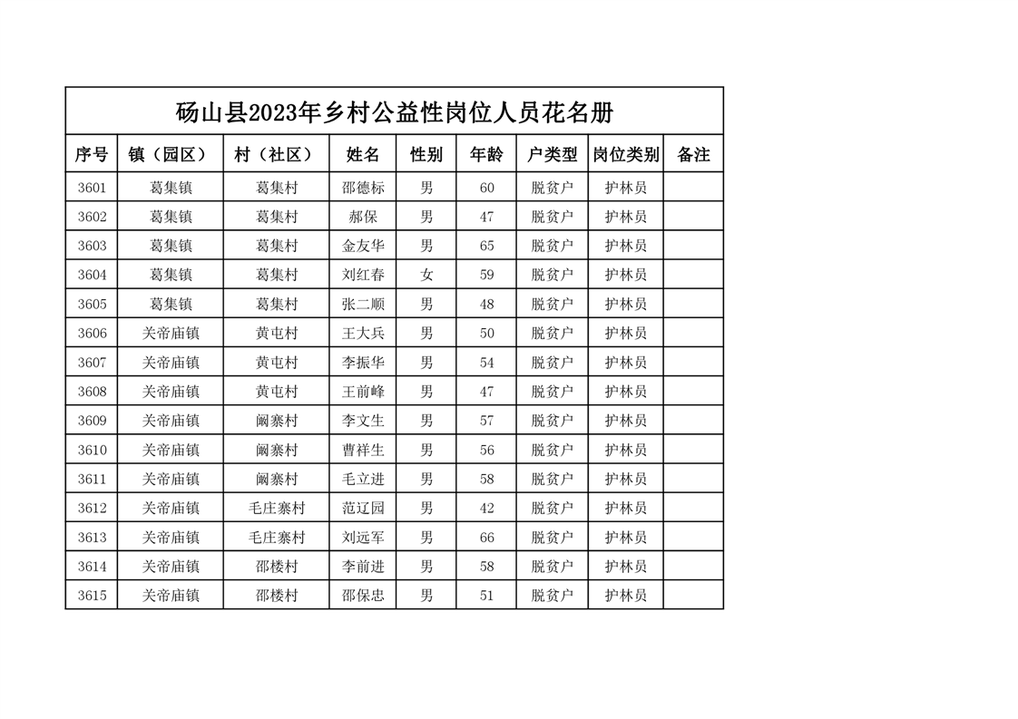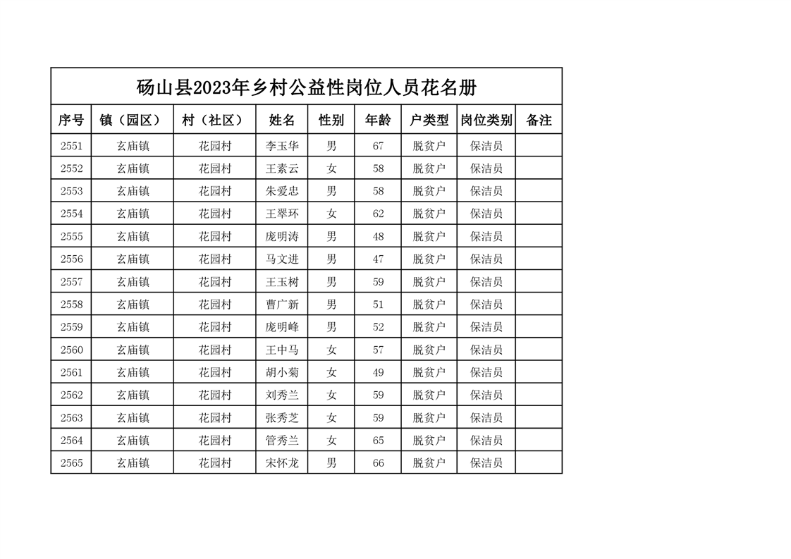 附件:砀山县2023年乡村公益性岗位拟安置人员花名册