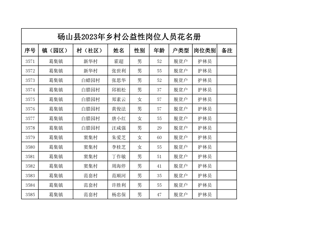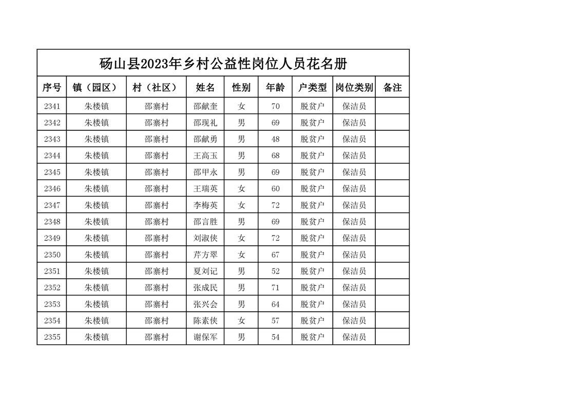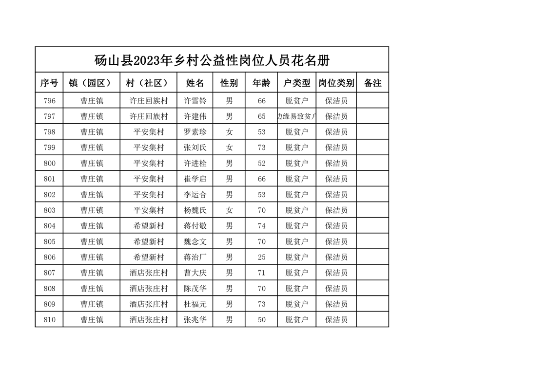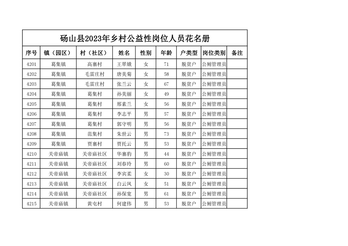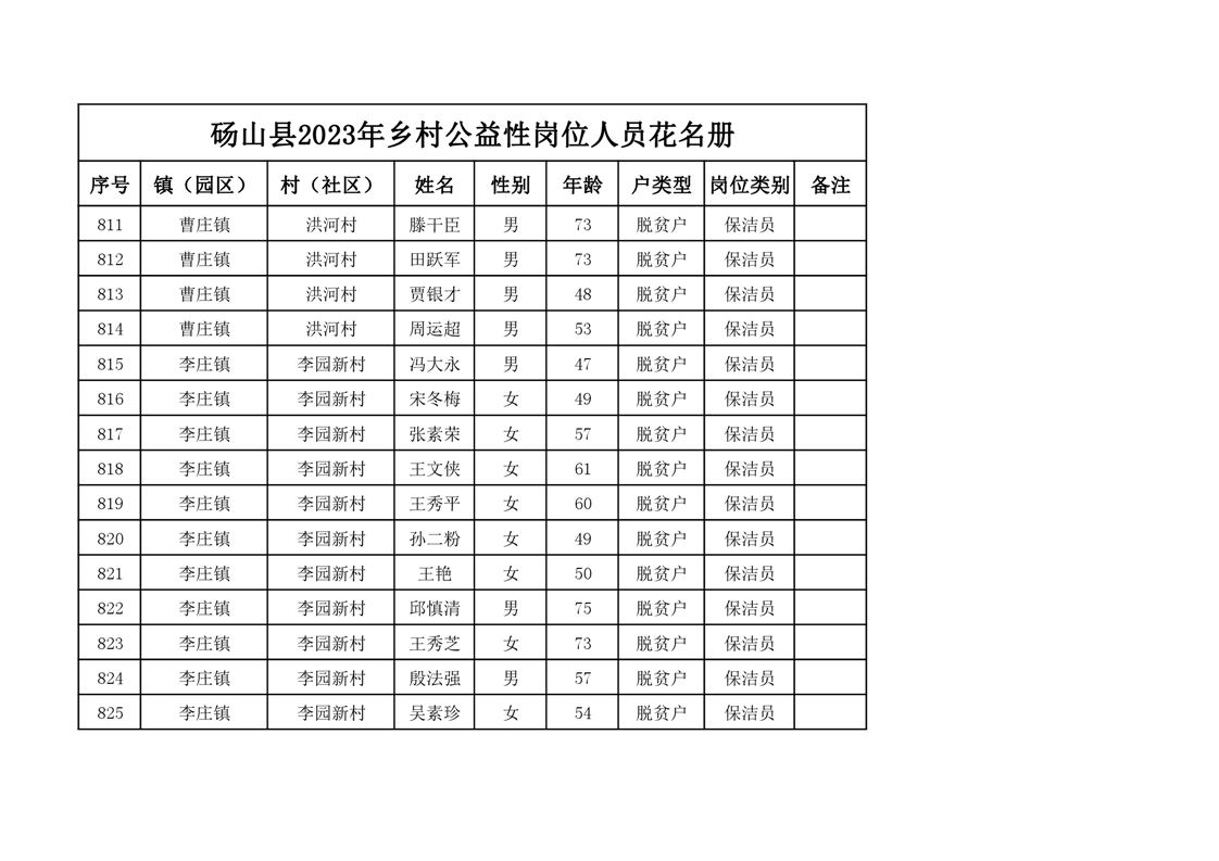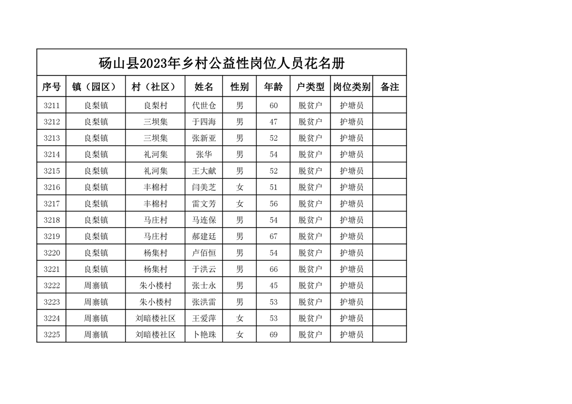 附件:砀山县2023年乡村公益性岗位拟安置人员花名册