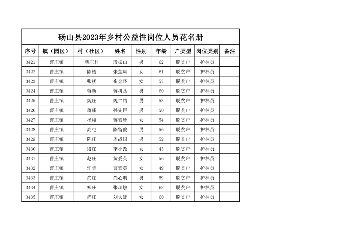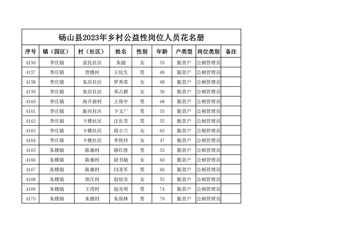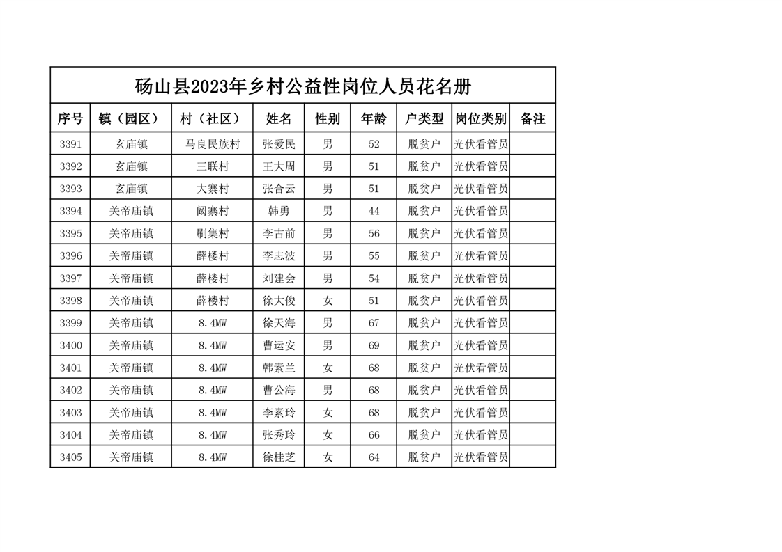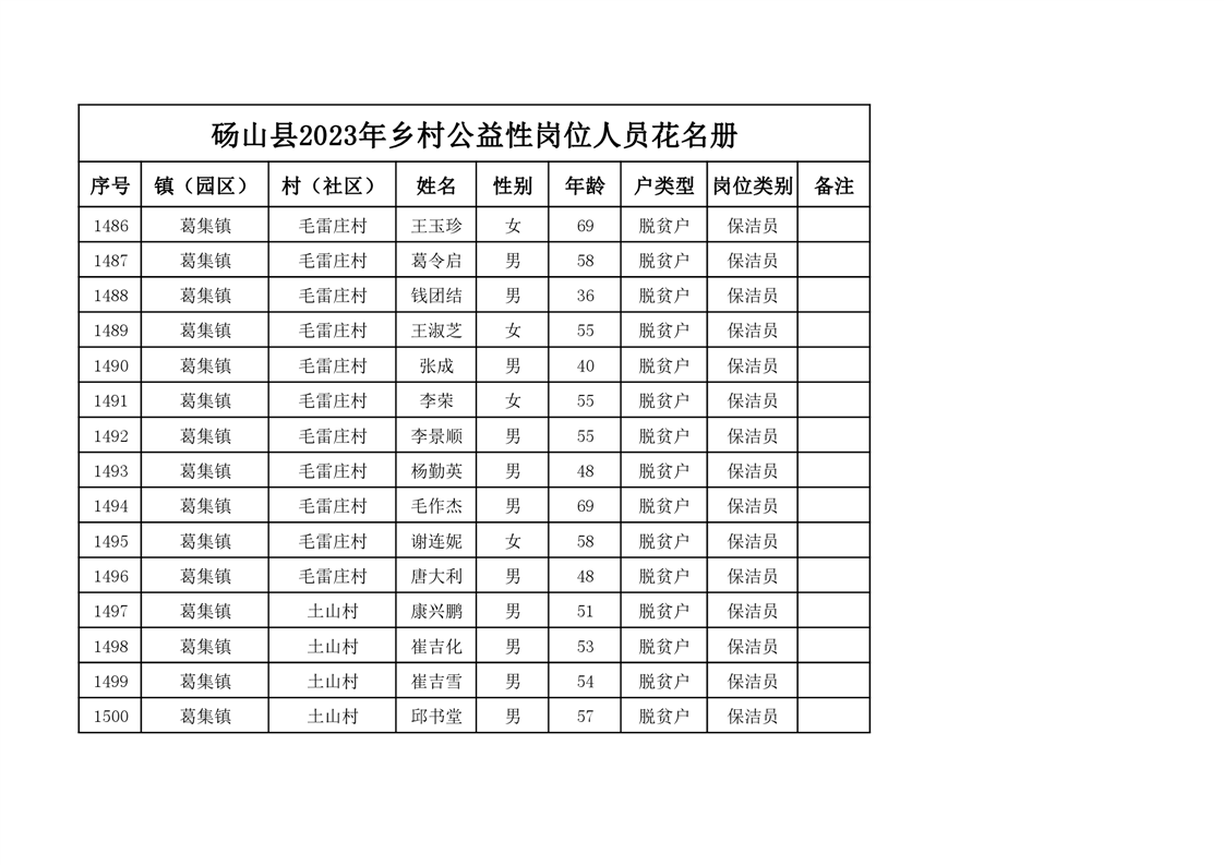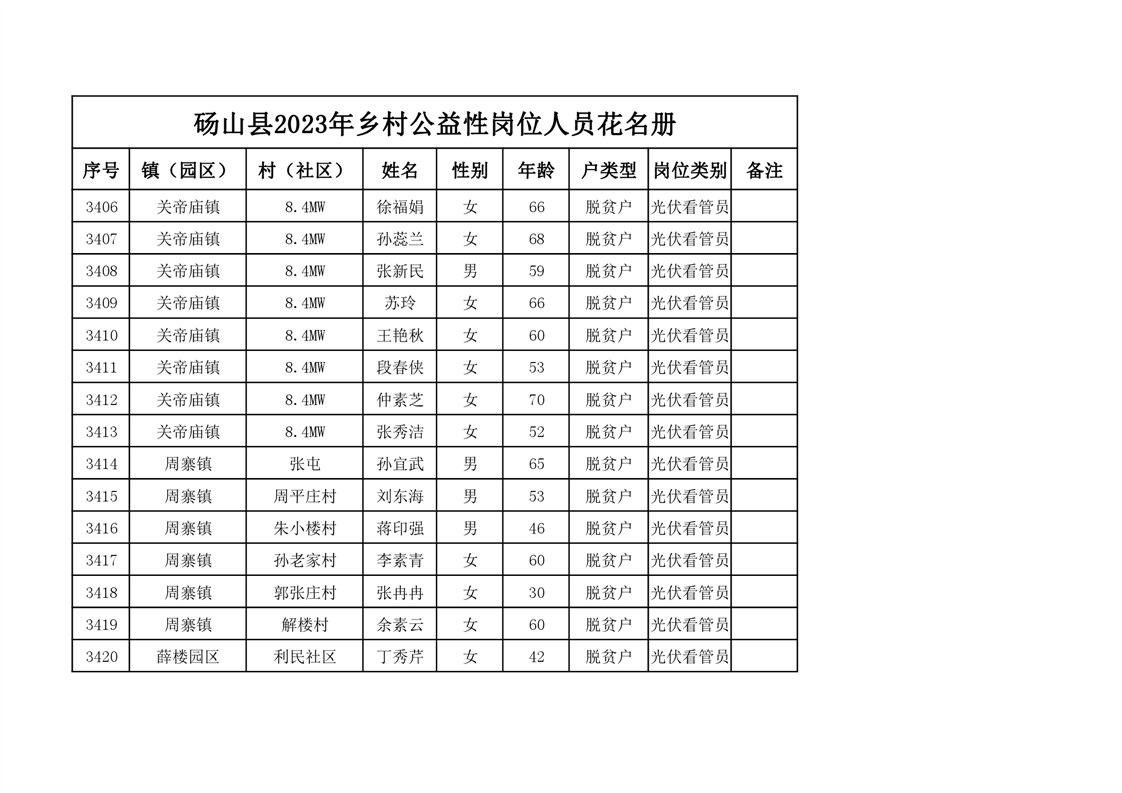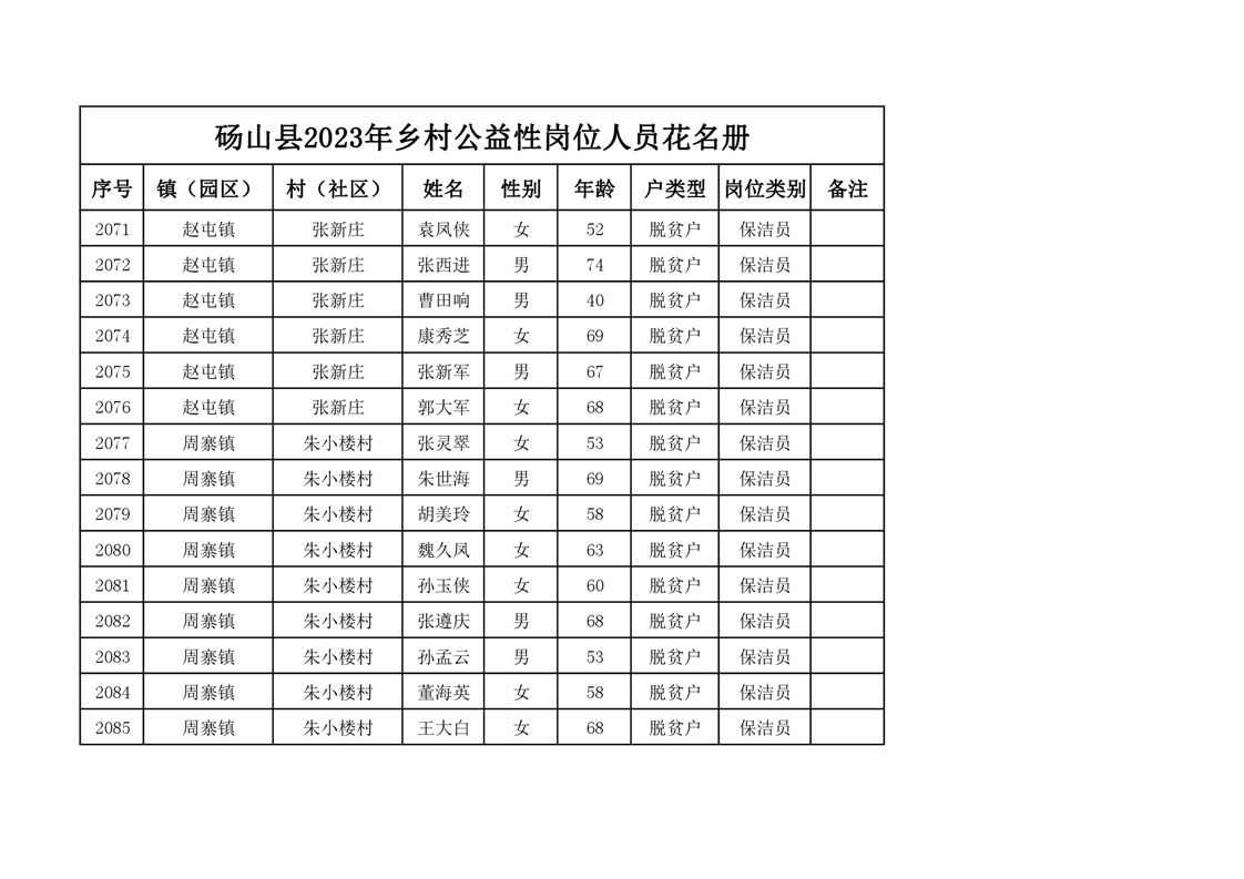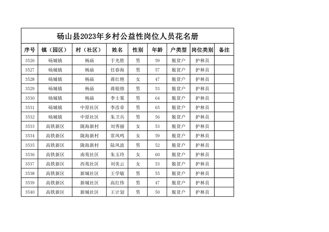 附件:砀山县2023年乡村公益性岗位拟安置人员花名册