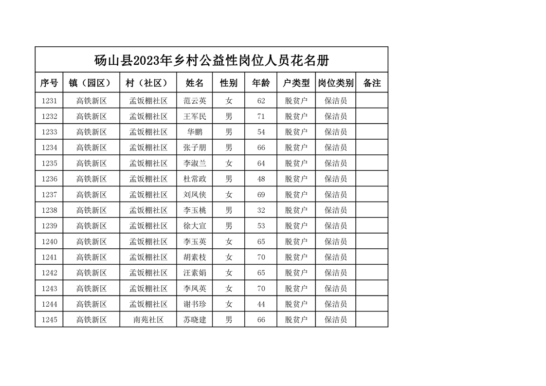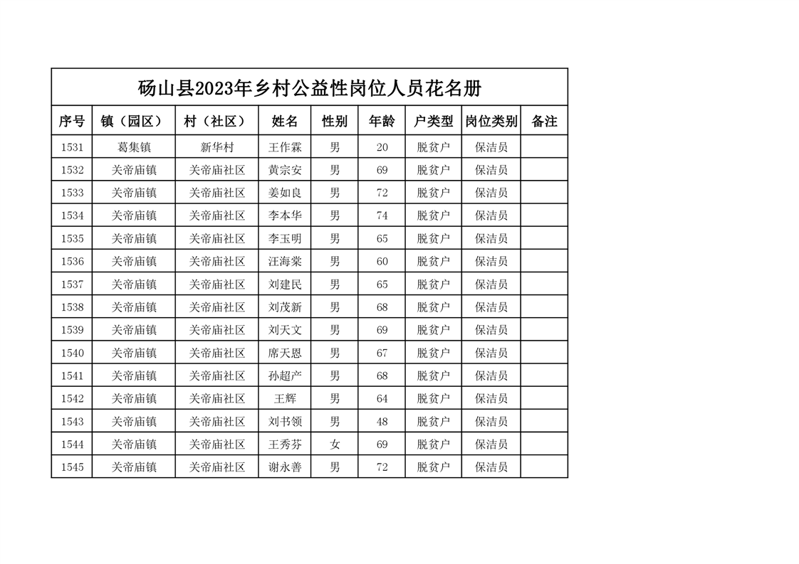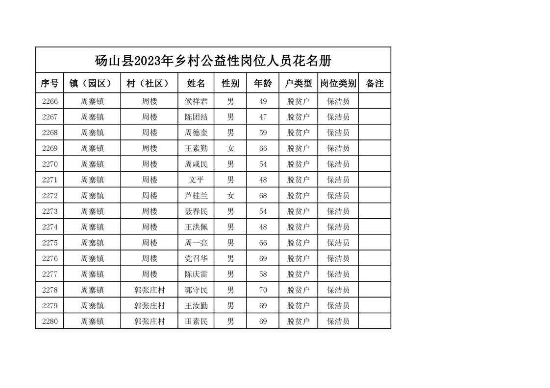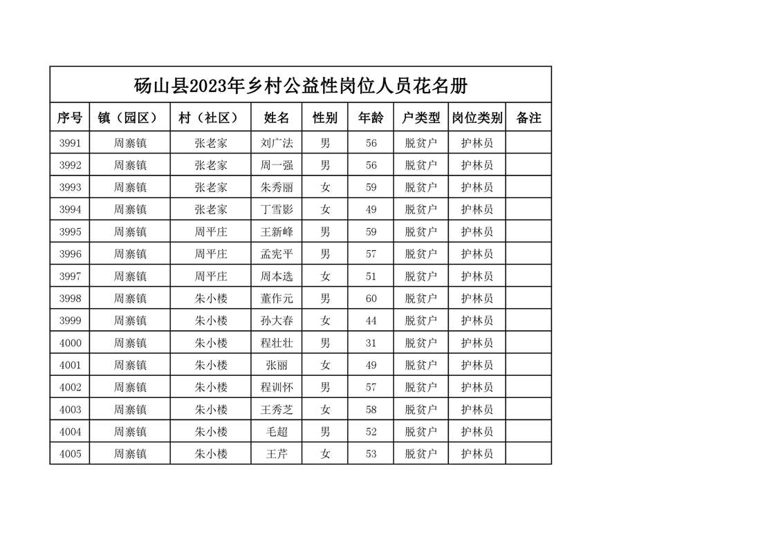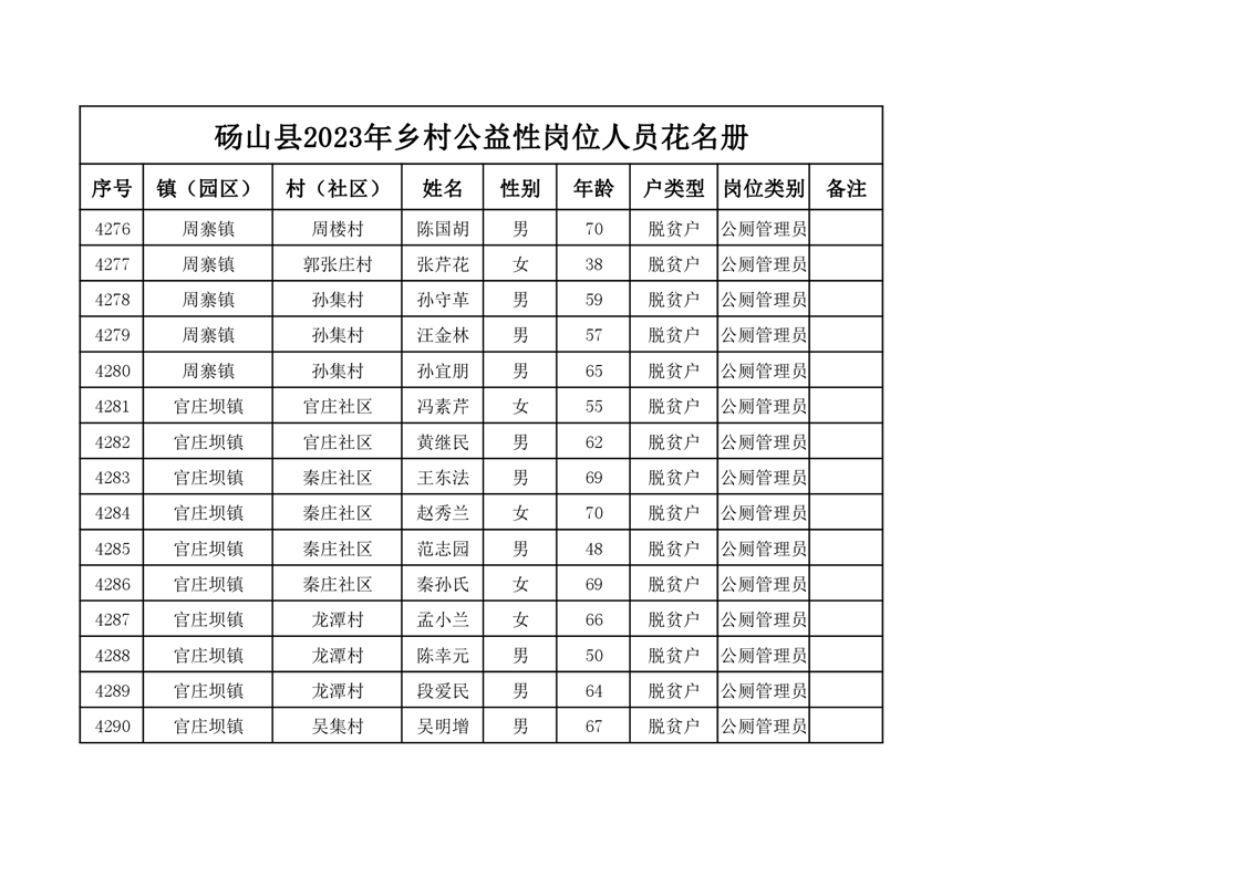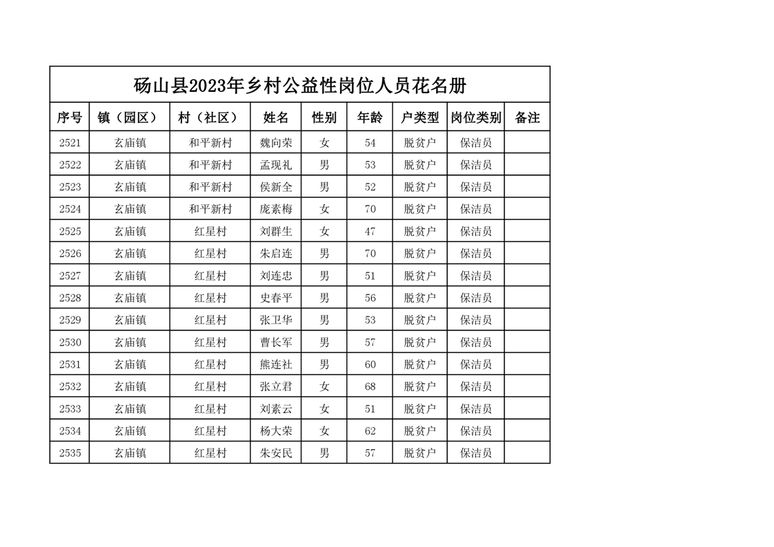 附件:砀山县2023年乡村公益性岗位拟安置人员花名册
