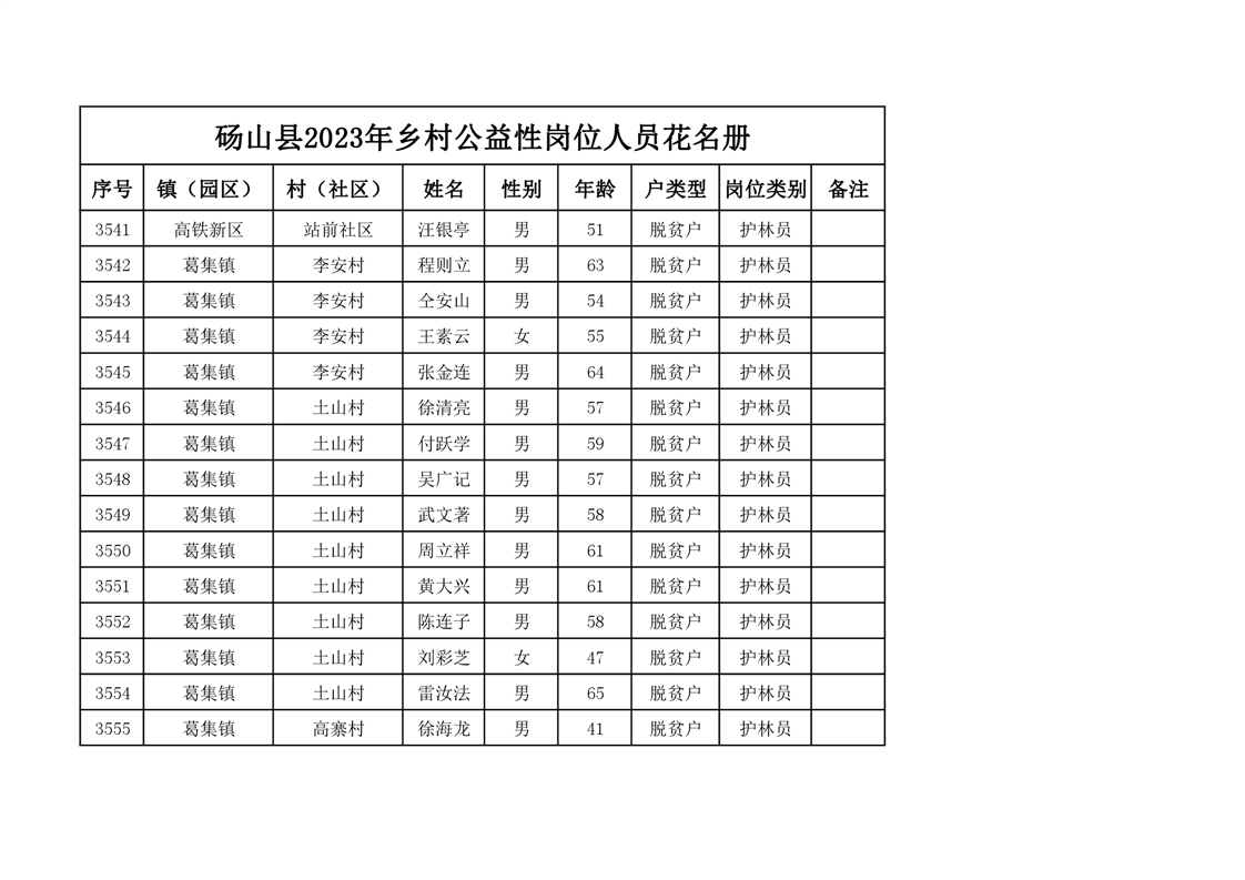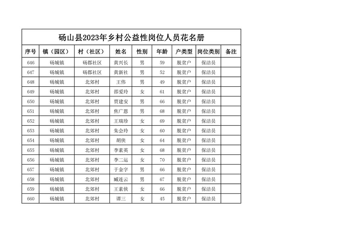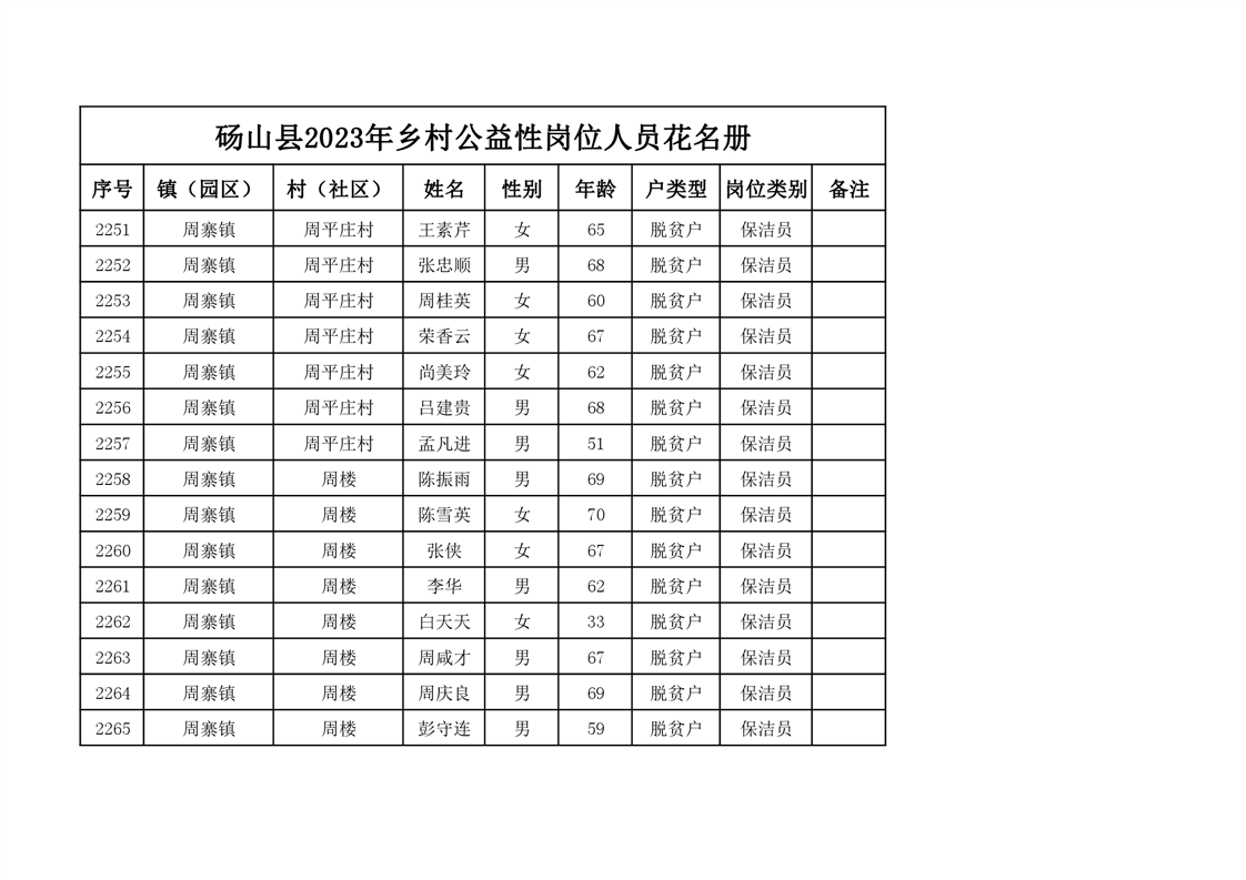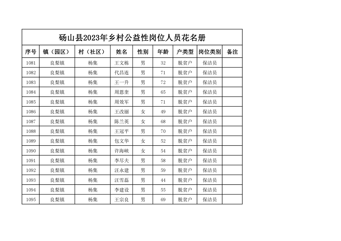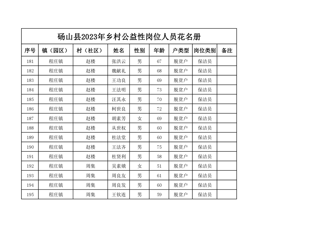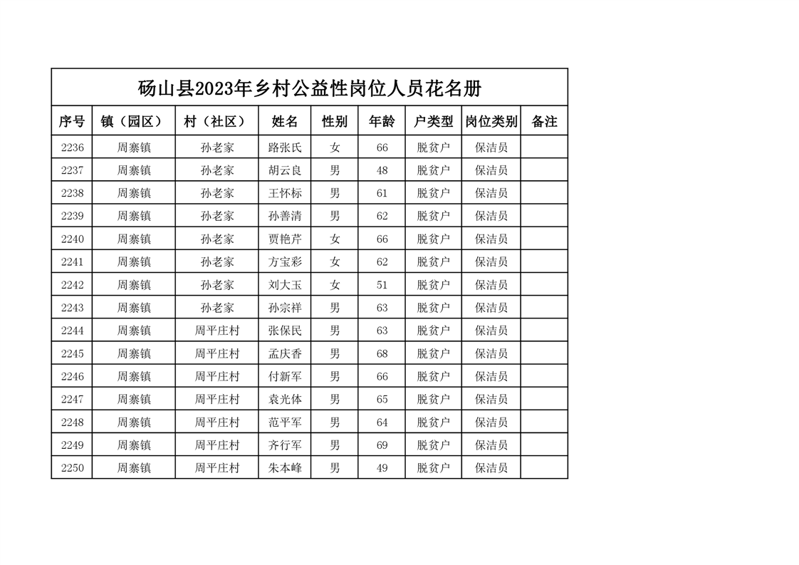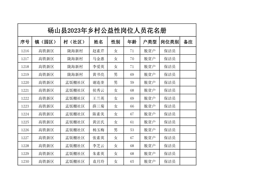 附件:砀山县2023年乡村公益性岗位拟安置人员花名册