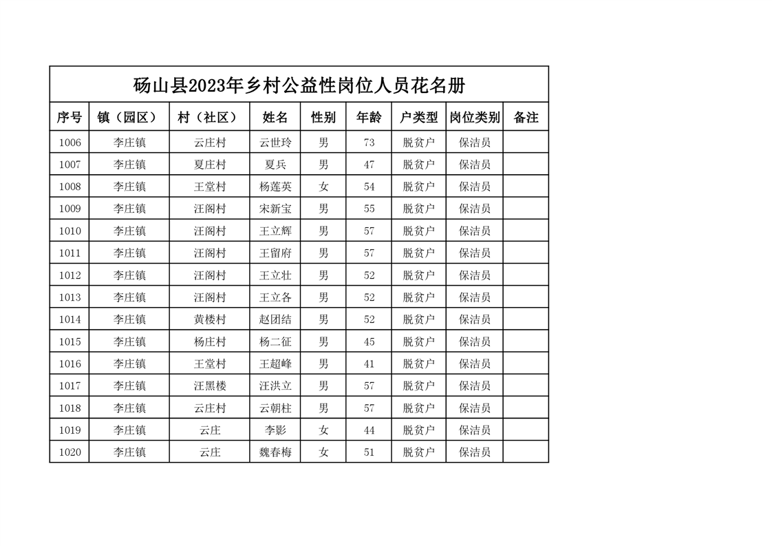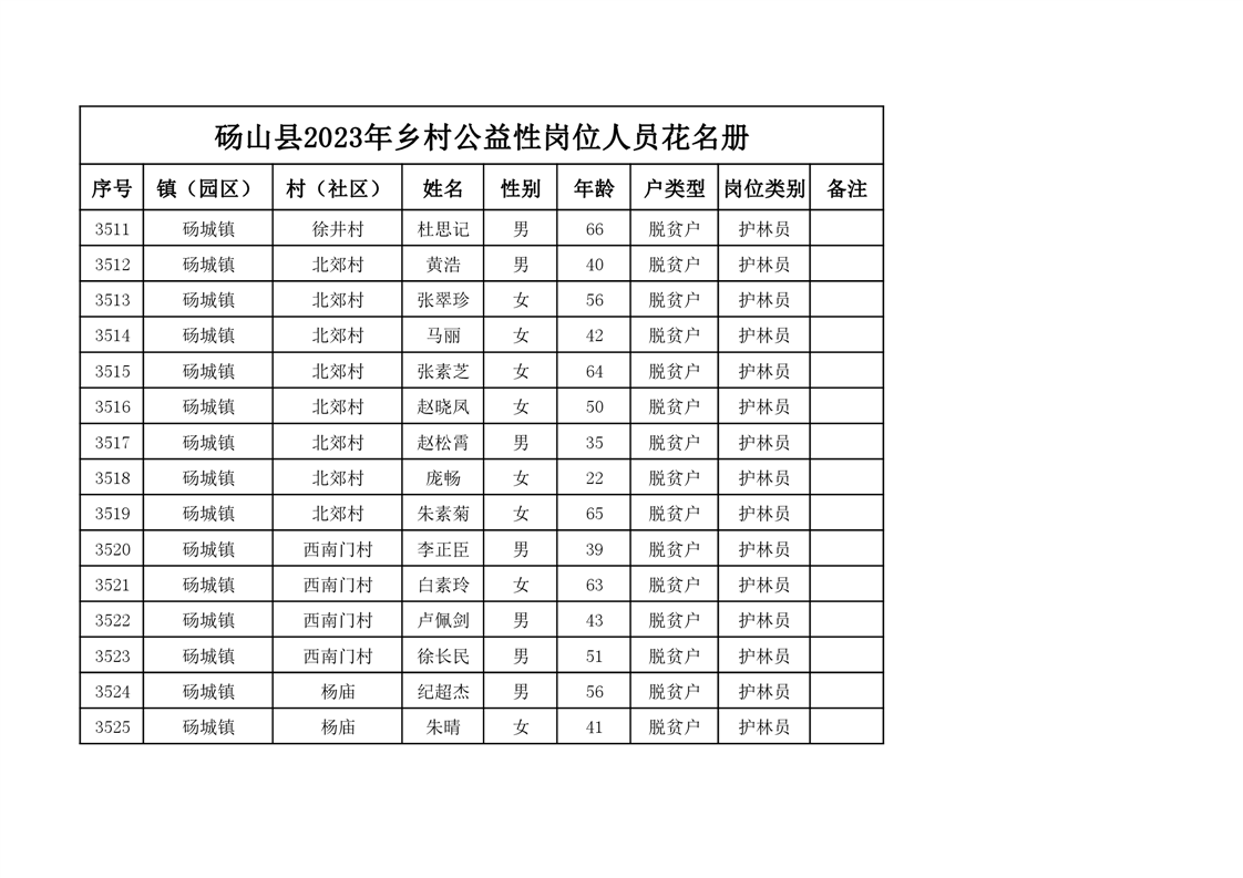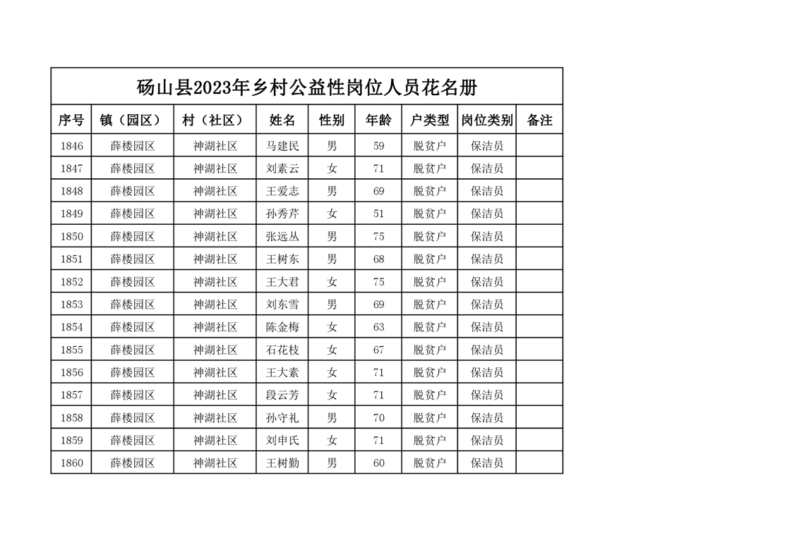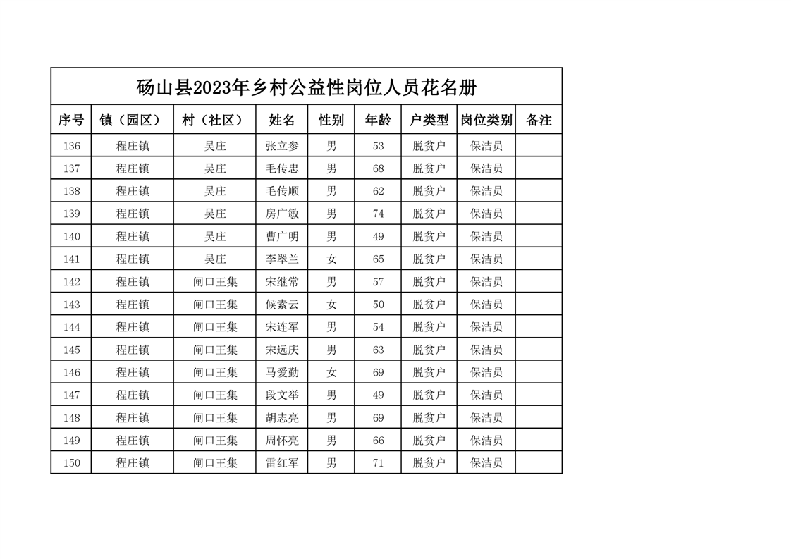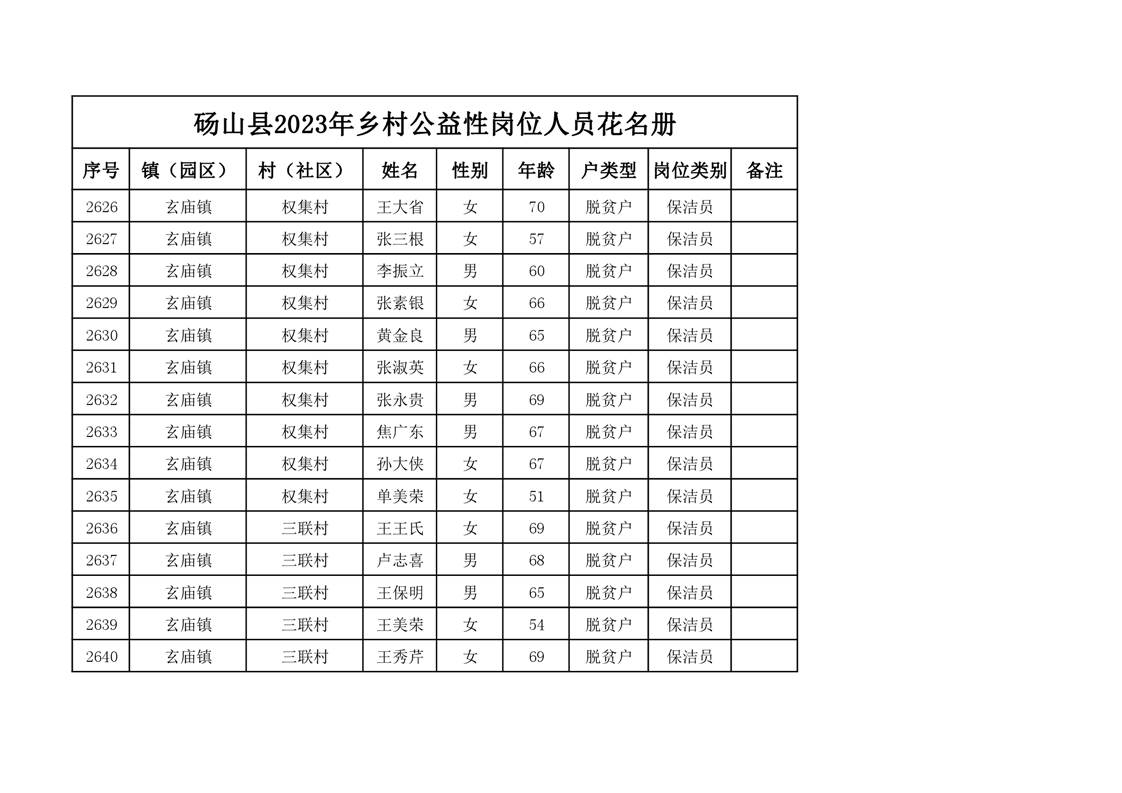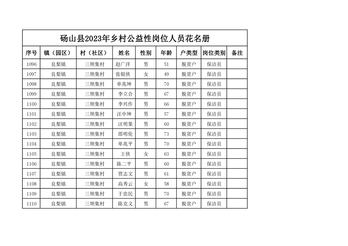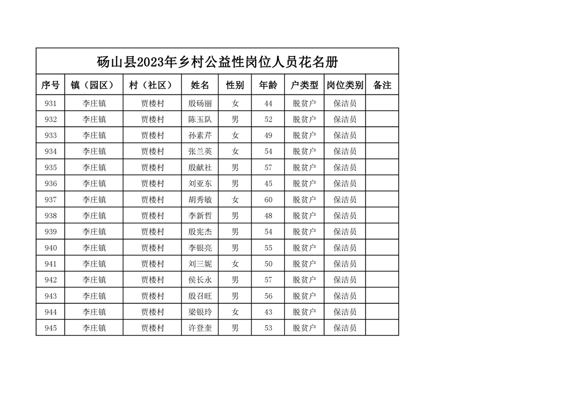 附件:砀山县2023年乡村公益性岗位拟安置人员花名册