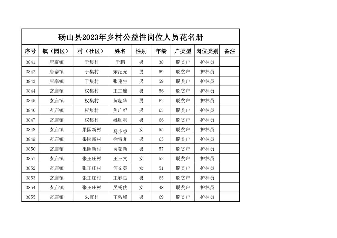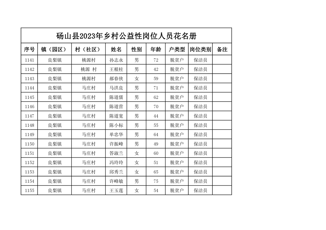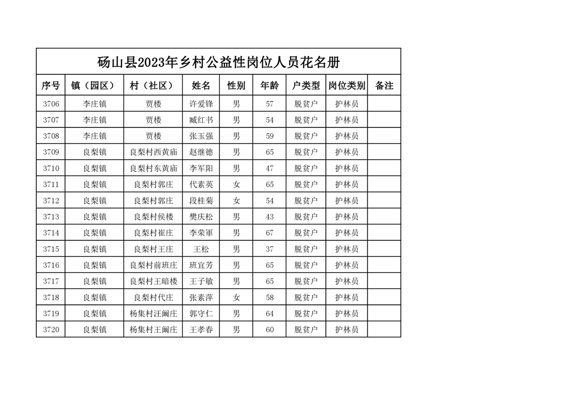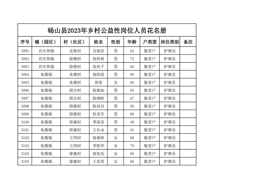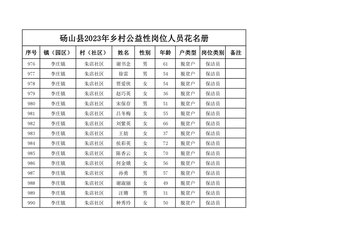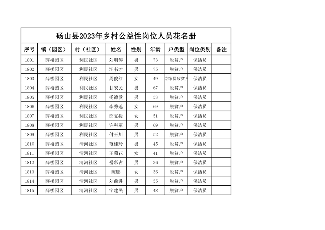 附件:砀山县2023年乡村公益性岗位拟安置人员花名册