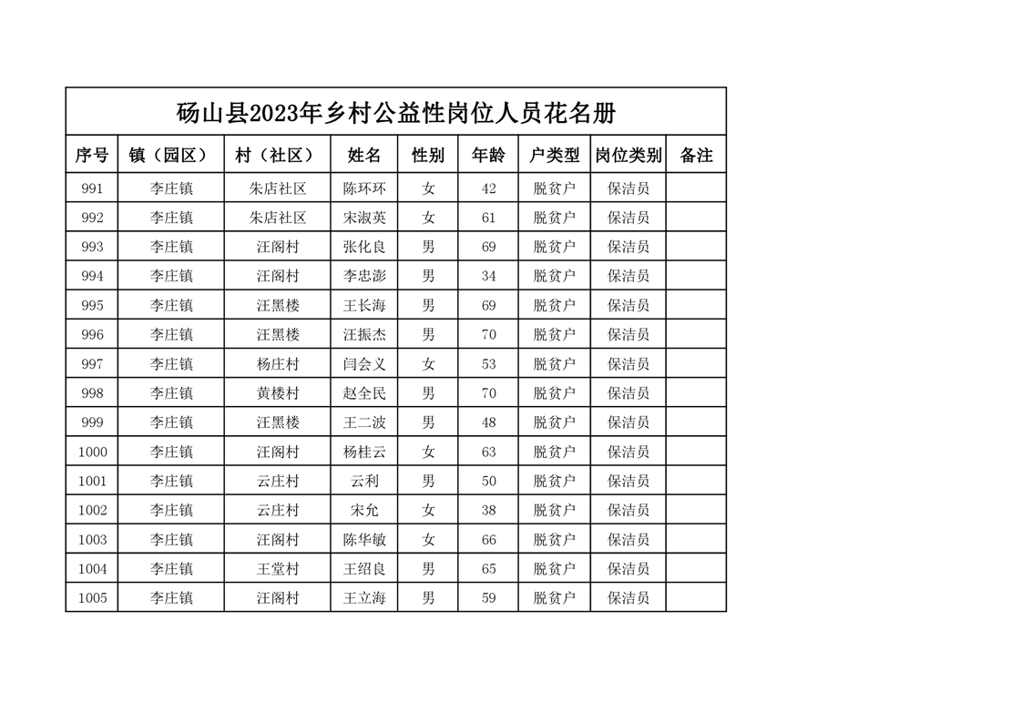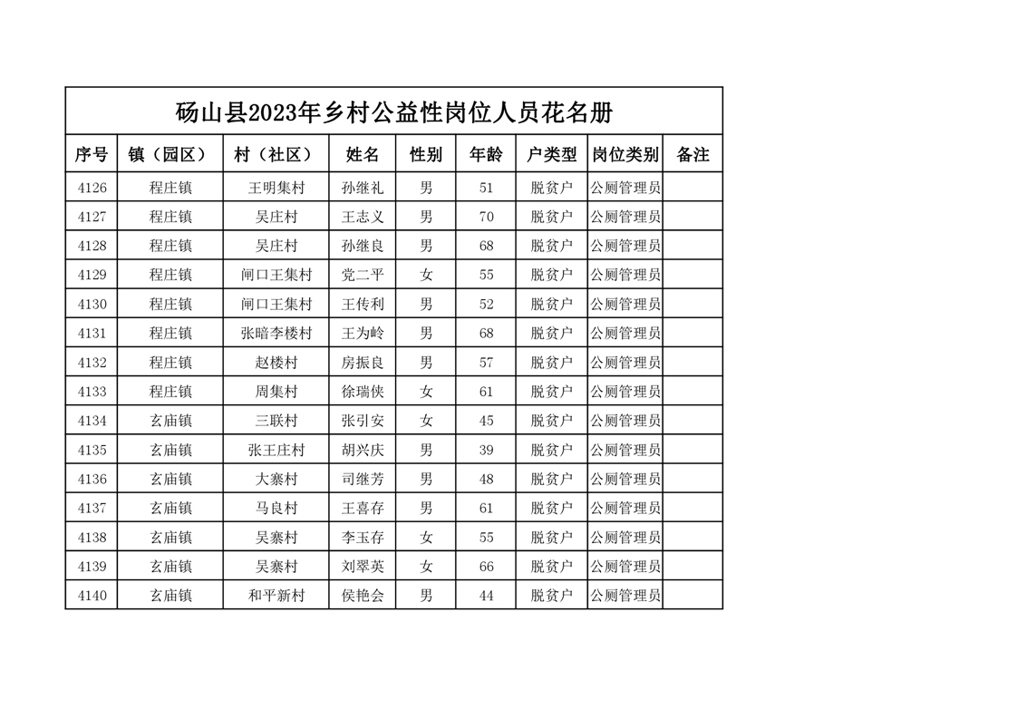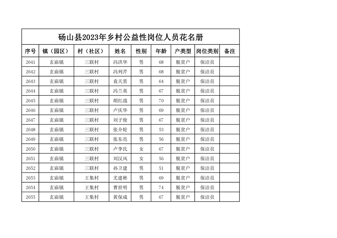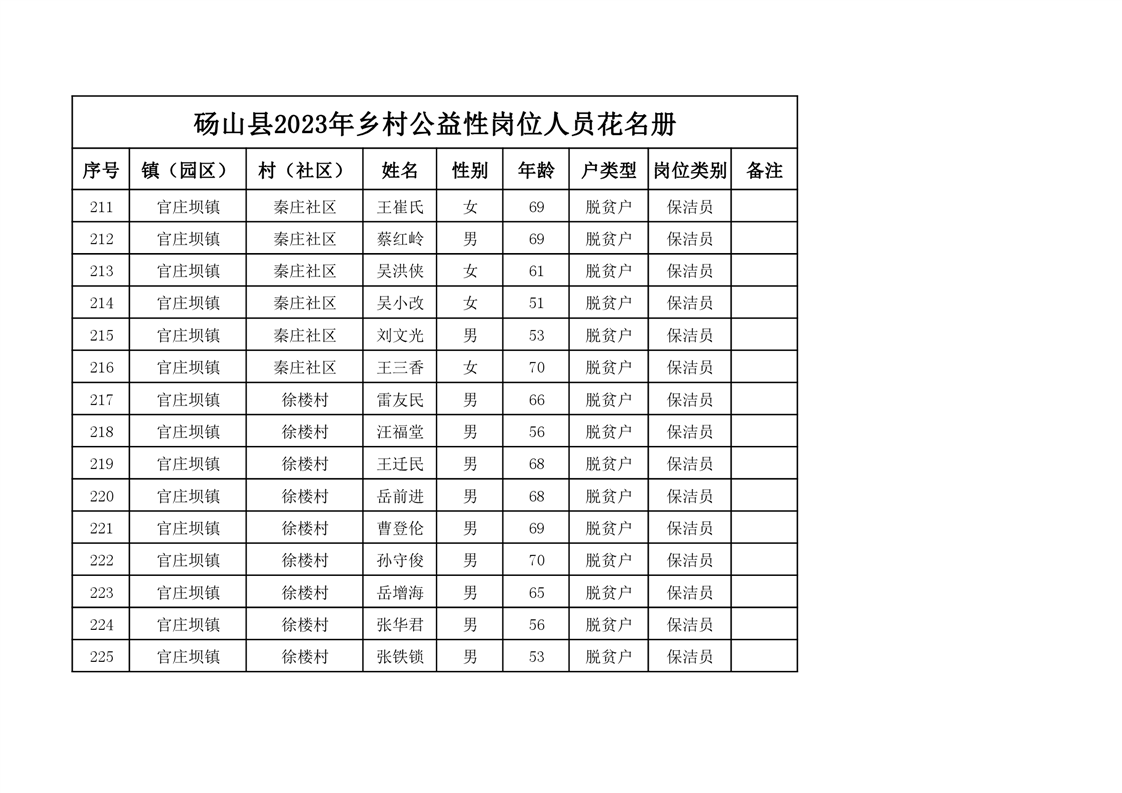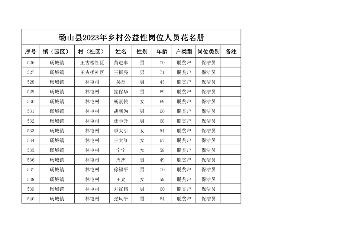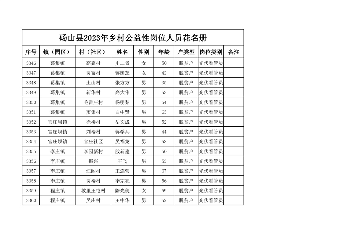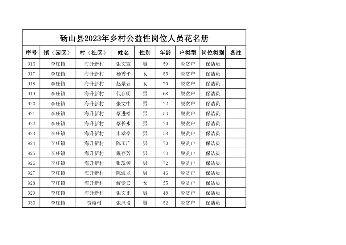 附件:砀山县2023年乡村公益性岗位拟安置人员花名册