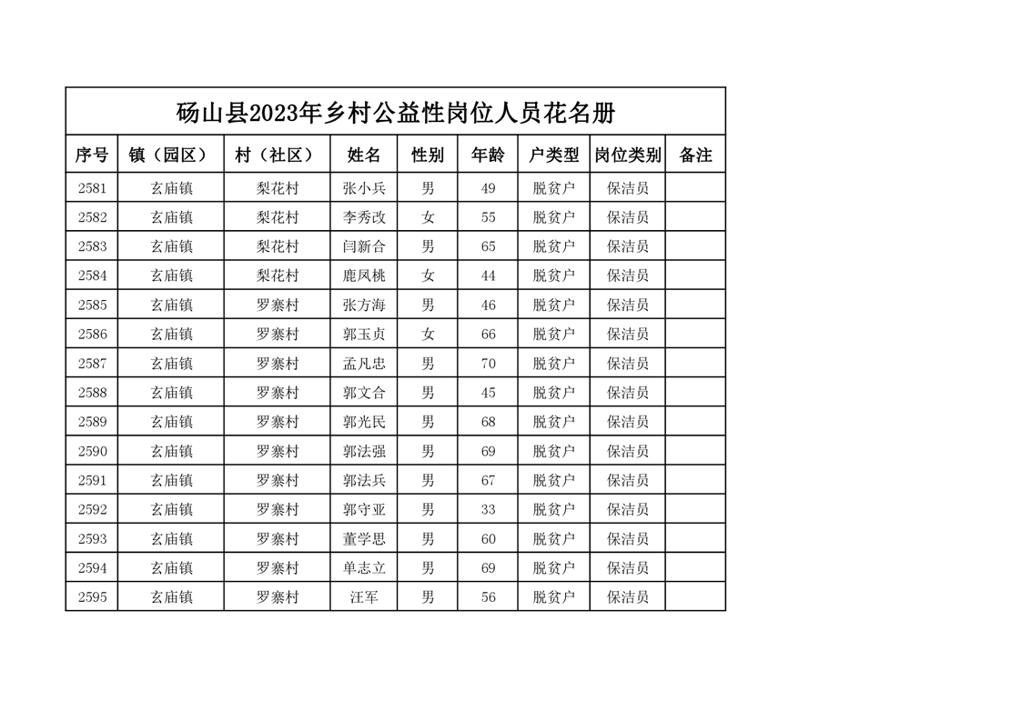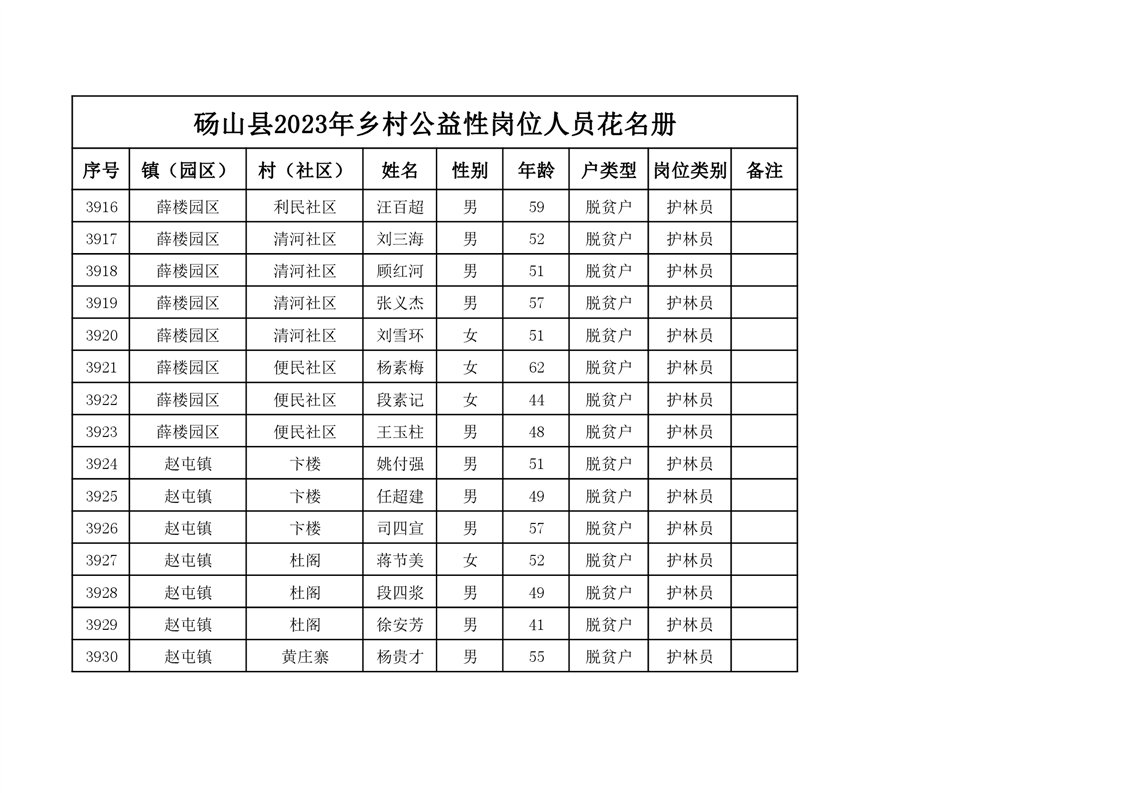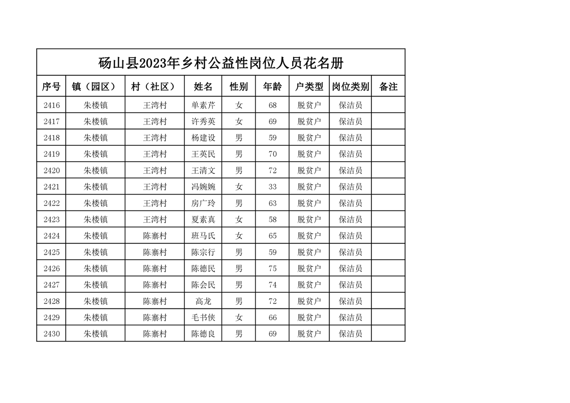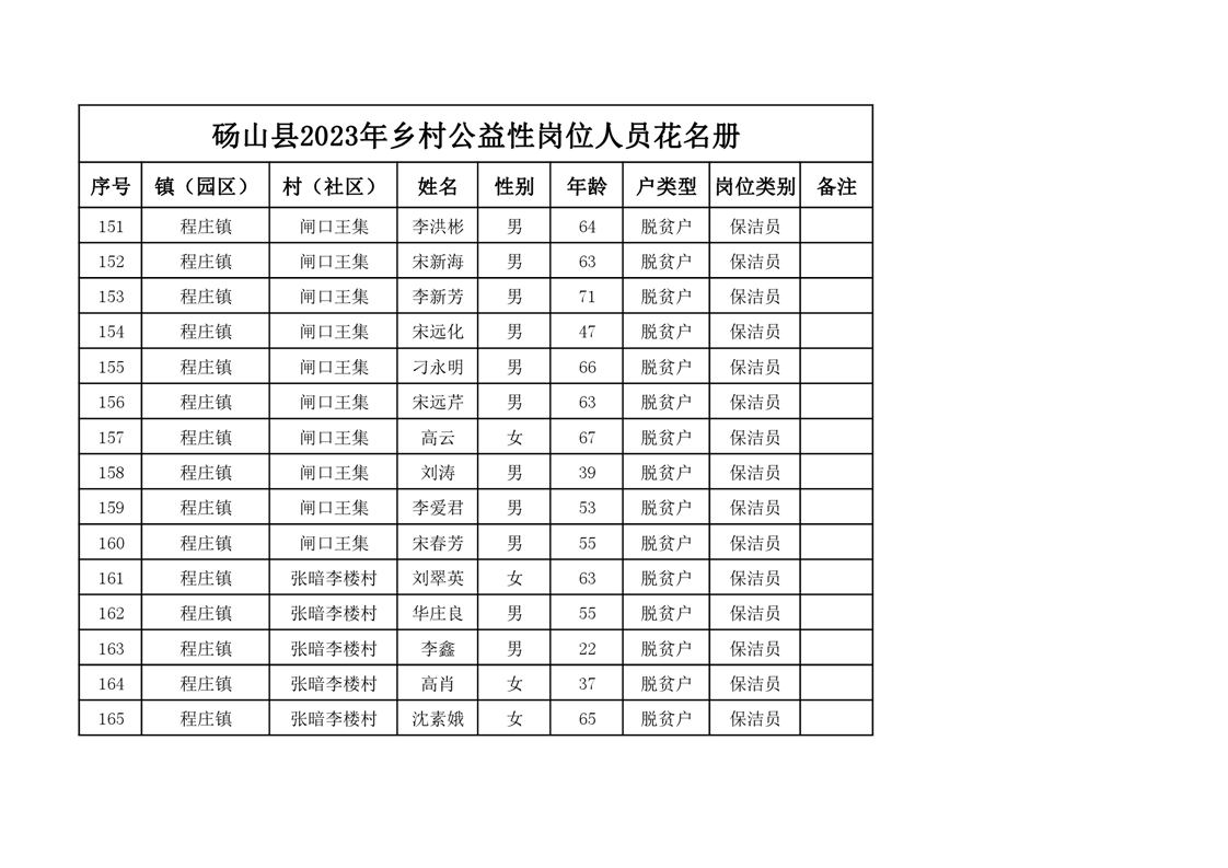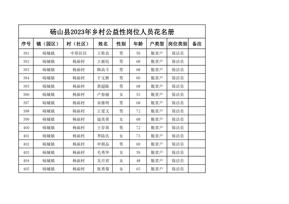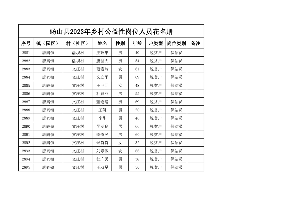 附件:砀山县2023年乡村公益性岗位拟安置人员花名册