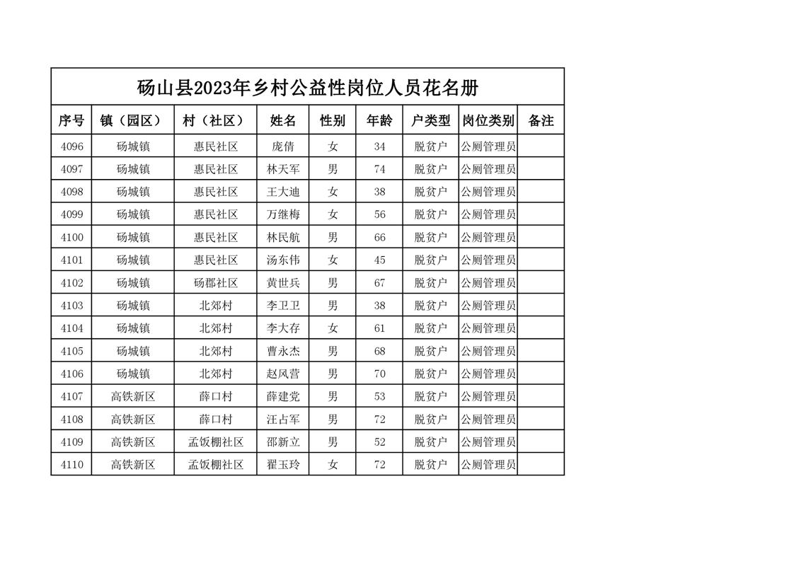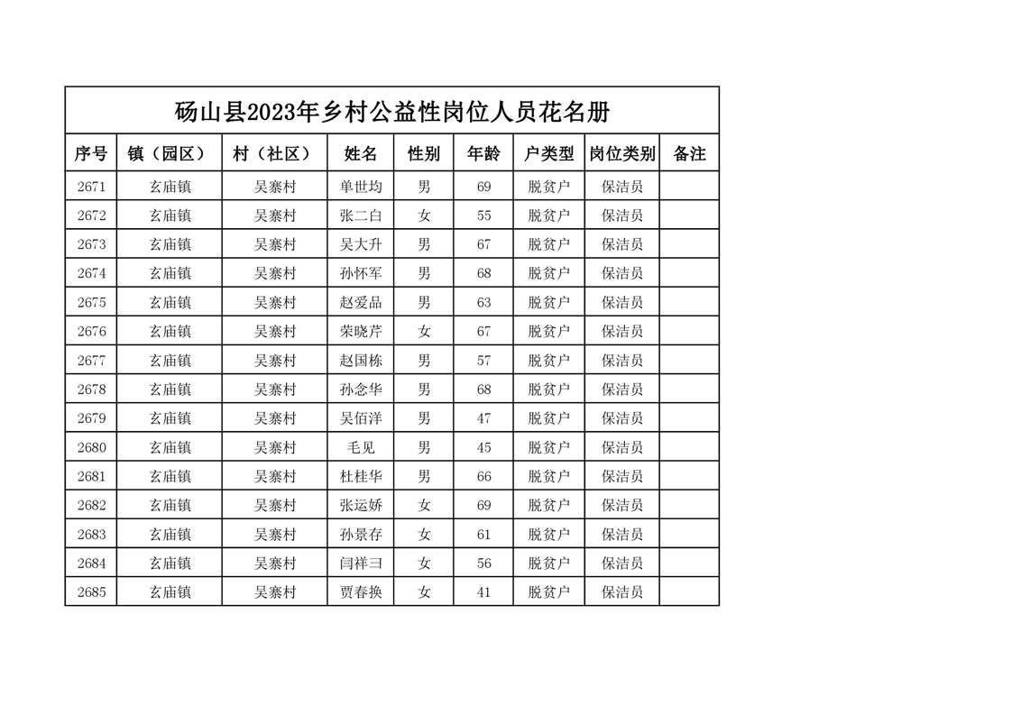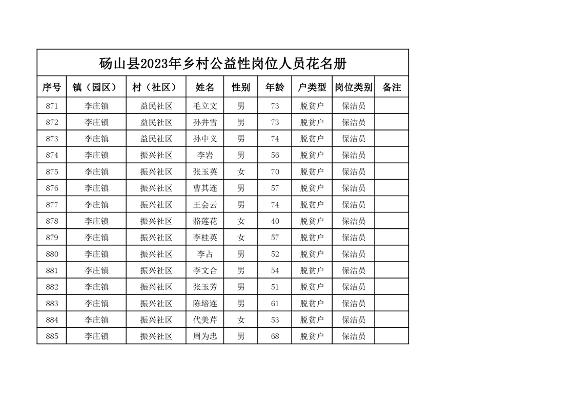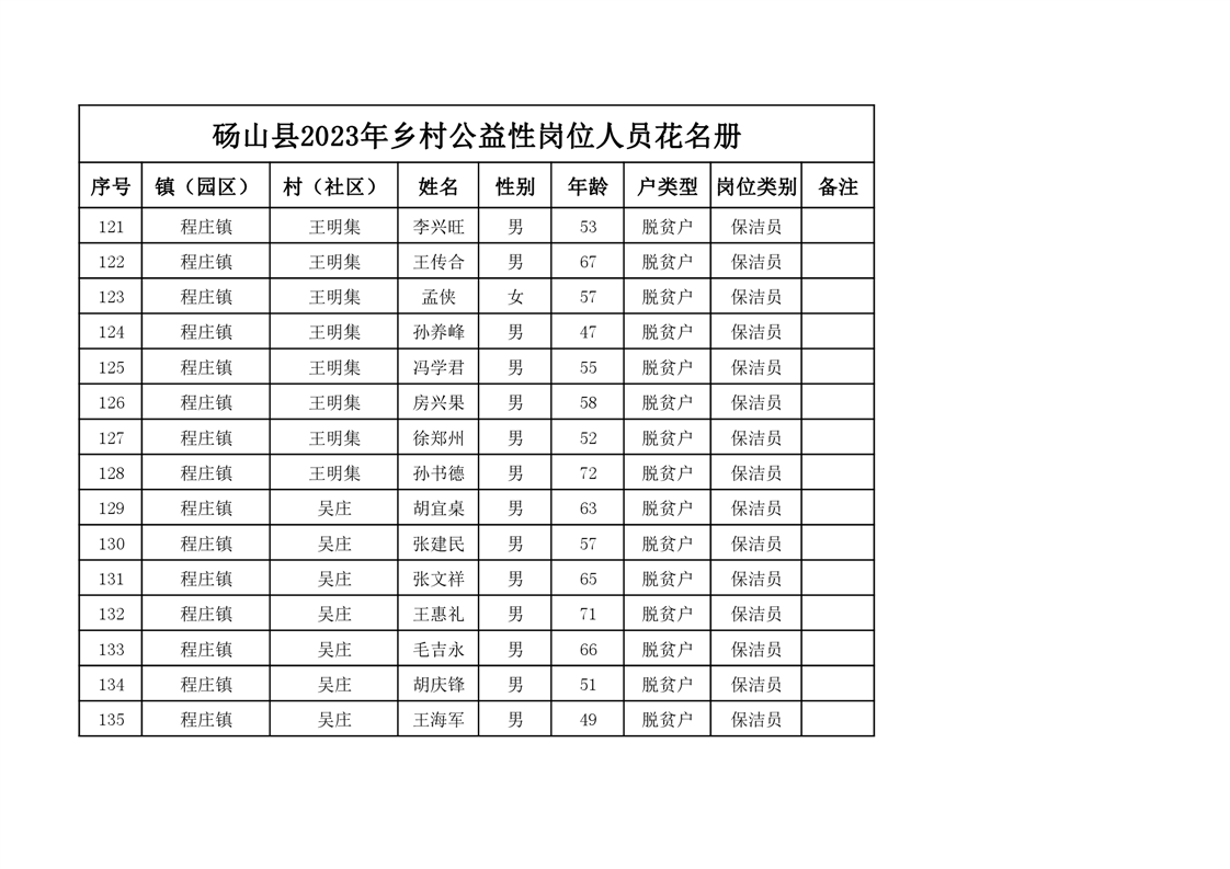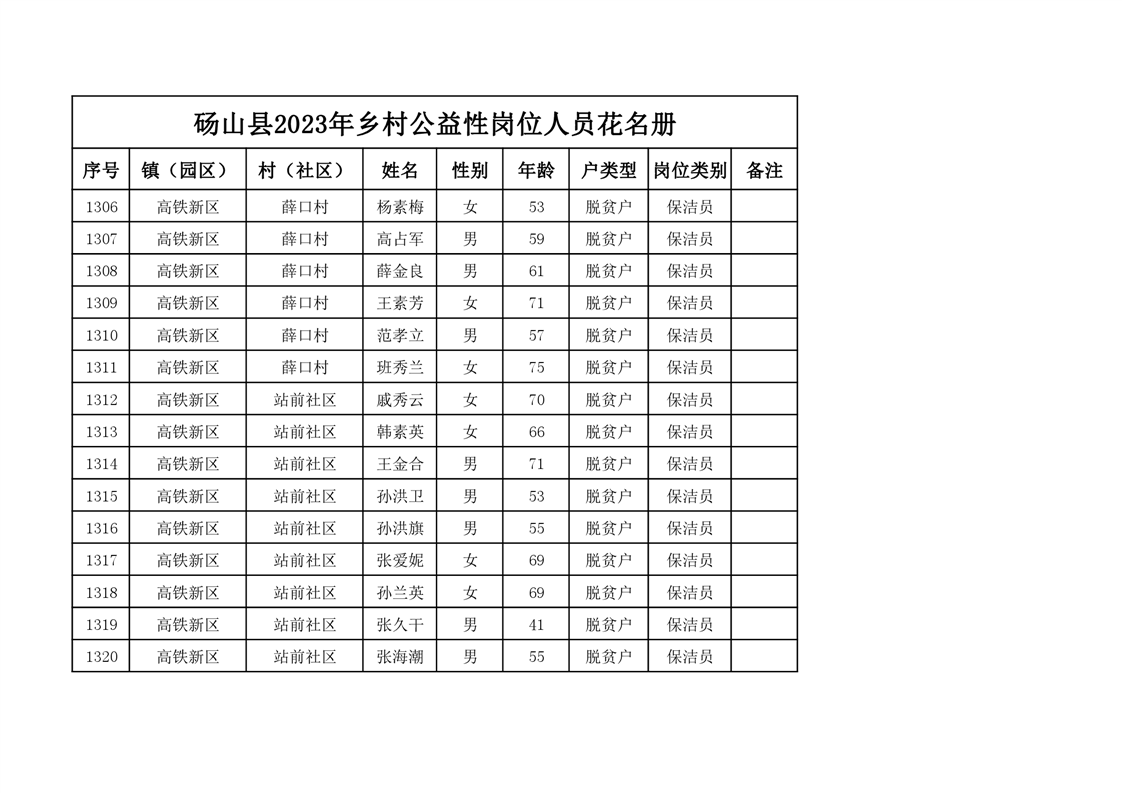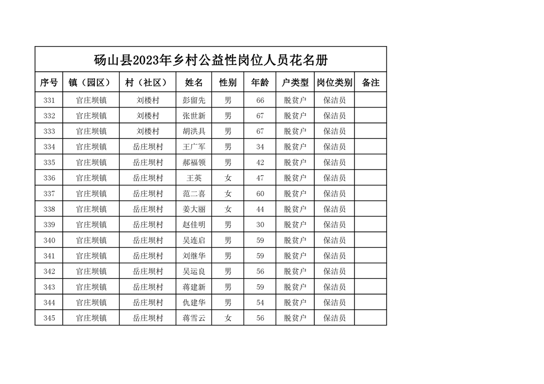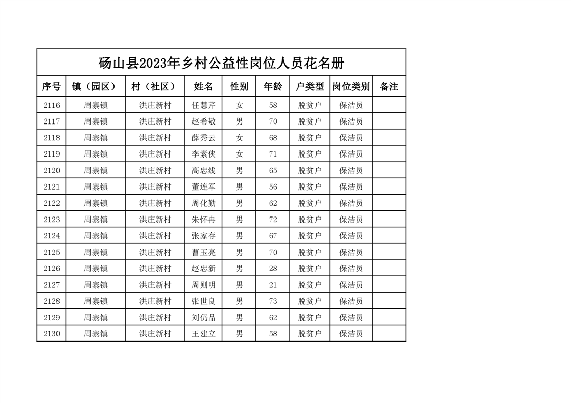 附件:砀山县2023年乡村公益性岗位拟安置人员花名册