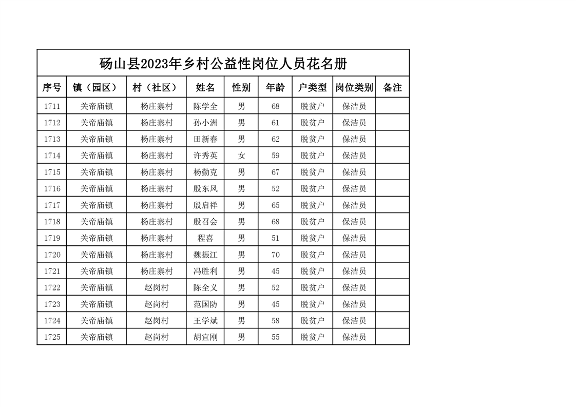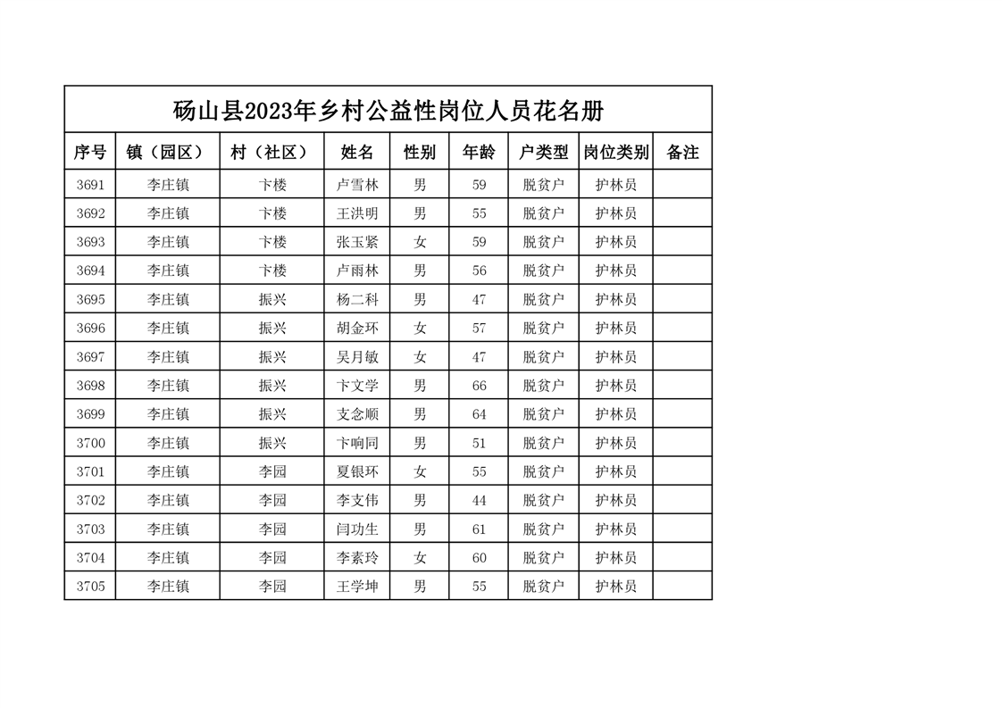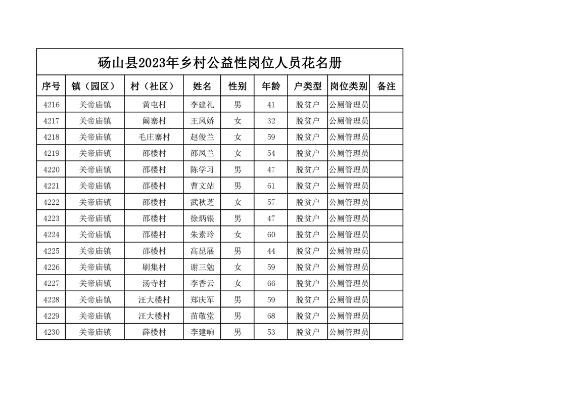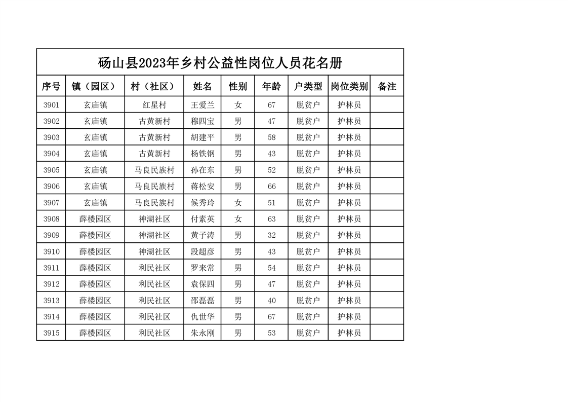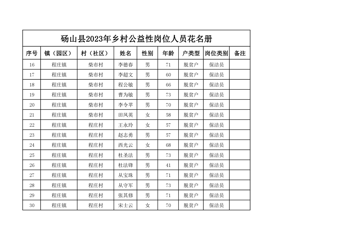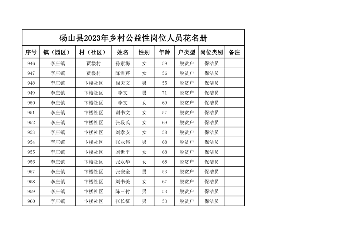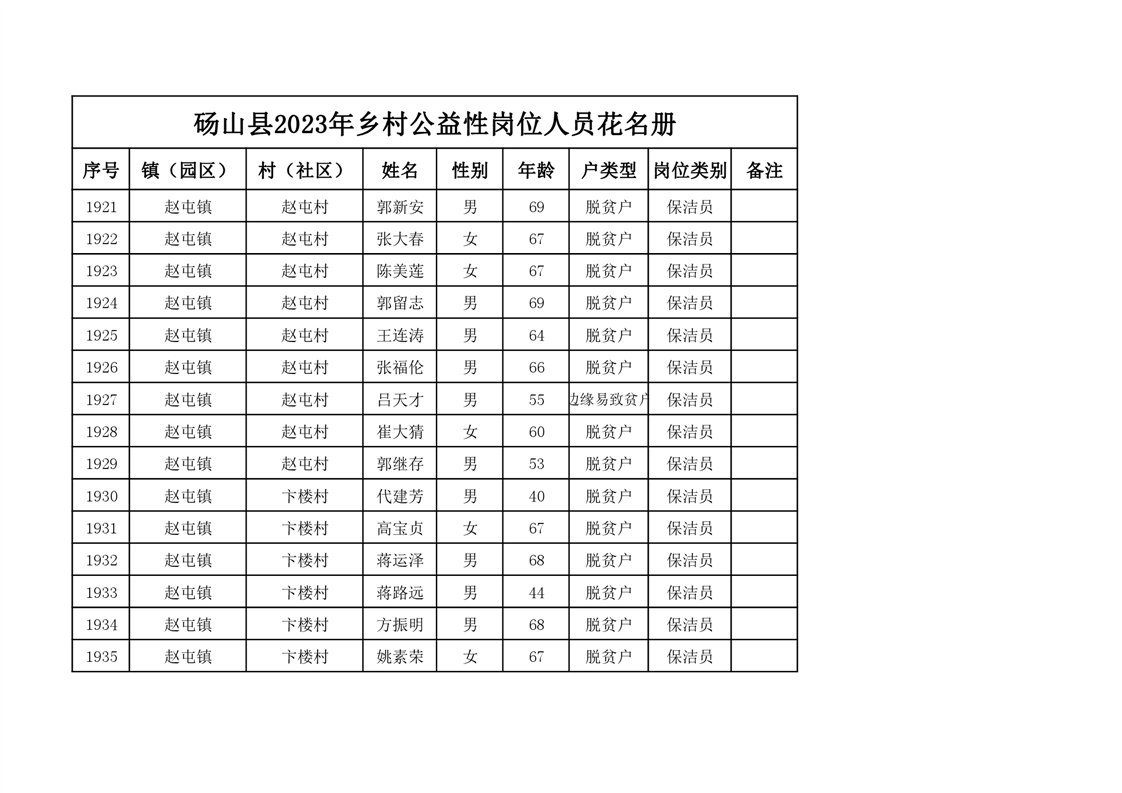 附件:砀山县2023年乡村公益性岗位拟安置人员花名册