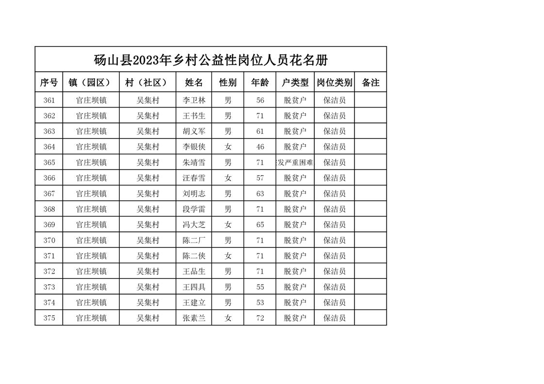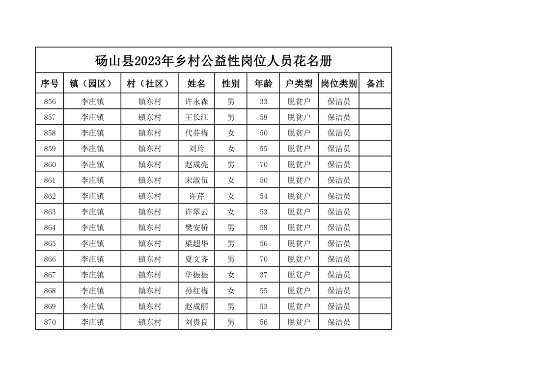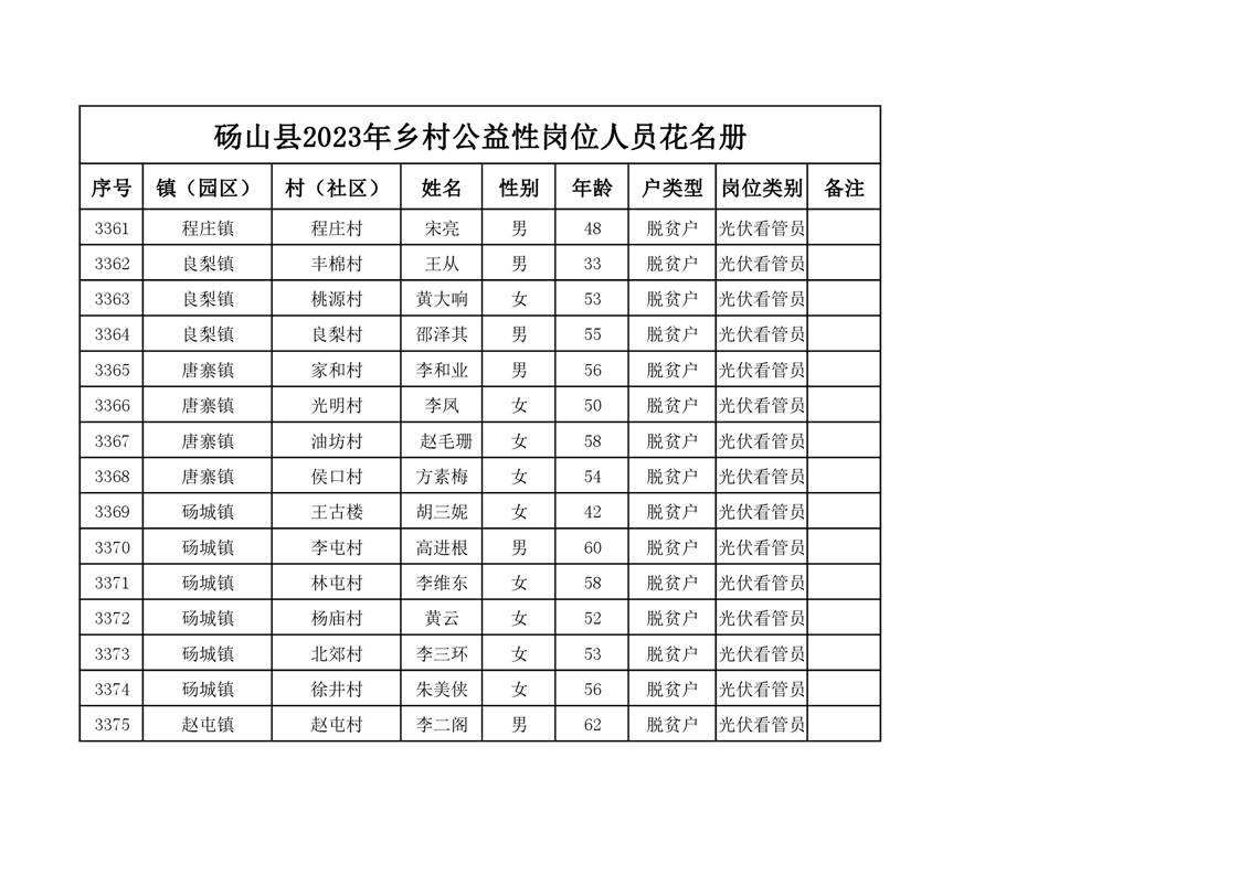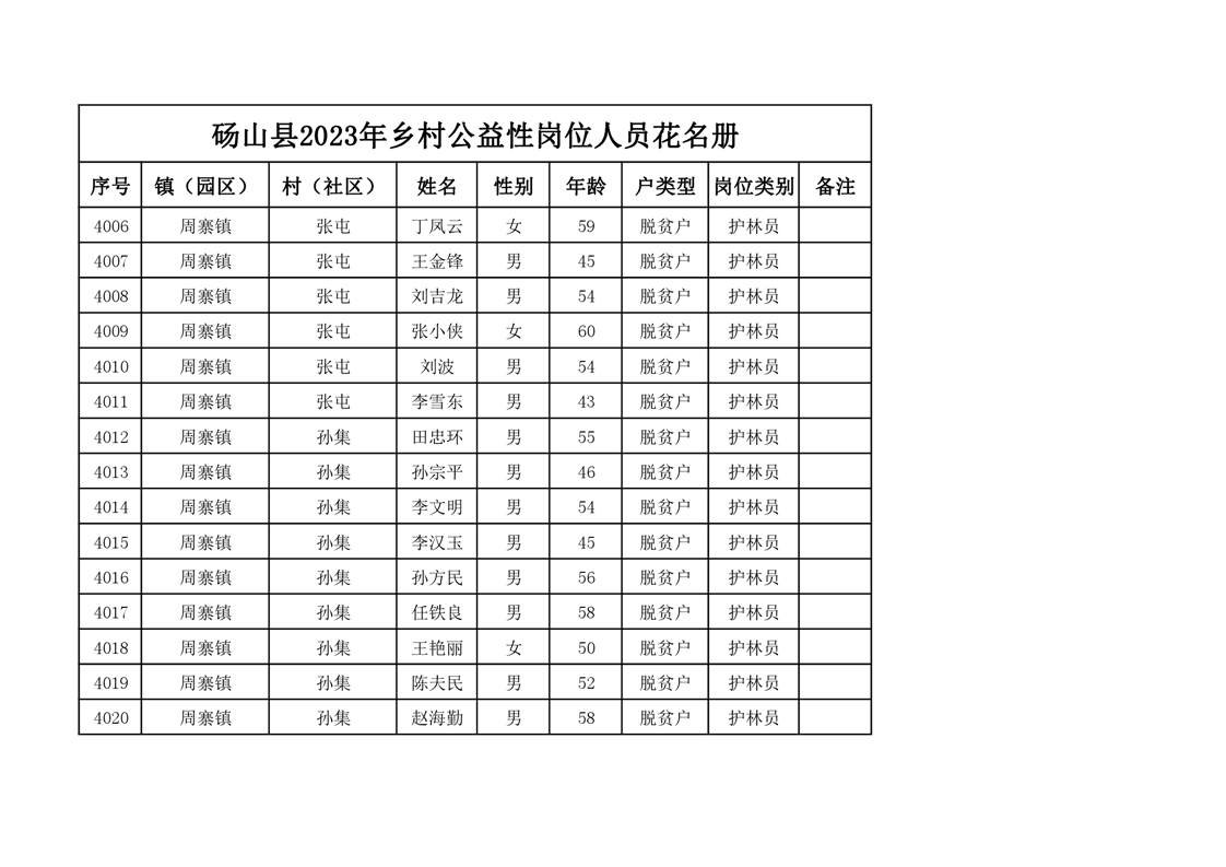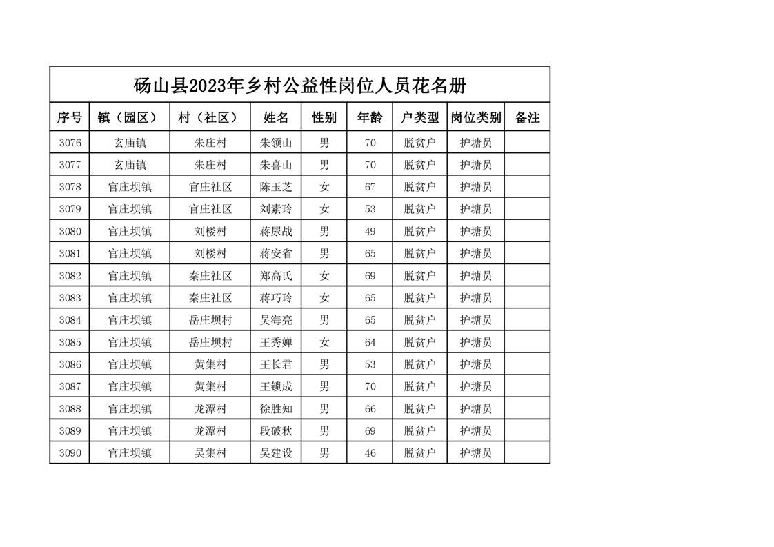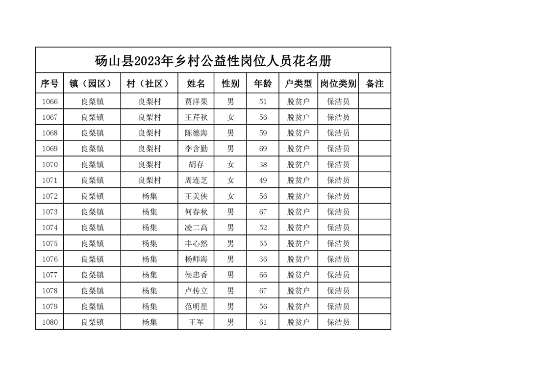附件:砀山县2023年乡村公益性岗位拟安置人员花名册