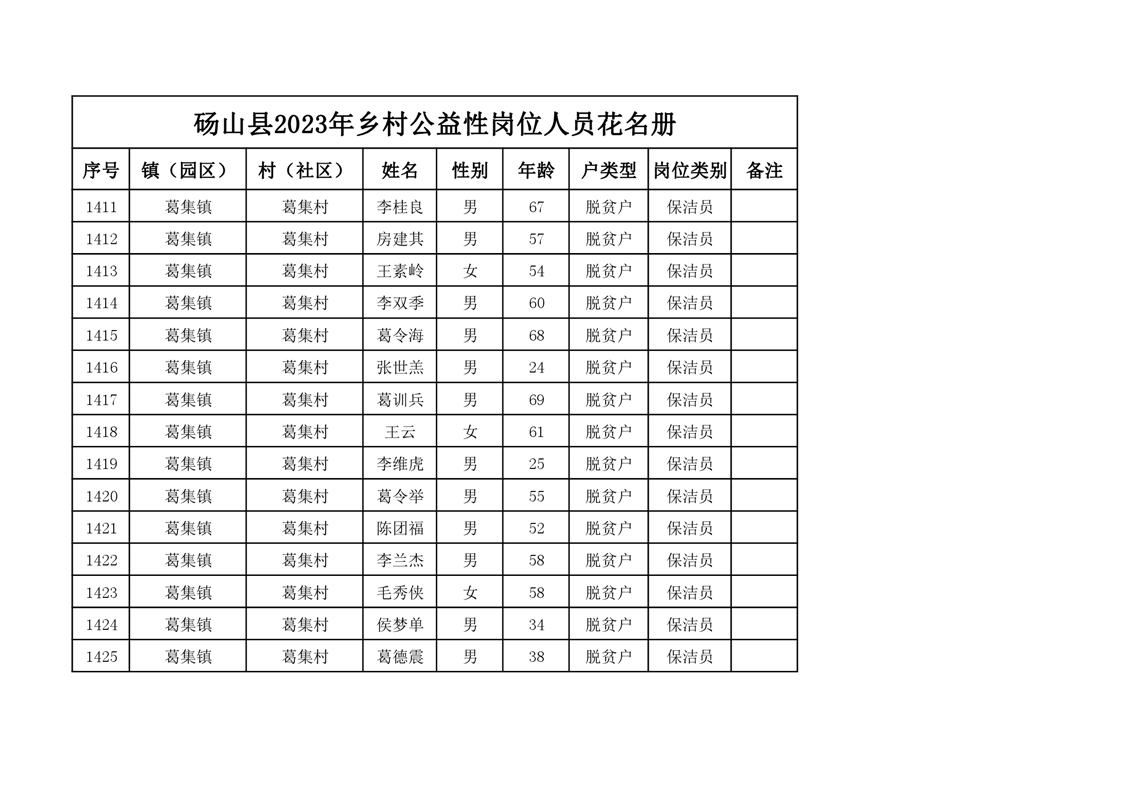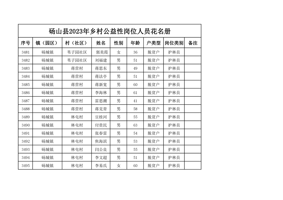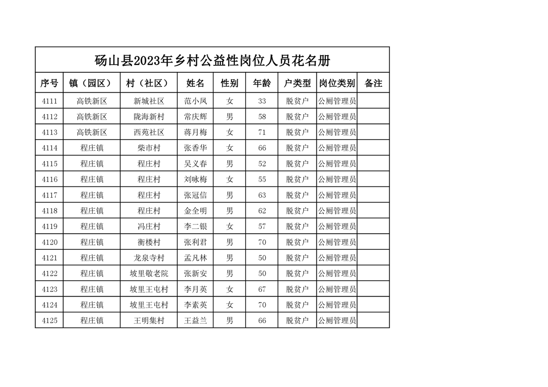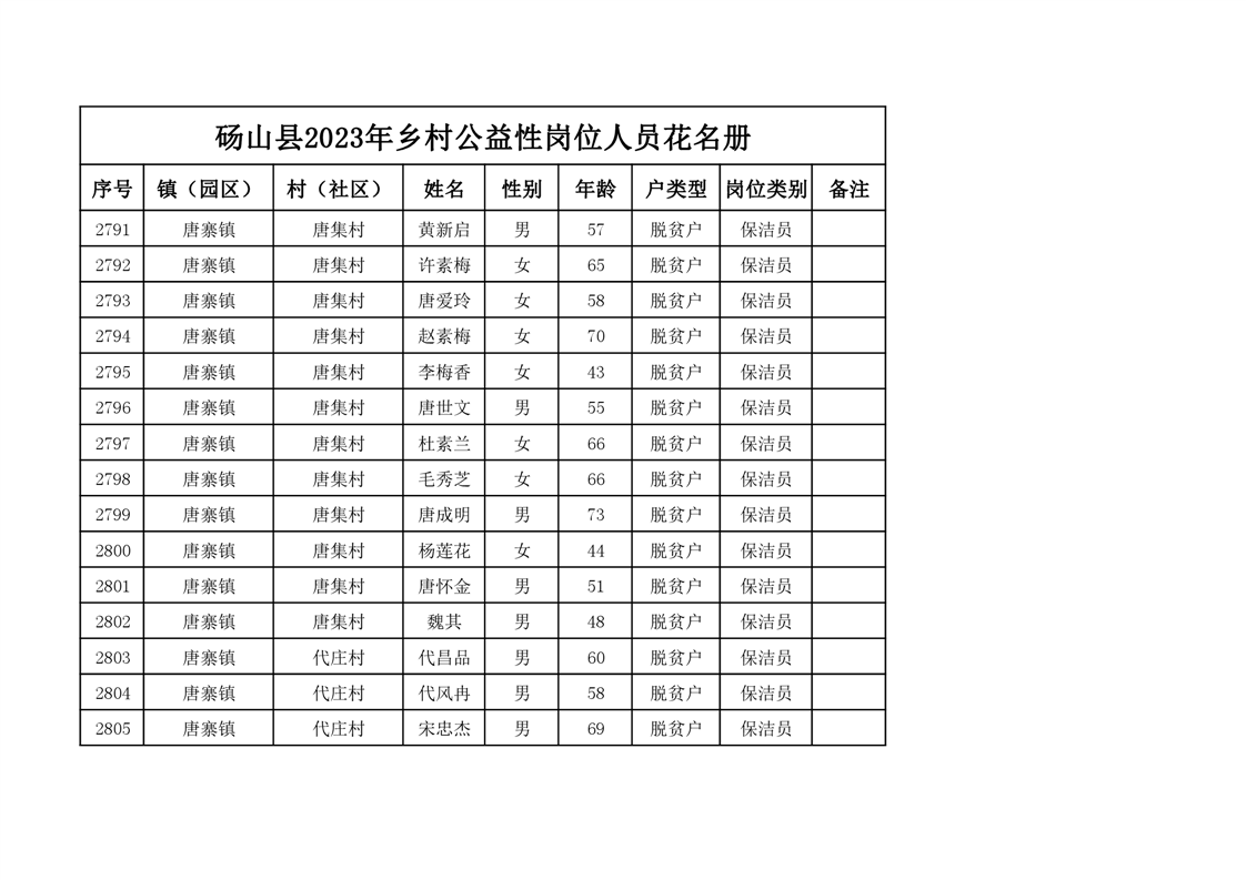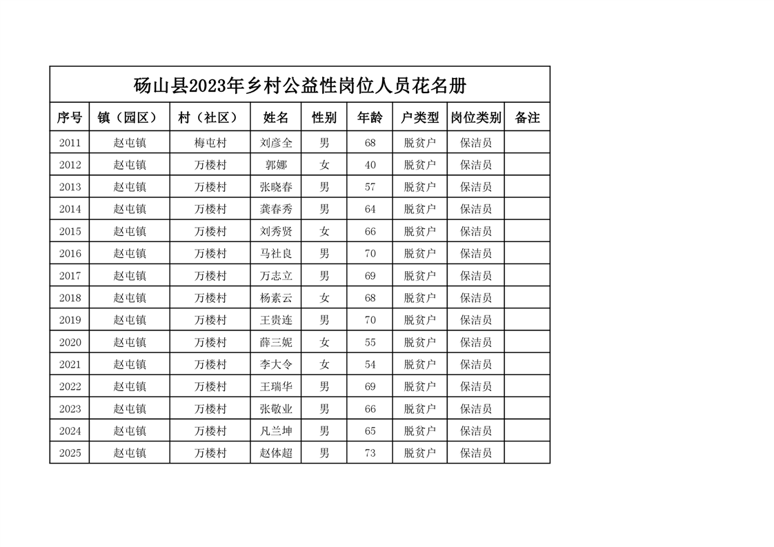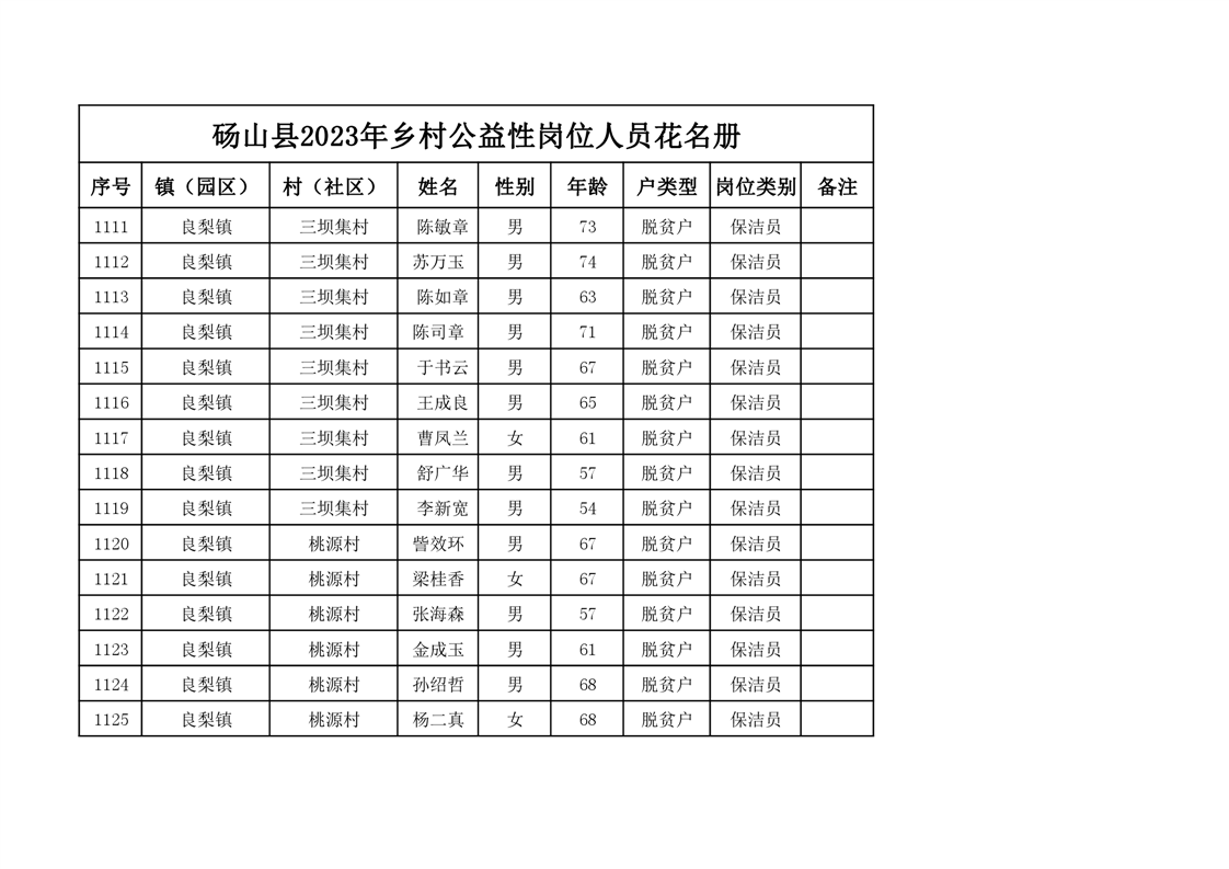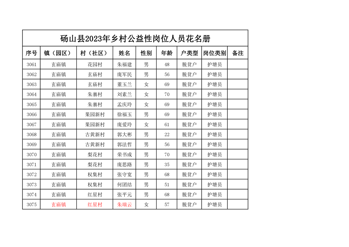 附件:砀山县2023年乡村公益性岗位拟安置人员花名册