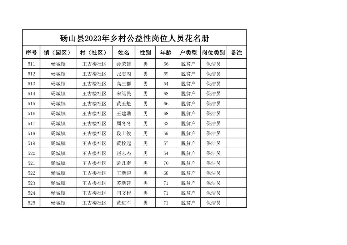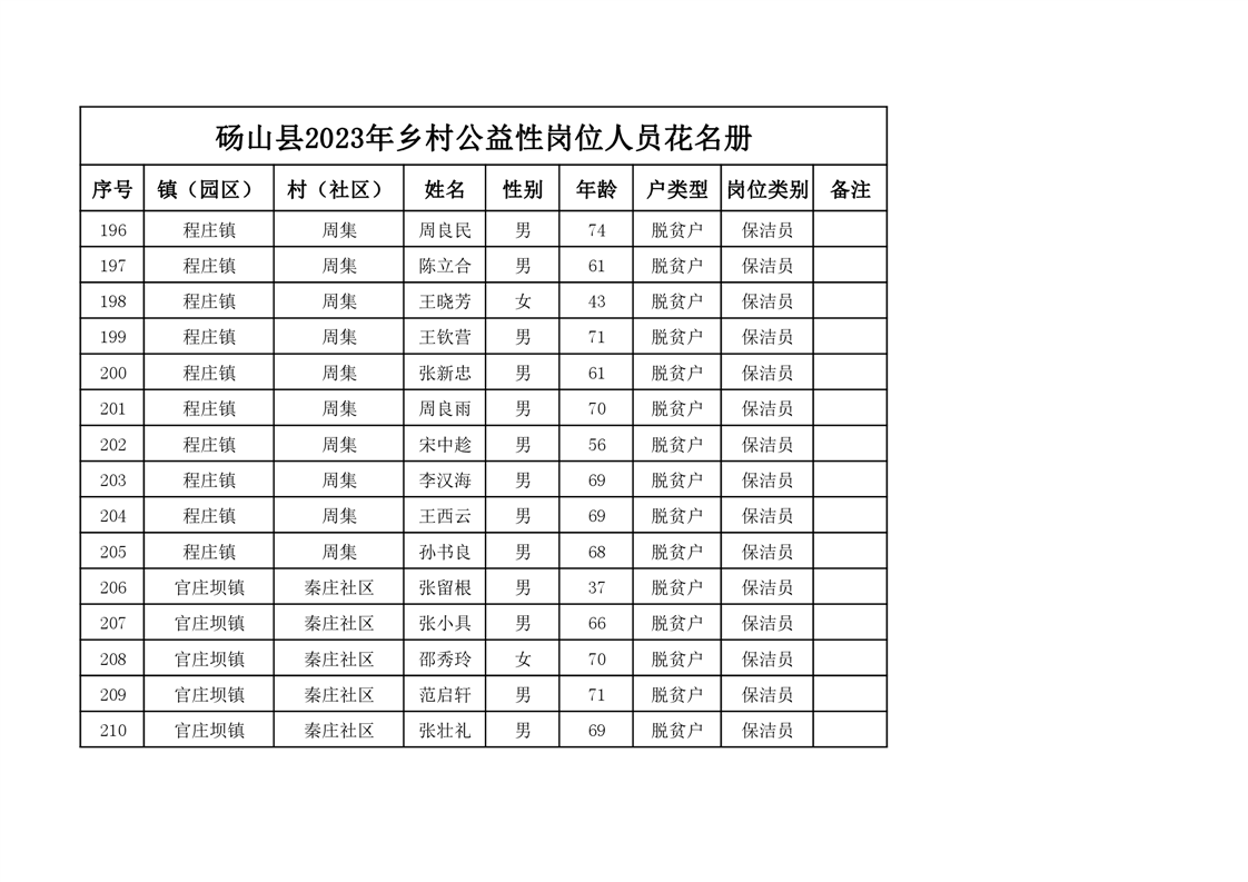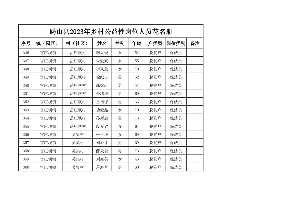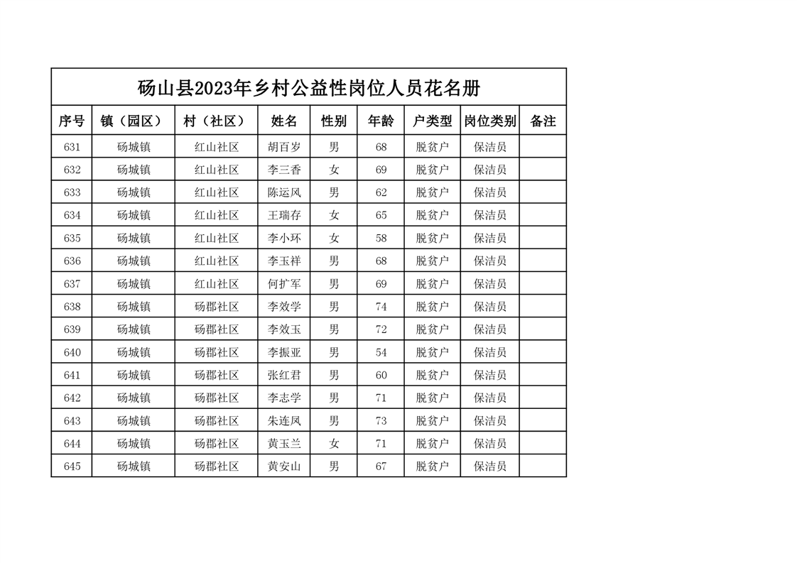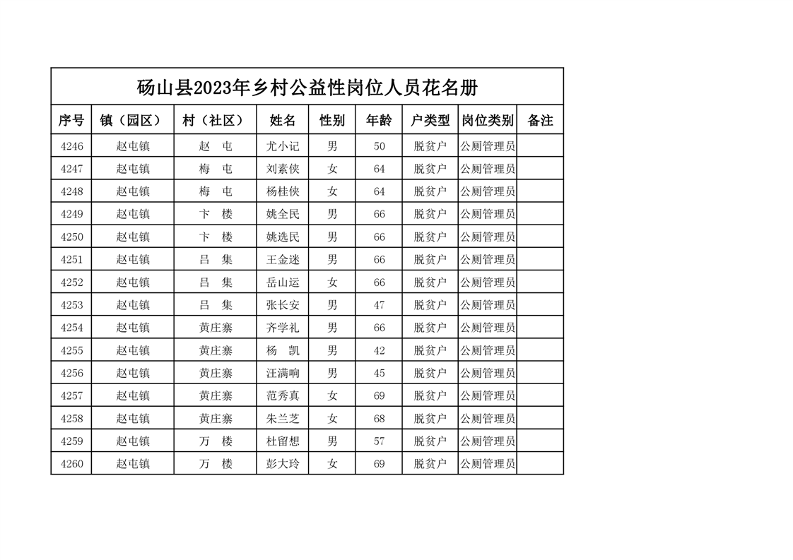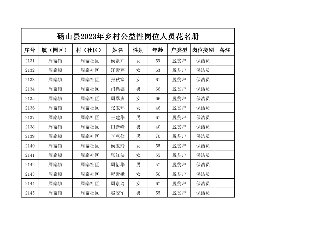 附件:砀山县2023年乡村公益性岗位拟安置人员花名册