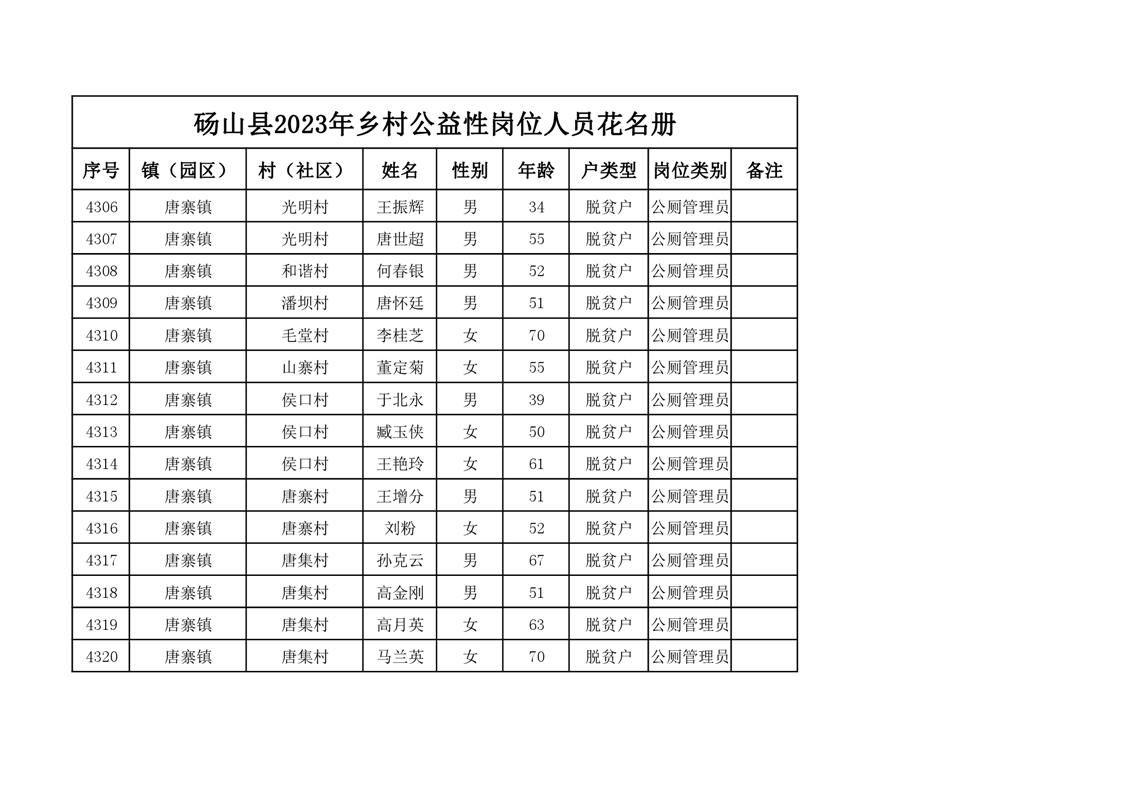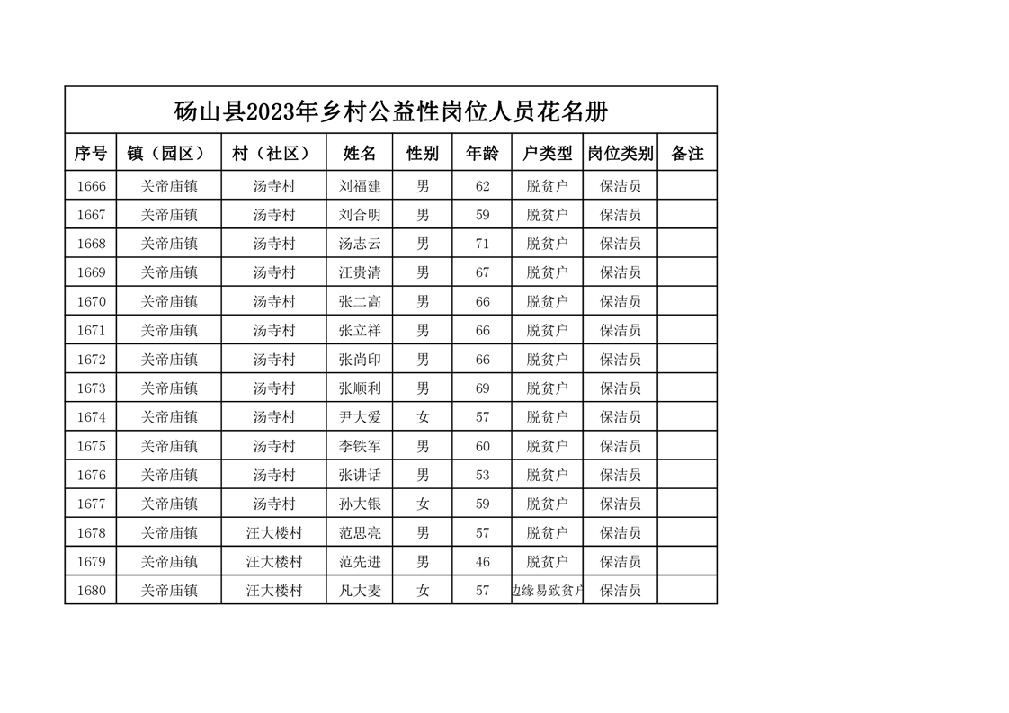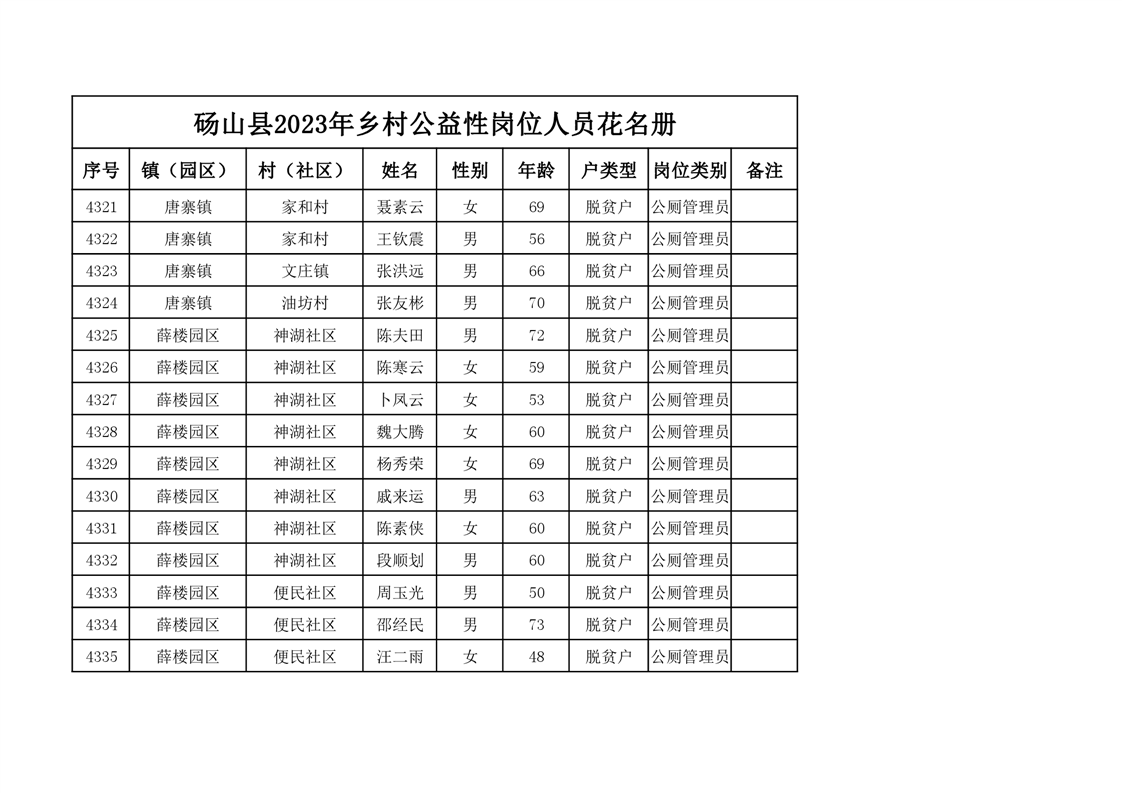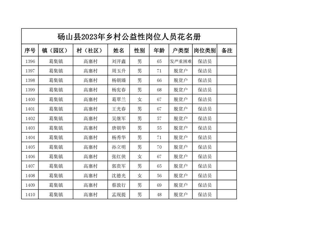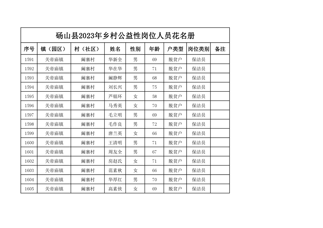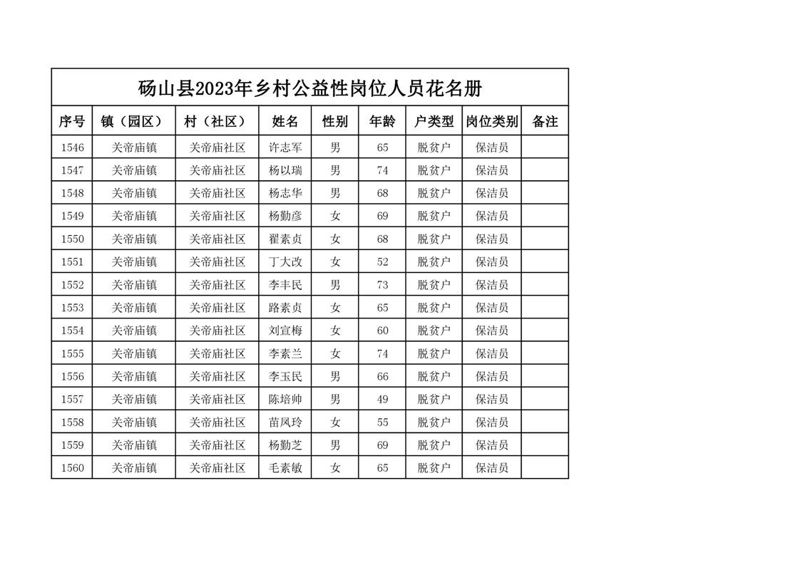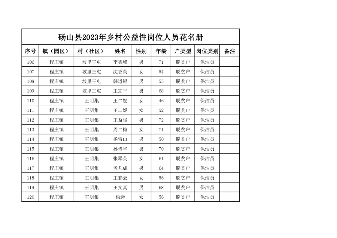 附件:砀山县2023年乡村公益性岗位拟安置人员花名册