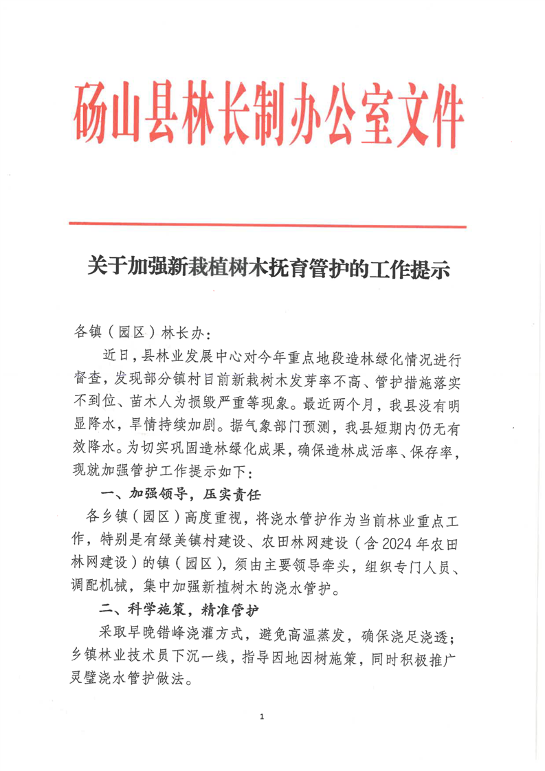 关于加强新栽植树木抚育管护的工作提示 |