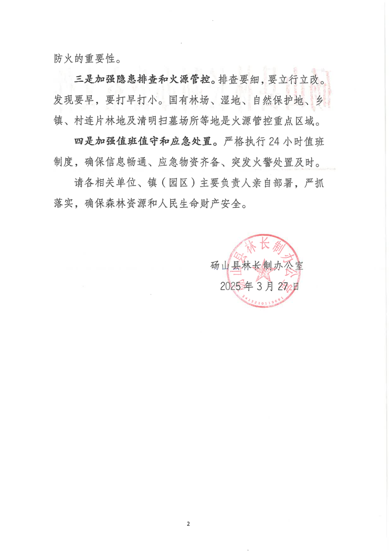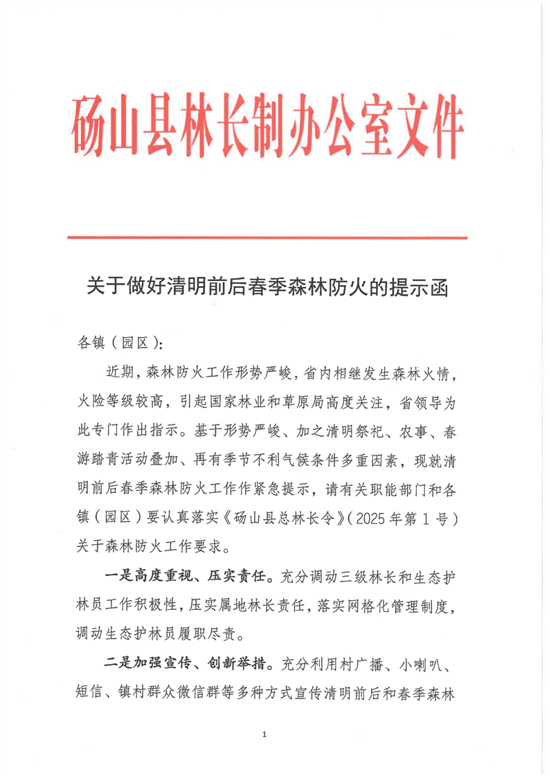 关于做好清明前后春季森林防火的提示函 |