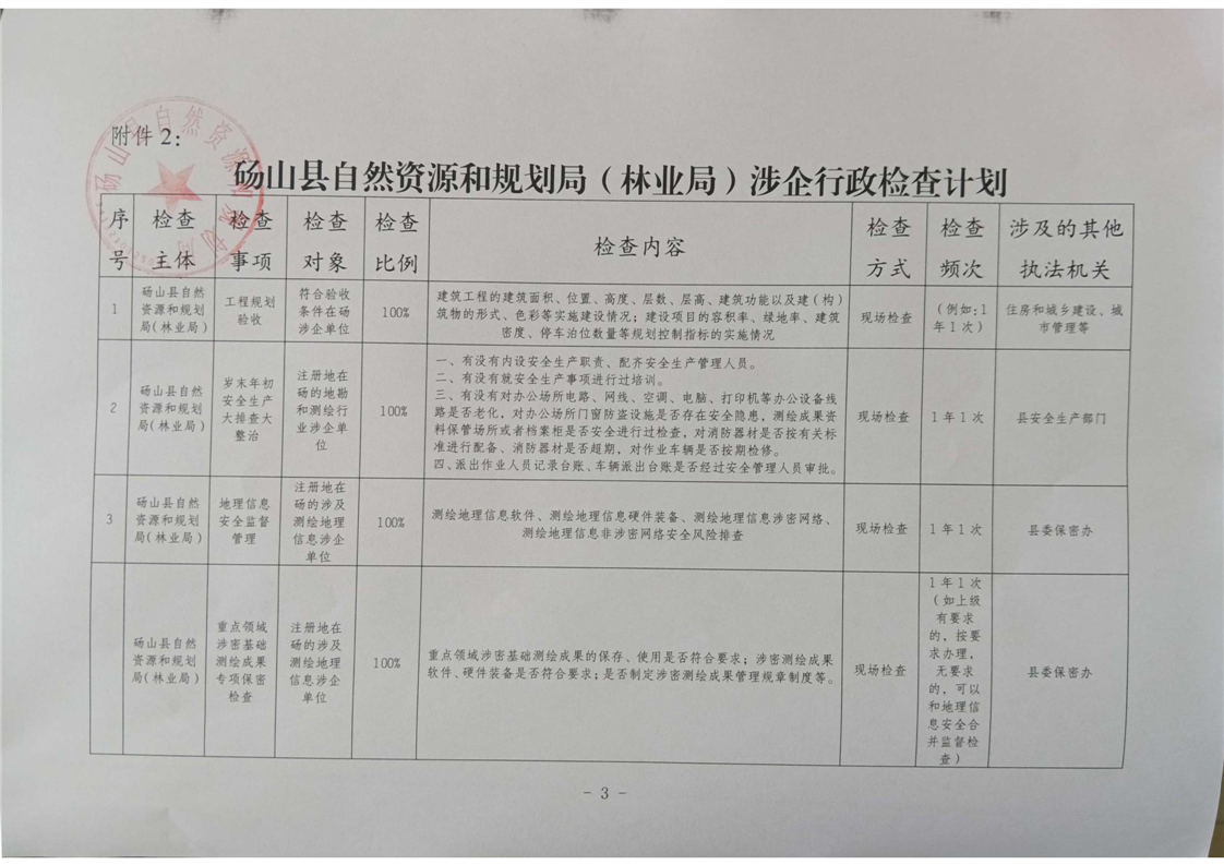 自然资源和规划局涉企行政检查事项清单及计划 |