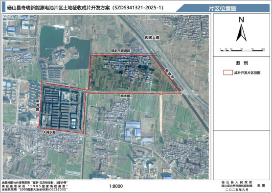 根据《中华人民共和国土地管理法》、自然资源部关于印发<土地征收成片开发标准>的通知》(自然资规〔2023〕7号)与《安徽省土地征收成片开发标准实施细则》(皖自然资规〔2021〕4号)的有关规定,砀山县组织编制了《砀山县奇瑞新能源电池片区土地征收成片开发方案》(以下简称《方案》)。现将《方案》核心内容予以公示,公示期限为2025年9月23日至2025年9月29日。如有意见建议,请于2025年9月30日前将署名意见或建议反馈至邮箱2696271301@qq.com。