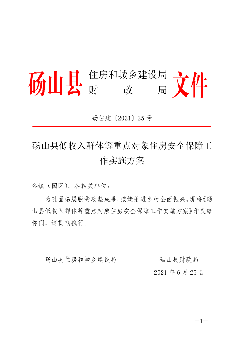 砀山县低收入群体等重点对象住房安全保障工作实施方案 |