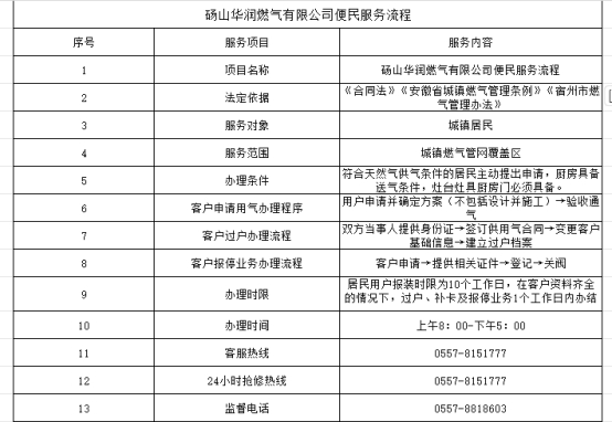 砀山华润燃气有限公司便民服务流程 |