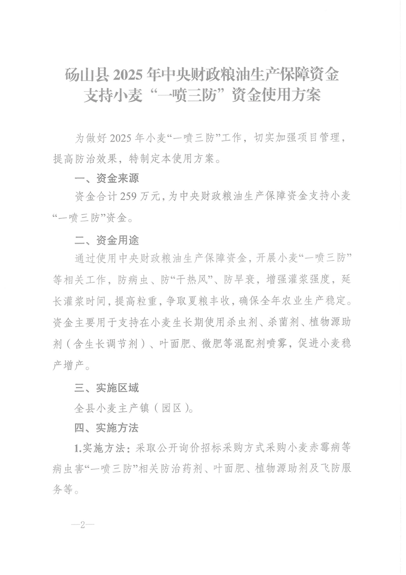 砀山县2025年中央财政粮油生产保障资金支持小麦“一喷三防”资金使用方案 |