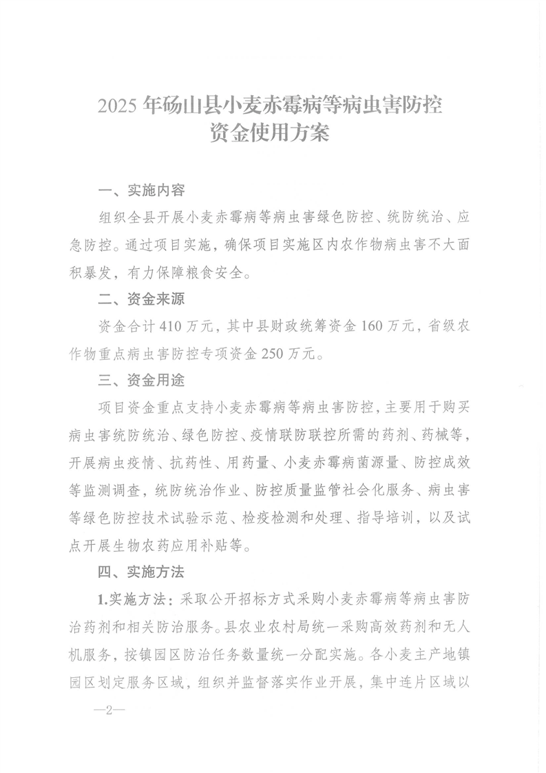 2025年砀山县小麦赤霉病等病虫害防控资金使用方案 |