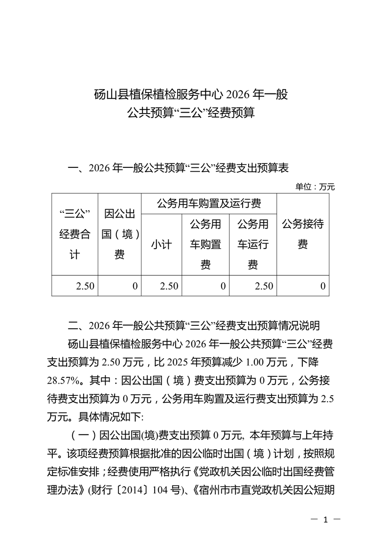 砀山县植保植检服务中心2026年一般公共预算“三公”经费预算