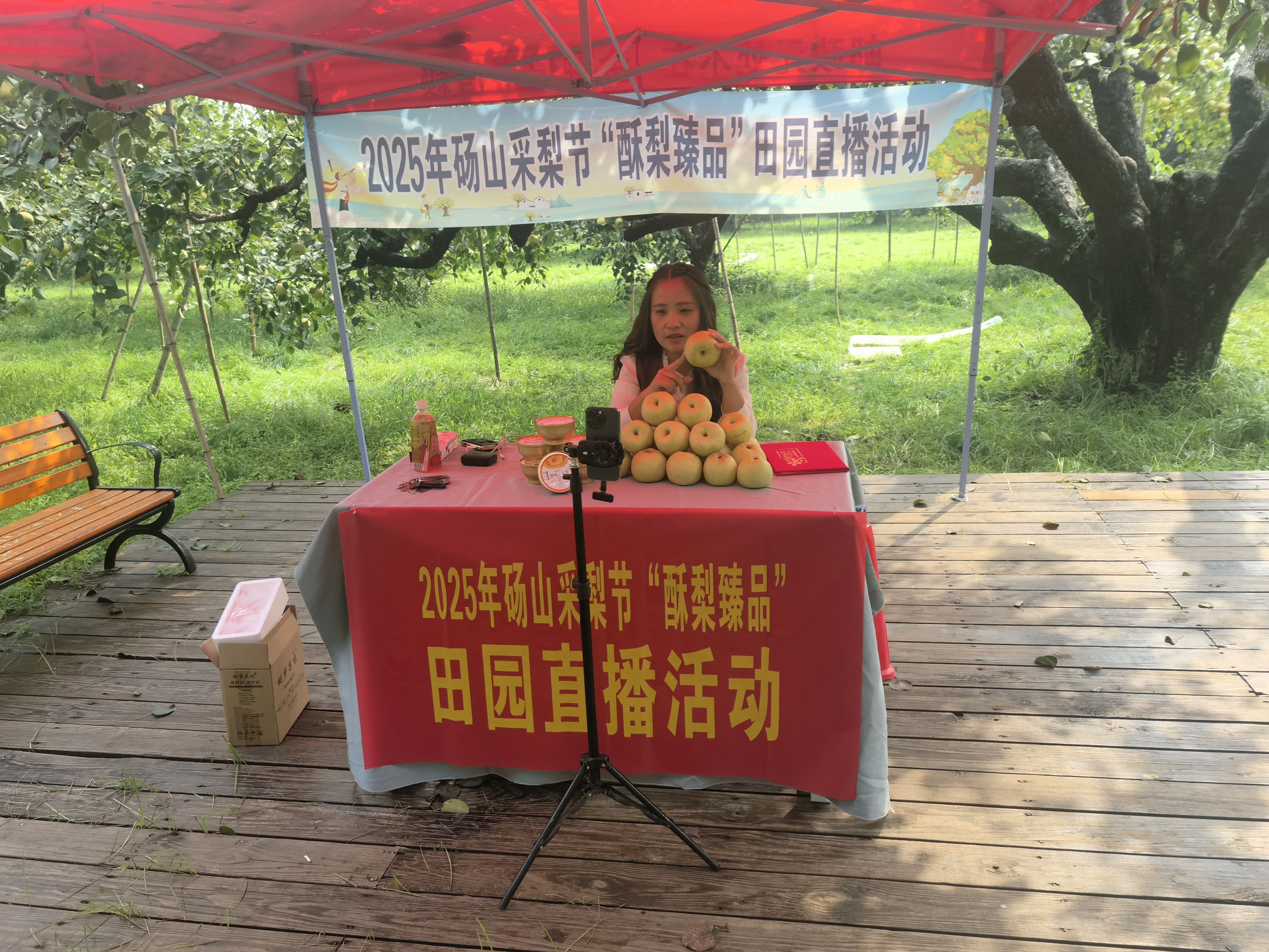 2025年9月13日上午,由砀山县商务局主办,县电商协会、砀山邮政分公司、安徽龙润堂生物科技有限公司承办,县总工会、县融媒体中心协办的2025年砀山采梨节“酥梨臻品”田园直播活动在梨树王景区成功举办。活动以“云采摘+溯源直播+即时寄递”的模式,为长三角乃至全国网友奉上一场酥梨盛宴。