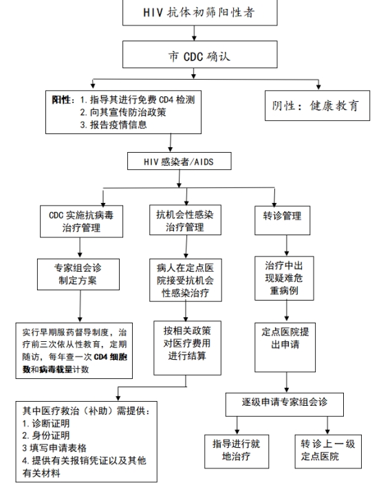 砀山县人民医院负责艾滋病病人的抗病毒治疗、治疗中体检,以及机会性感染处理工作。