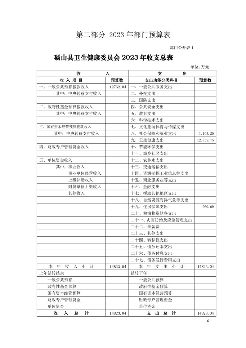 砀山县卫生健康委员会2023年部门预算公开 |