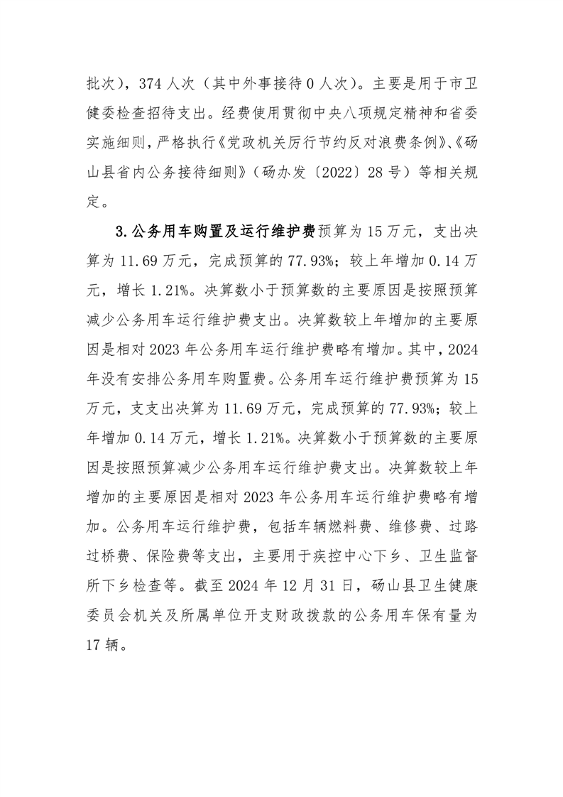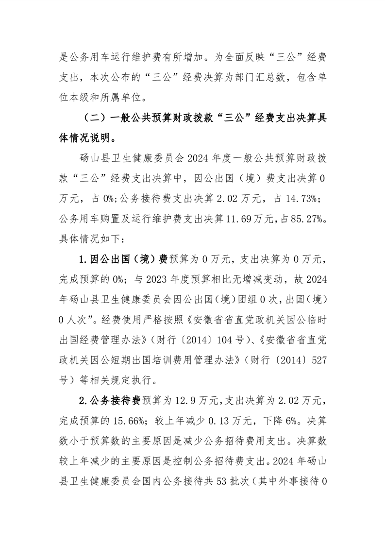 砀山县卫生健康委员会(部门)2024年一般公共预算财政拨款“三公”经费支出决算