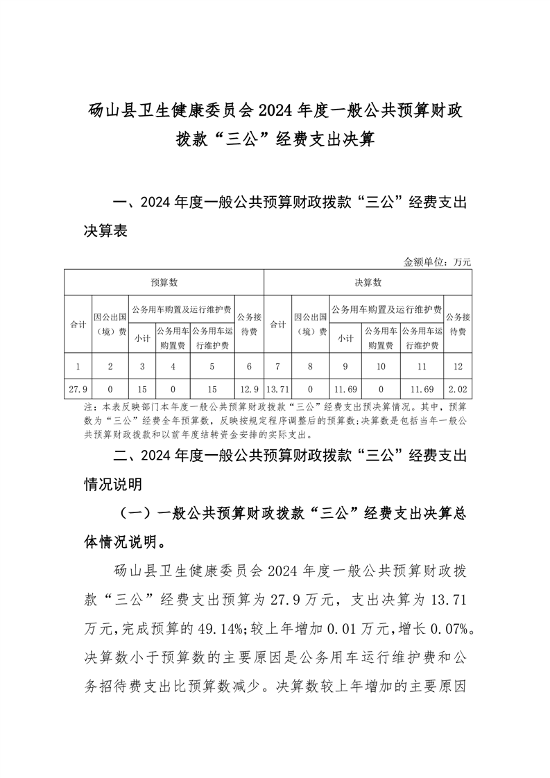 砀山县卫生健康委员会(部门)2024年一般公共预算财政拨款“三公”经费支出决算 |