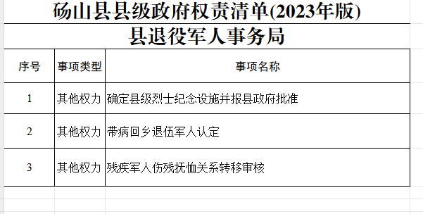 【其他权力】砀山县退役军人事务局其他权力清单