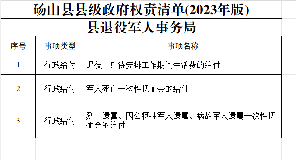 【行政给付】砀山县退役军人事务局行政给付清单 |