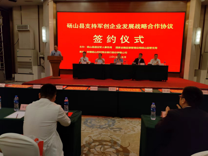 2024年5月9日上午,砀山县支持军创企业发展战略合作协议“拥军优贷”—致敬最可爱的人签约仪式在青山大酒店四楼会议厅举行。