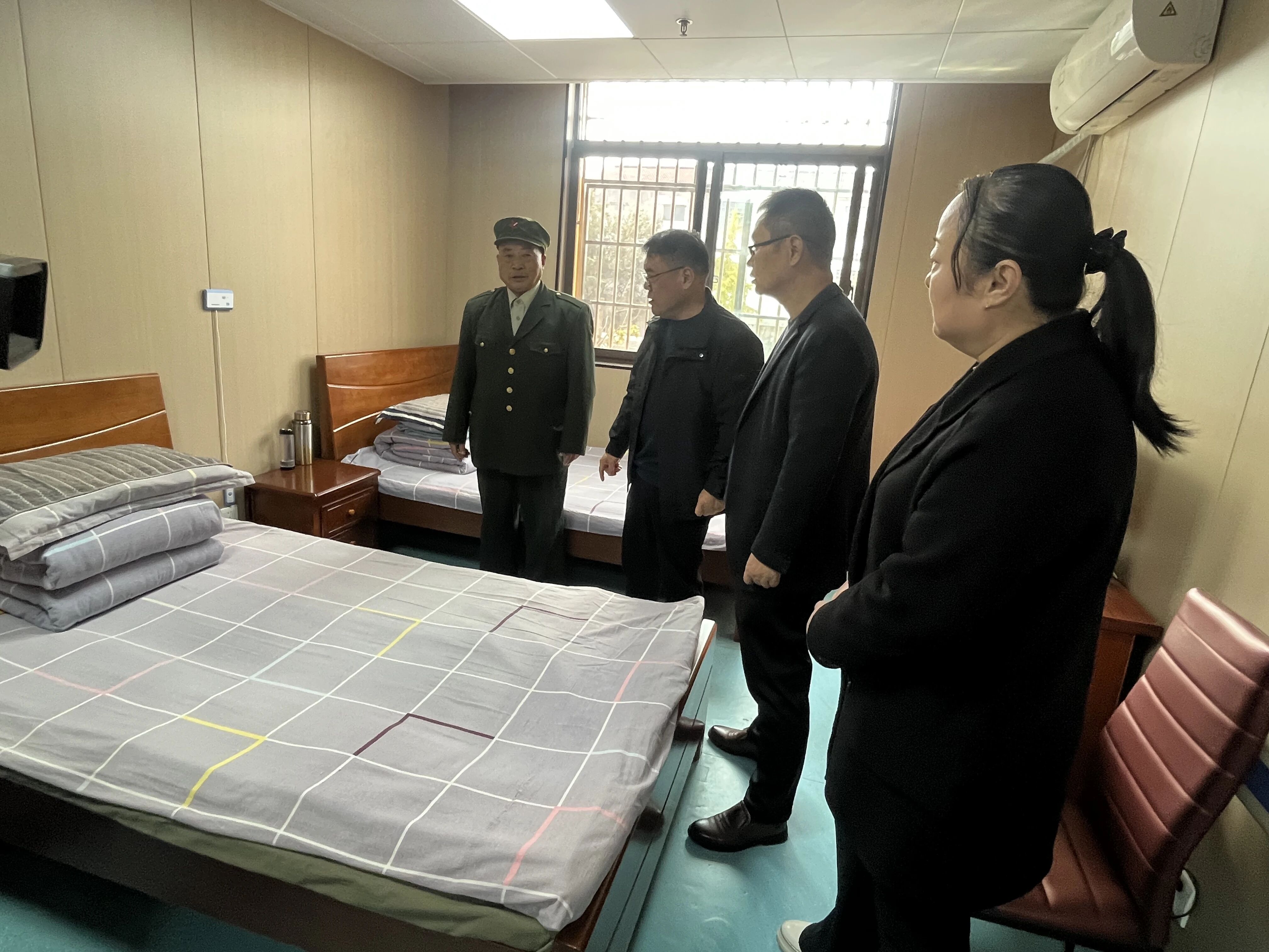 随后,信晓号局长还实地查看了敬老院的宿舍、活动场所等设施,了解日常管理、医疗保障、消防安全等情况,并强调,光荣敬老院的老人们是党和国家的宝贵财富,我们要始终把老人们的冷暖放在心上,安全放在第一位,不断提升他们的幸福感和归属感.在查看食堂的环节,信晓号局长还和工作人员共同为老兵们包饺子,为重阳节增添一份暖意融融的祝福。