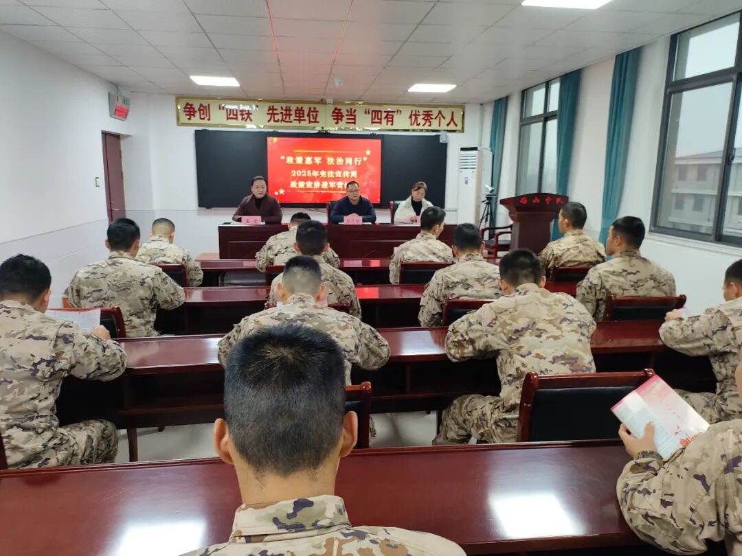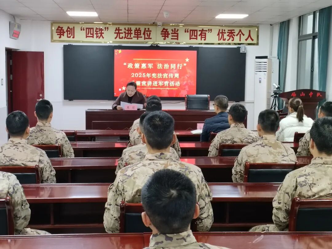 为深入推进2025年“江淮普法行”及“12·4”国家宪法宣传周活动走深走实,进一步强化部队官兵法治素养和依***能力,12月12日,砀山县退役军人事务局副局长孙志强带领相关股室负责同志和业务骨干,专程前往县武警中队开展“政策惠军 法治同行”宣讲进军营活动,为驻守在一线的广大官兵送去一份内容丰富、实用易懂的“法治大礼包”,受到官兵们的热烈欢迎。