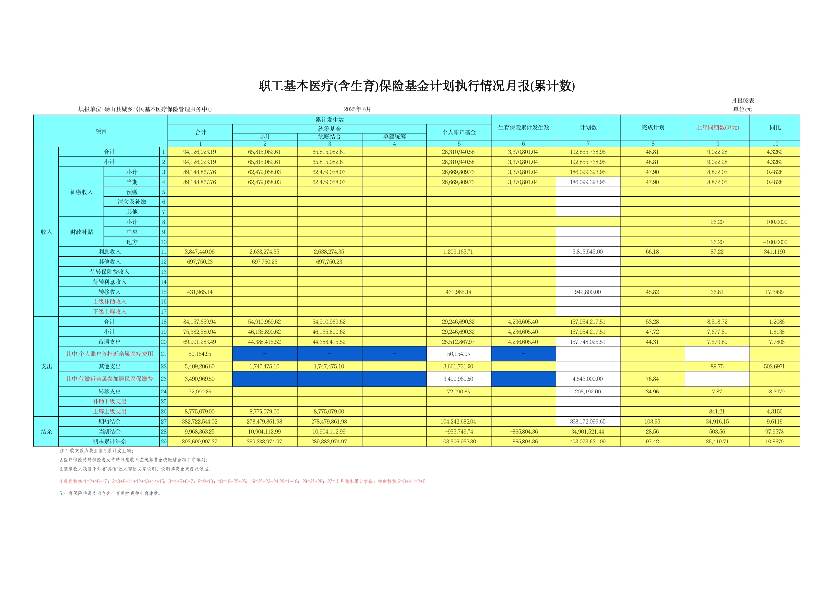 2025年6月城镇职工、城乡居民医疗保险财务报表
