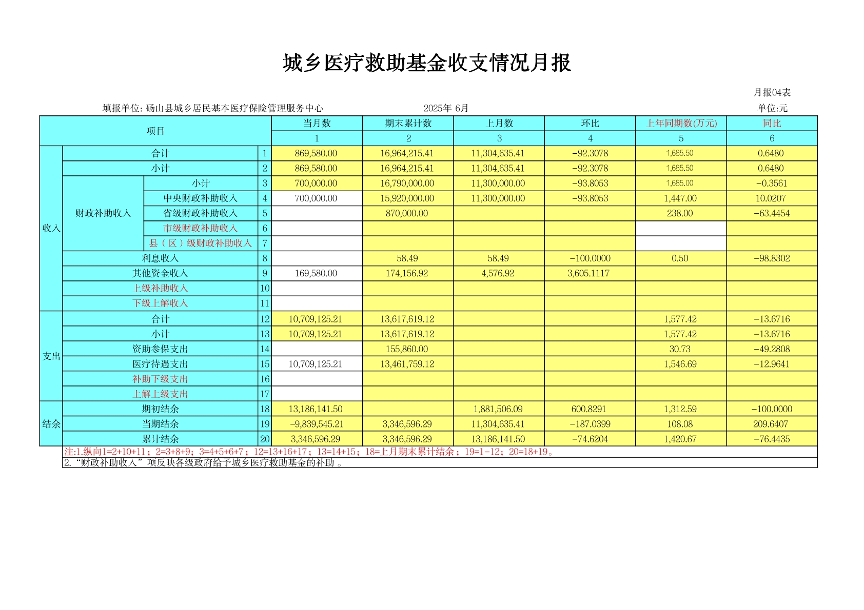 2025年6月城镇职工、城乡居民医疗保险财务报表 |