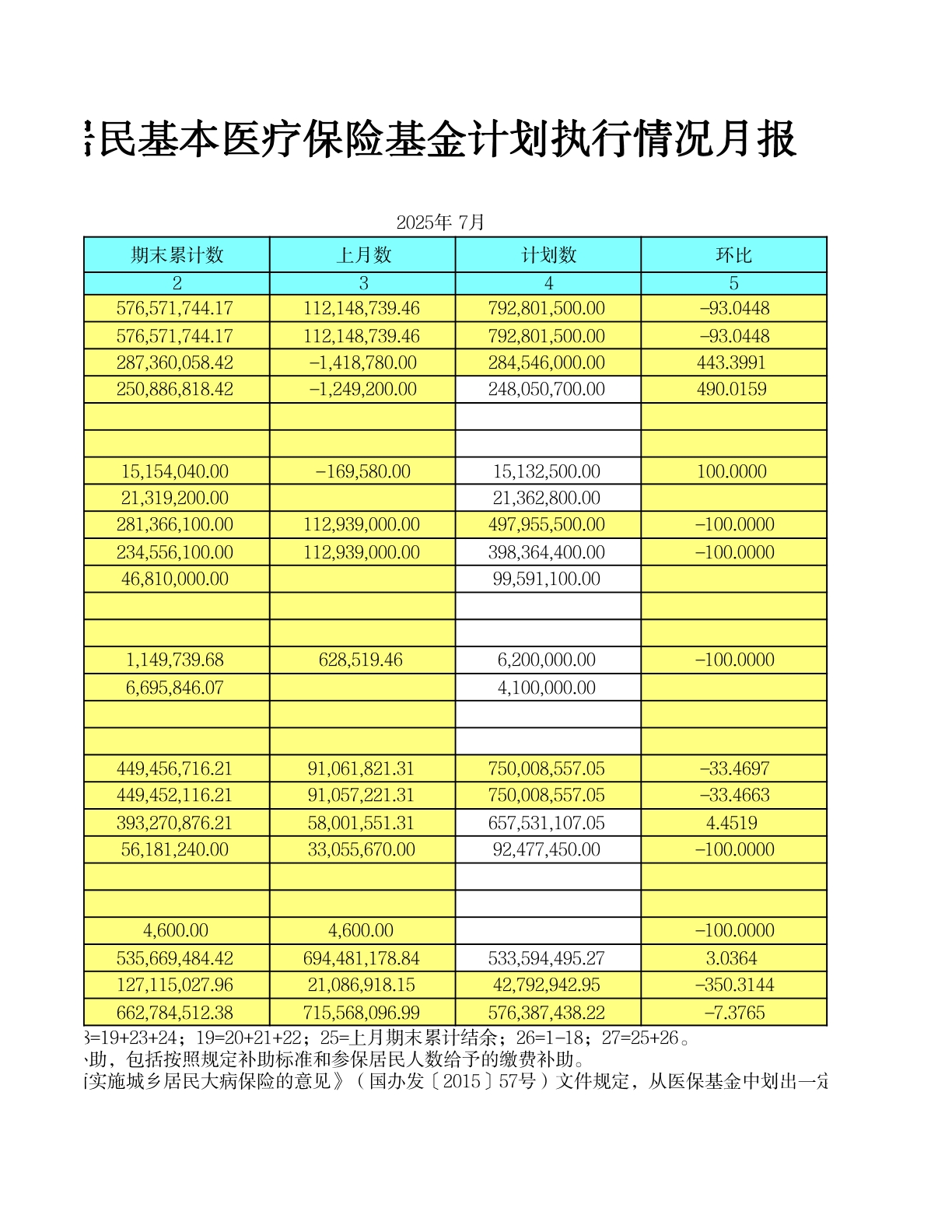 2025年7月城镇职工、城乡居民医疗保险财务报表 |