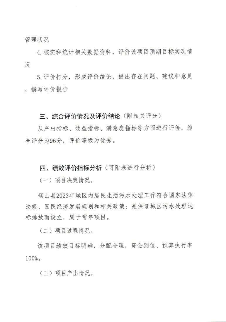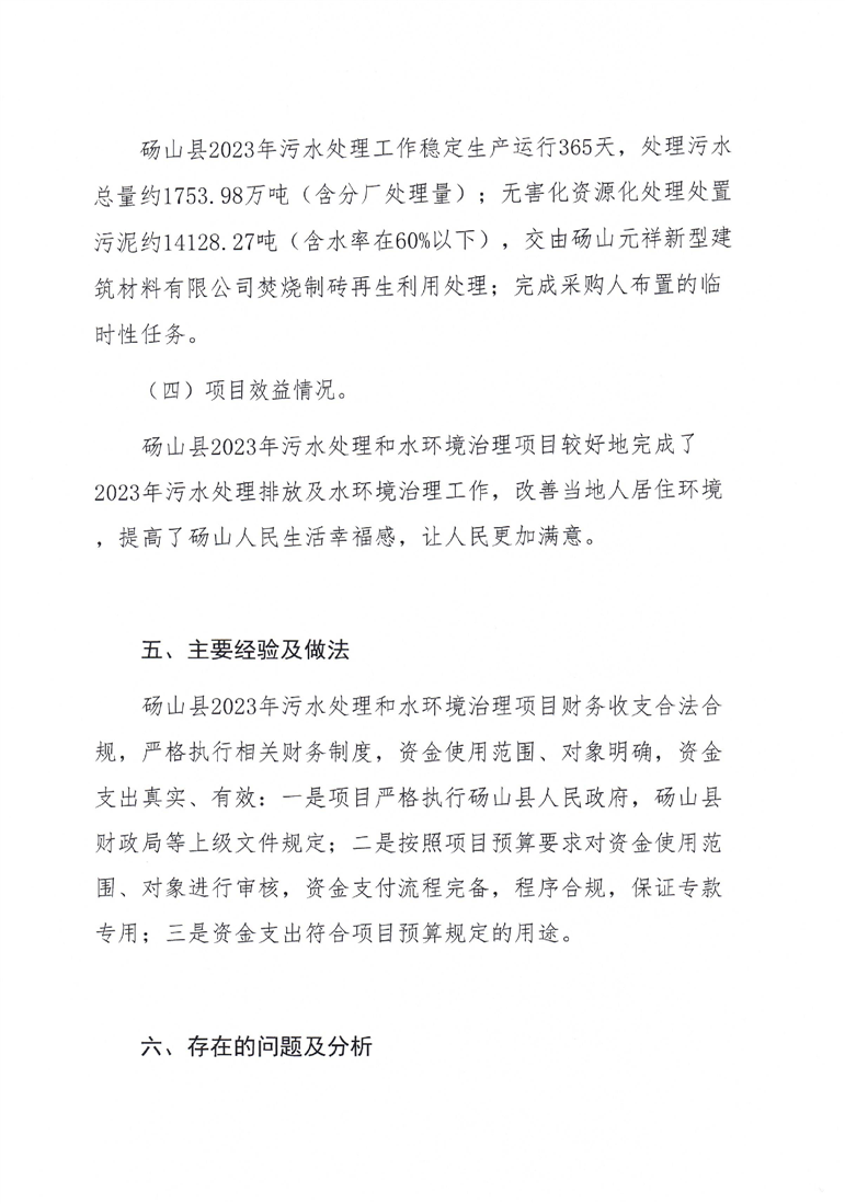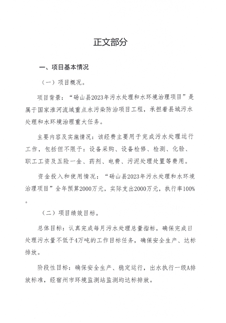 砀山县2023年污水处理和水环境治理项目指出绩效评价报告 |