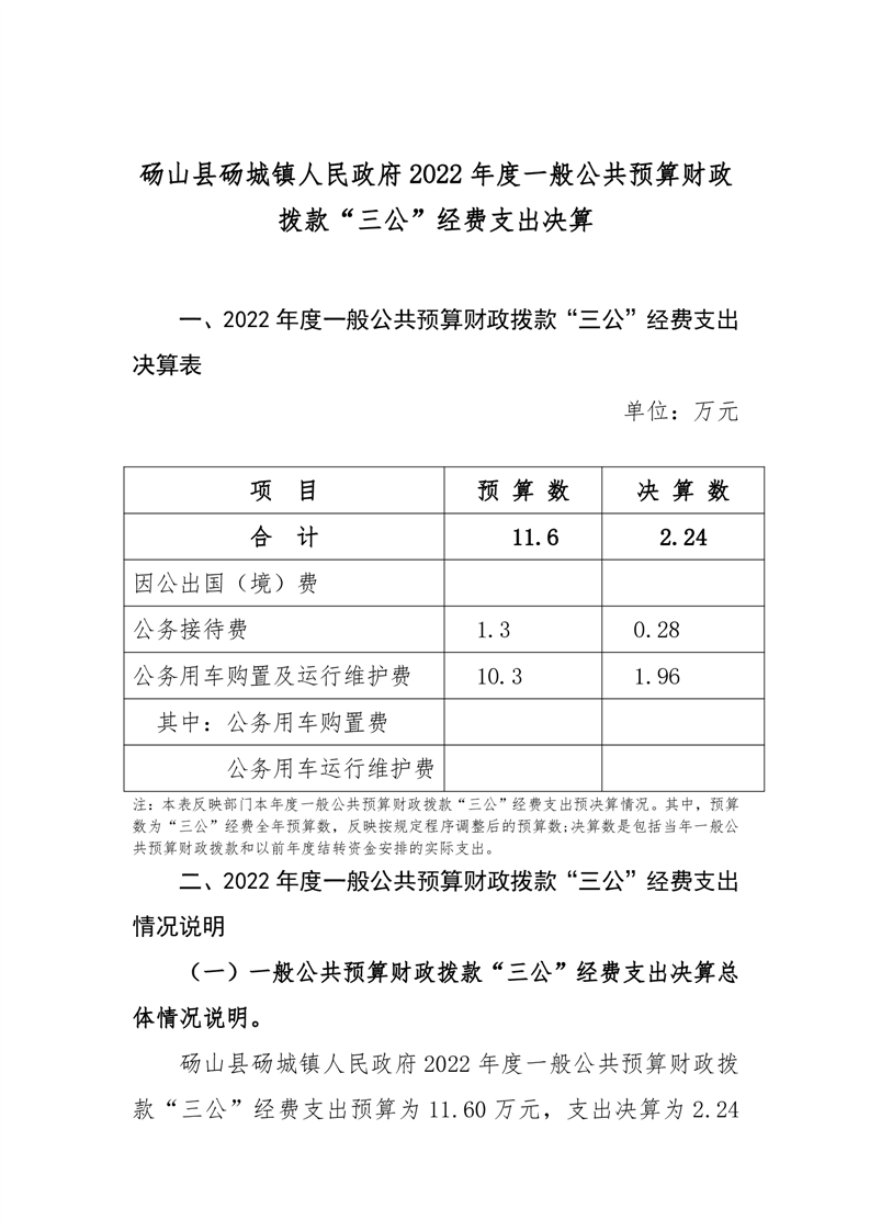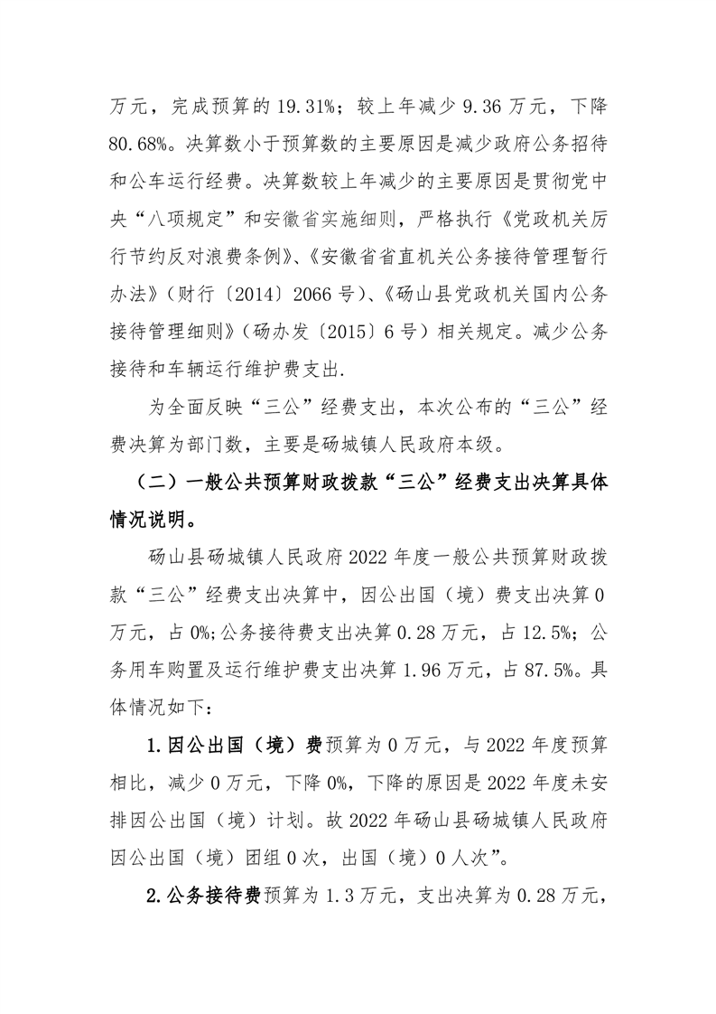 砀山县砀城镇人民政府2022年度一般公共预算财政拨款“三公”经费支出决算 |