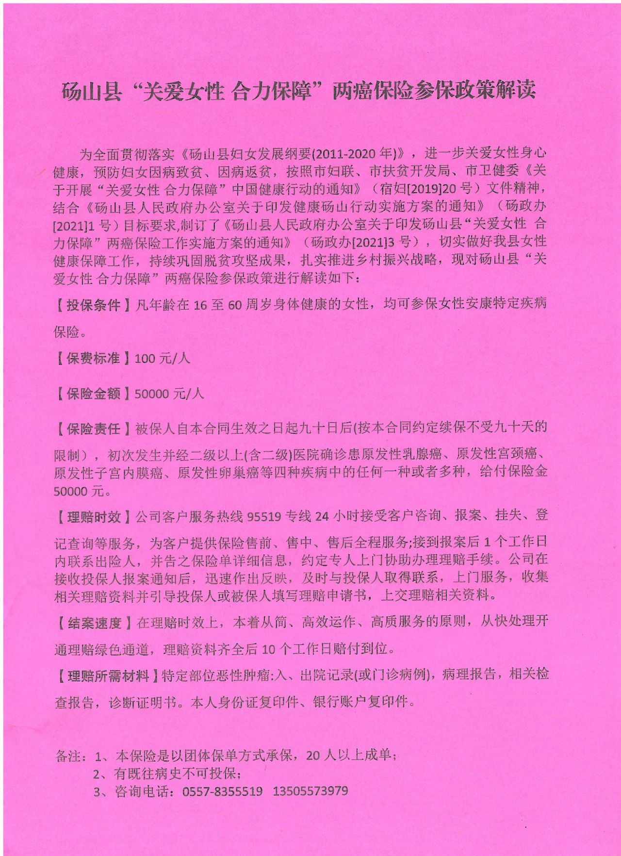 【政策解读】砀山县“关爱女性合力保障”两癌保险参保政策解读 |