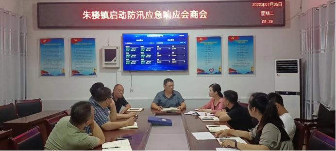 2022年7月5日,在朱楼镇政府二楼会议室召开朱楼镇启动防汛应急响应会商会。朱楼镇党委副书记李治国同志主持会议,全面安排防汛工作。7月3日夜晚至7月5日晚,朱楼镇境内连续遭受强降雨侵袭,农田出现不同程度的积水,到处一片汪洋,西瓜等农作物在水中淹没,大棚和水果都遭受了不同程度的损坏。