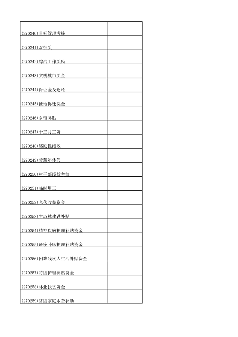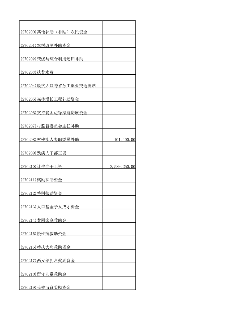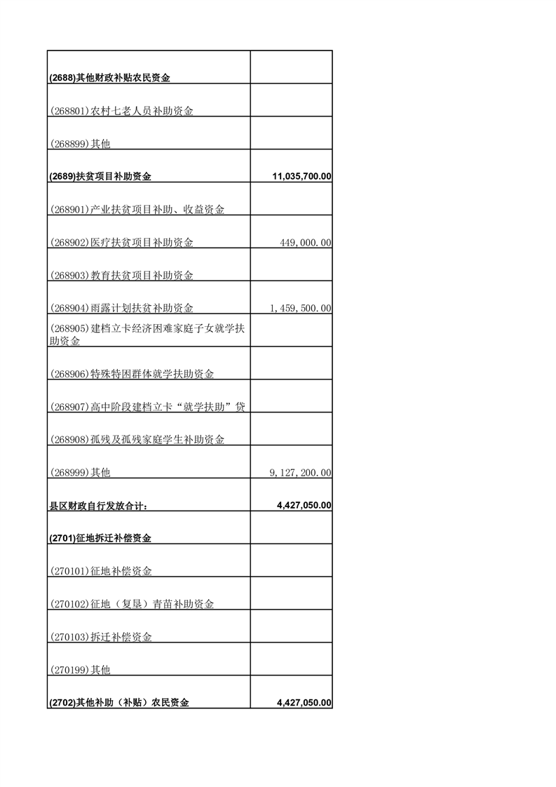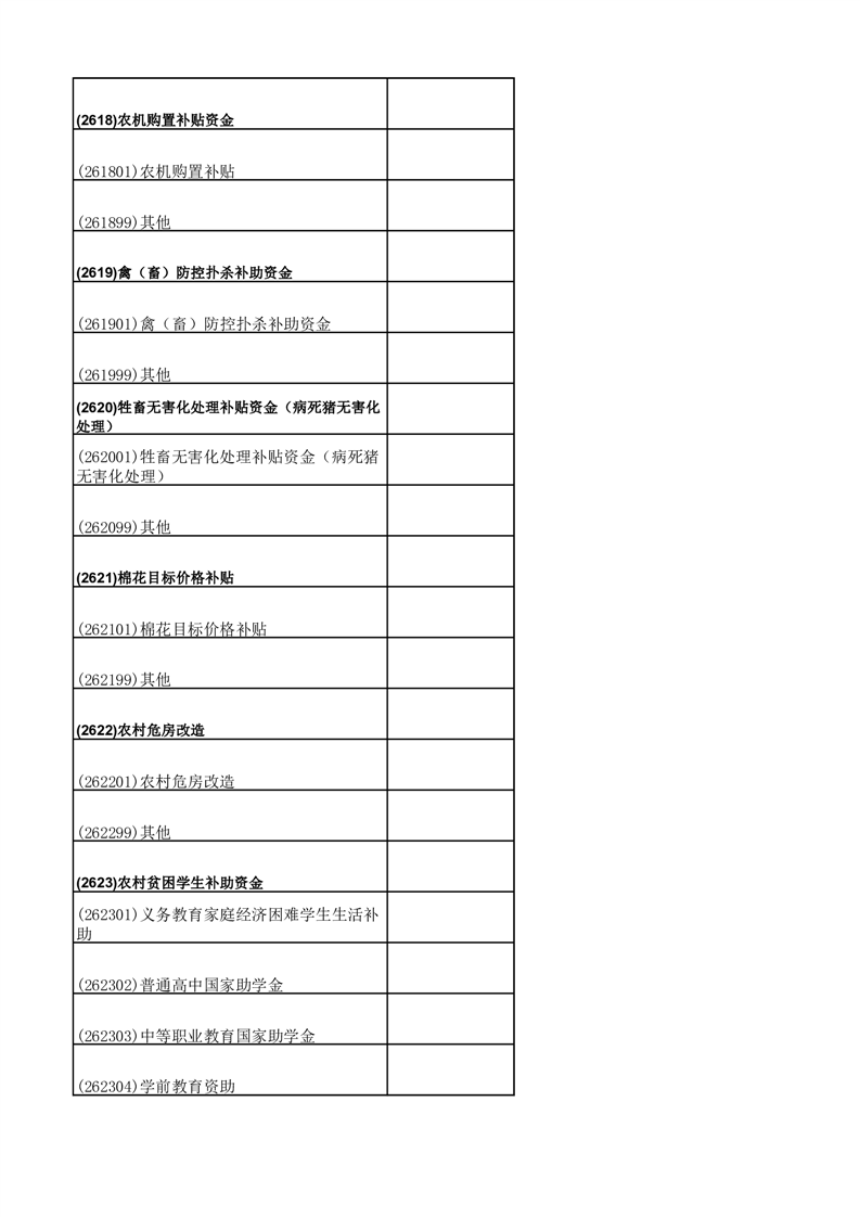 财政专项资金清单 |