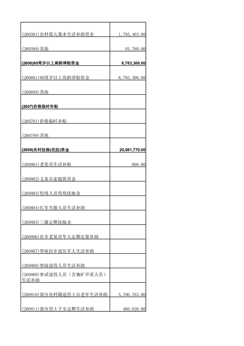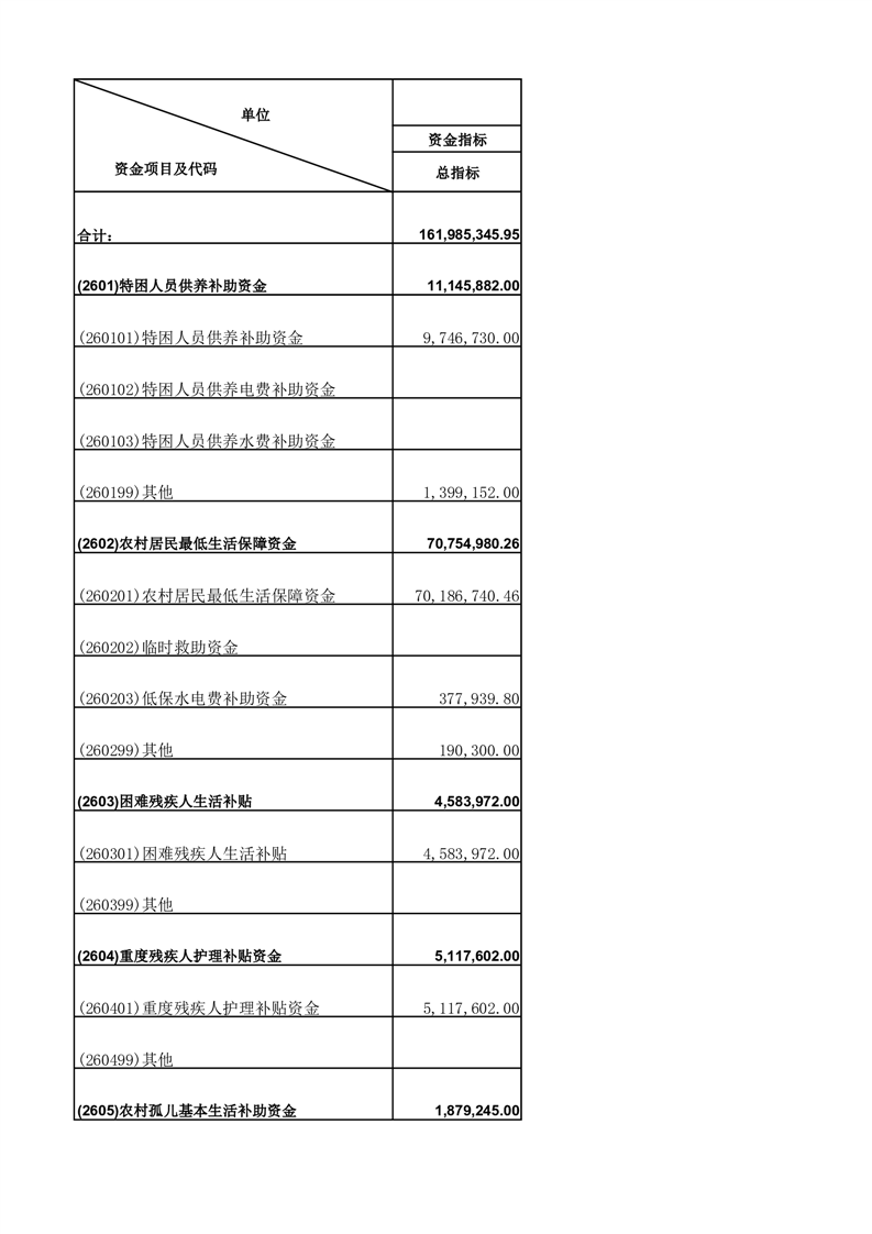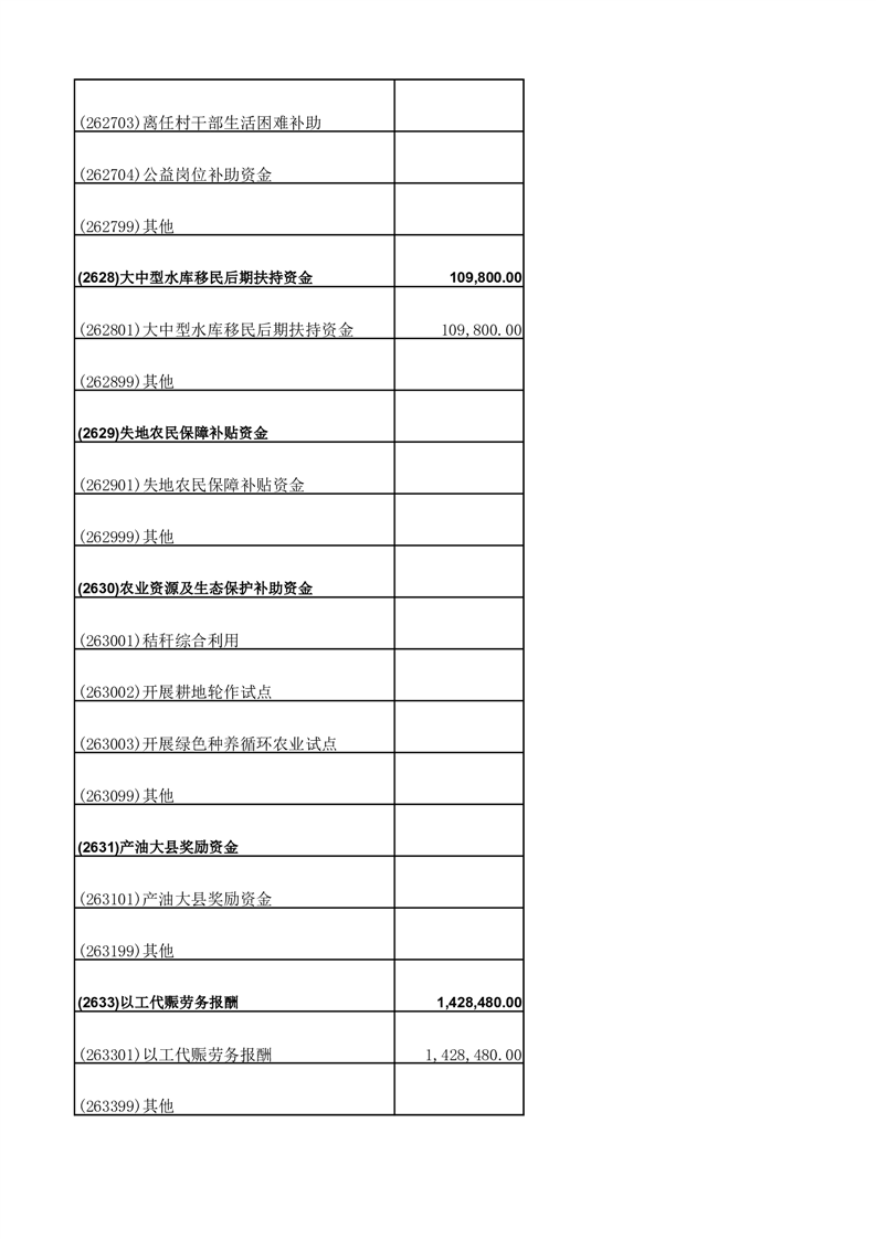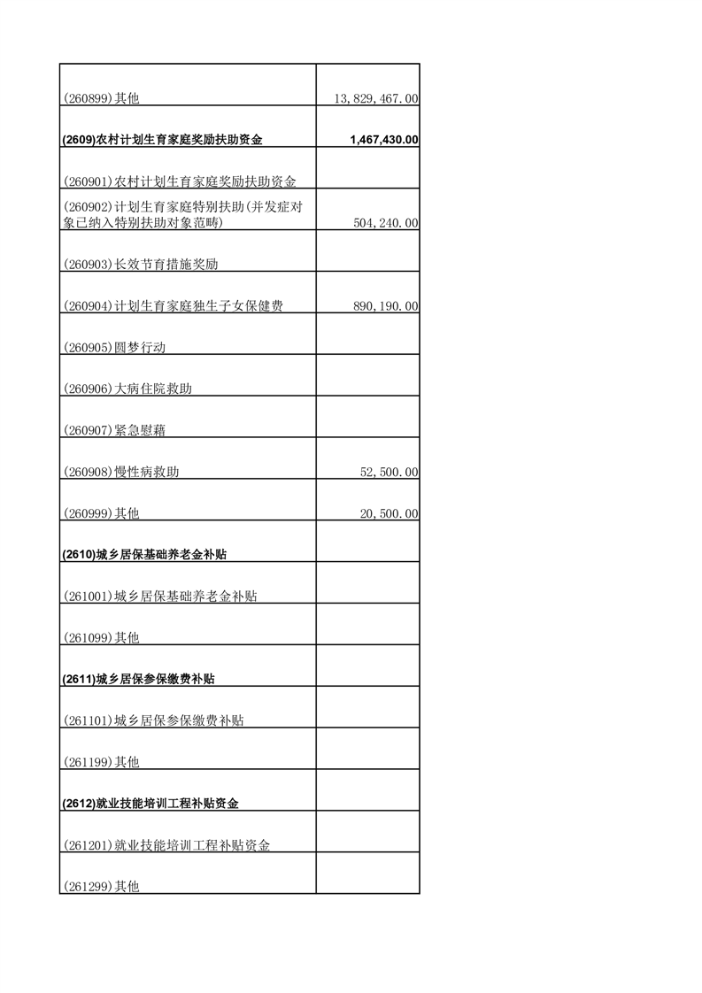 财政专项资金清单 |