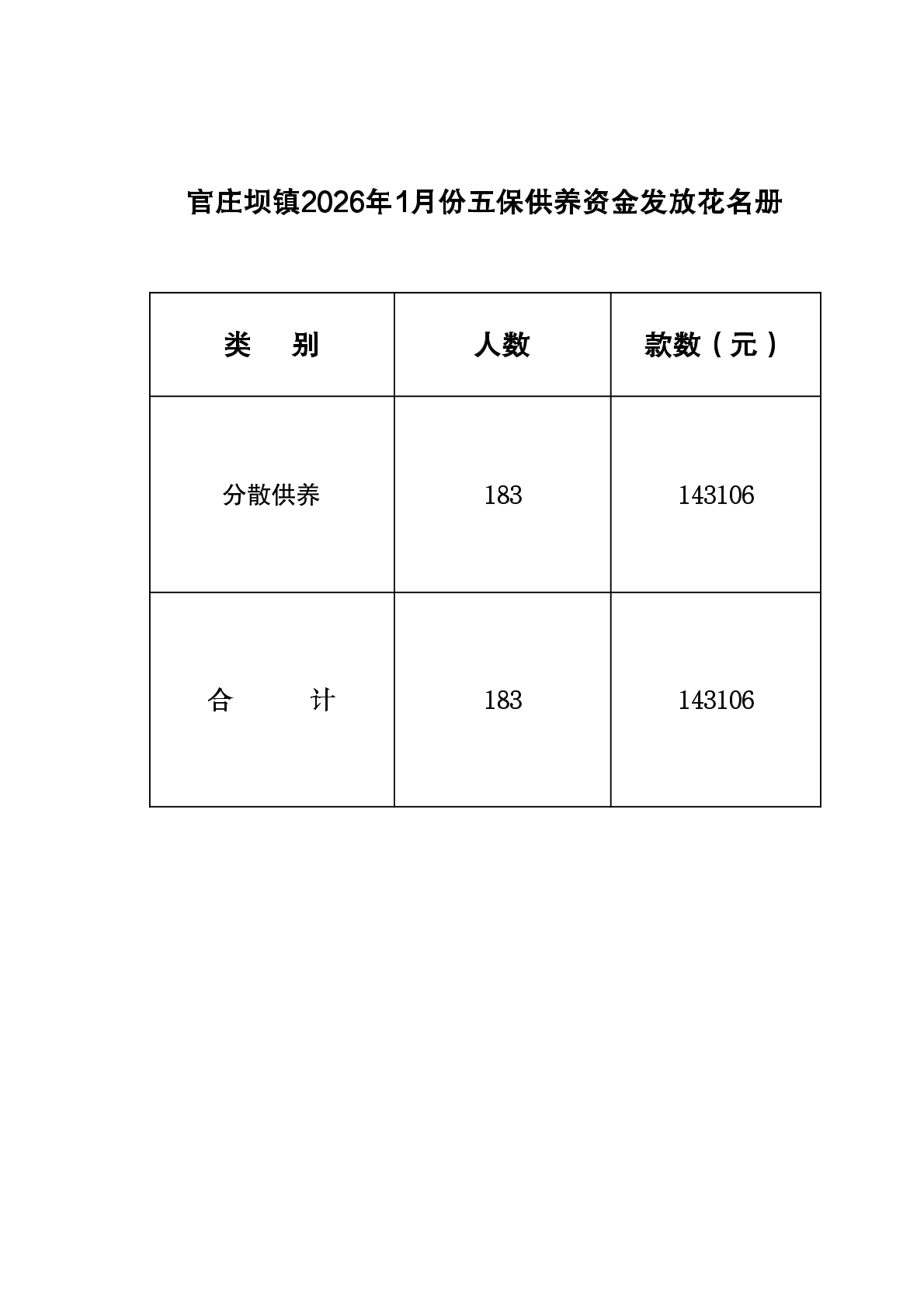 官庄坝镇2026年1月份分散供养特困人员资金发放花名册 |