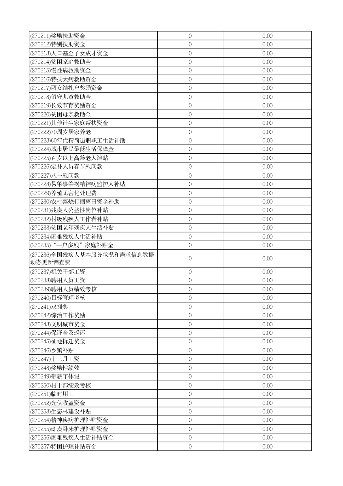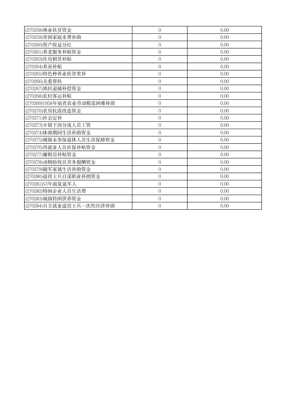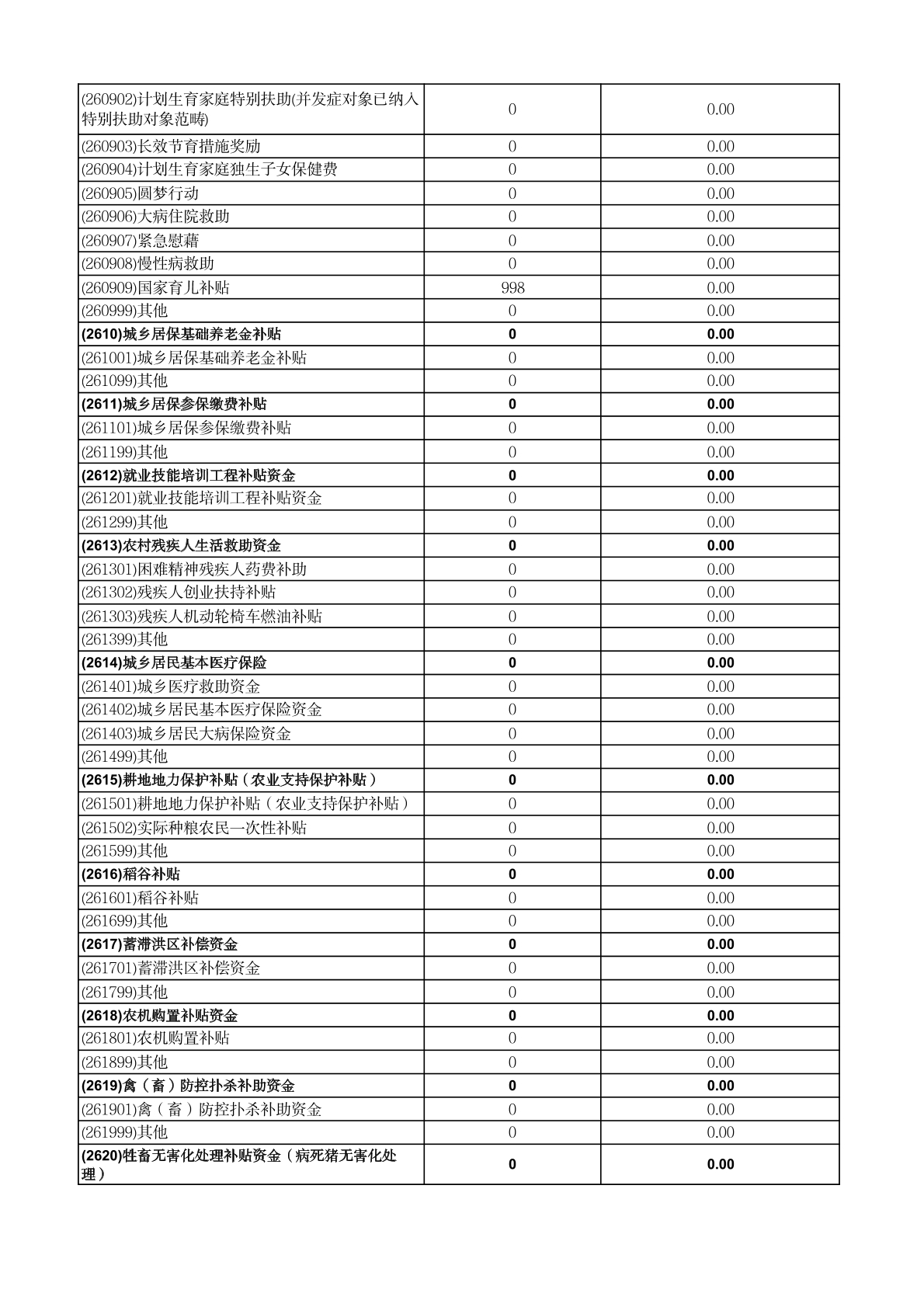 财政专项资金清单 |