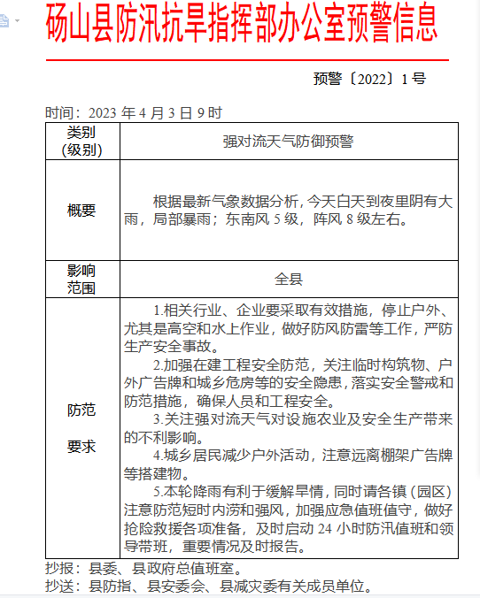 【自然灾害类预警信息】强对流天气防御预警 |