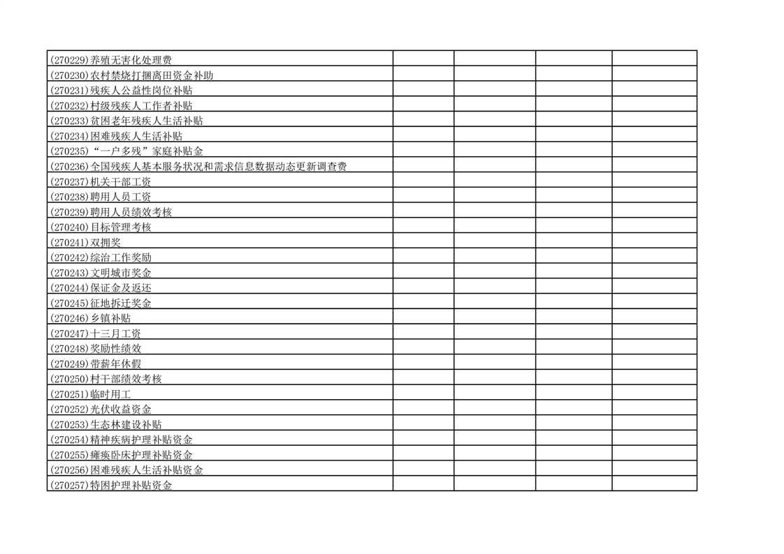财政专项资金清单 |