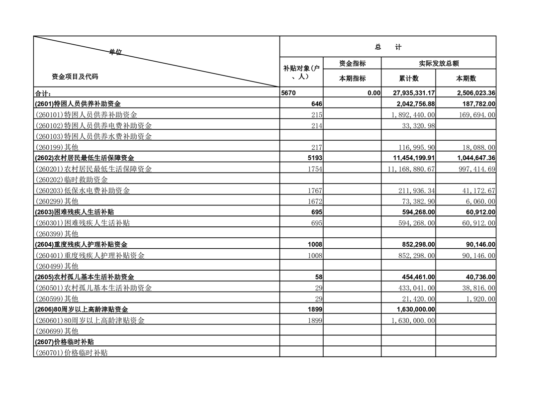 安徽省葛集镇2025年11月份财政惠民惠农补贴资金月报表